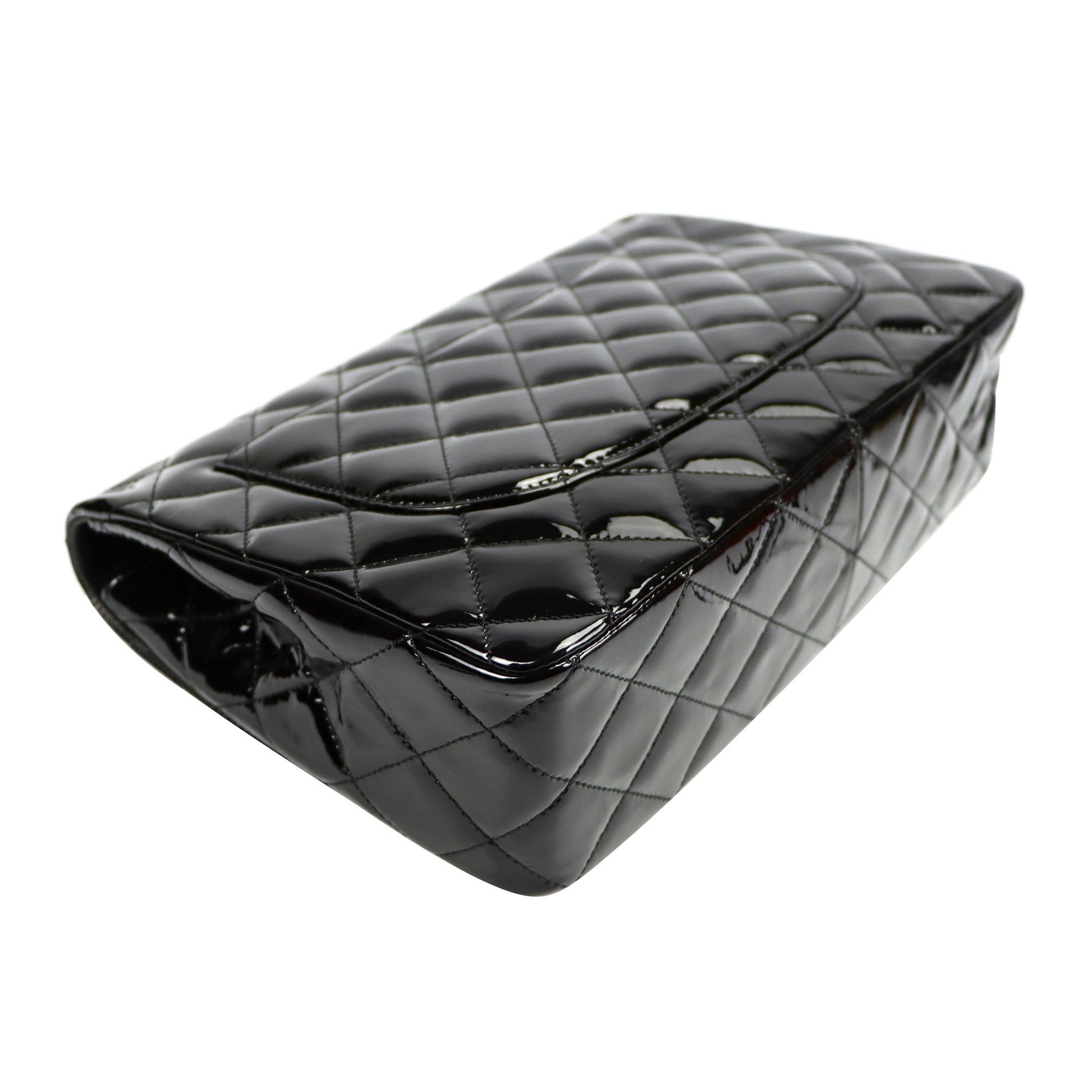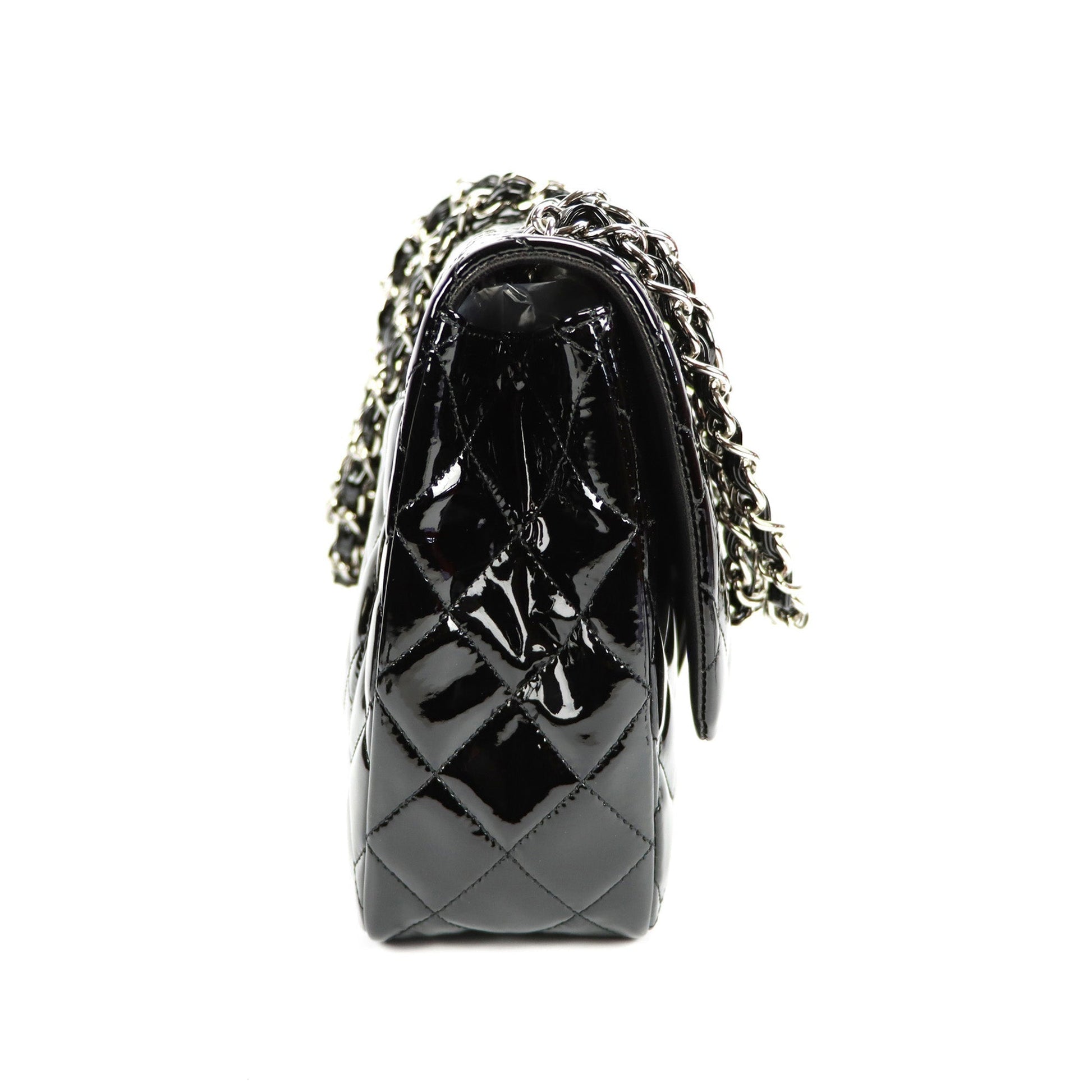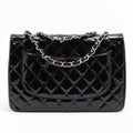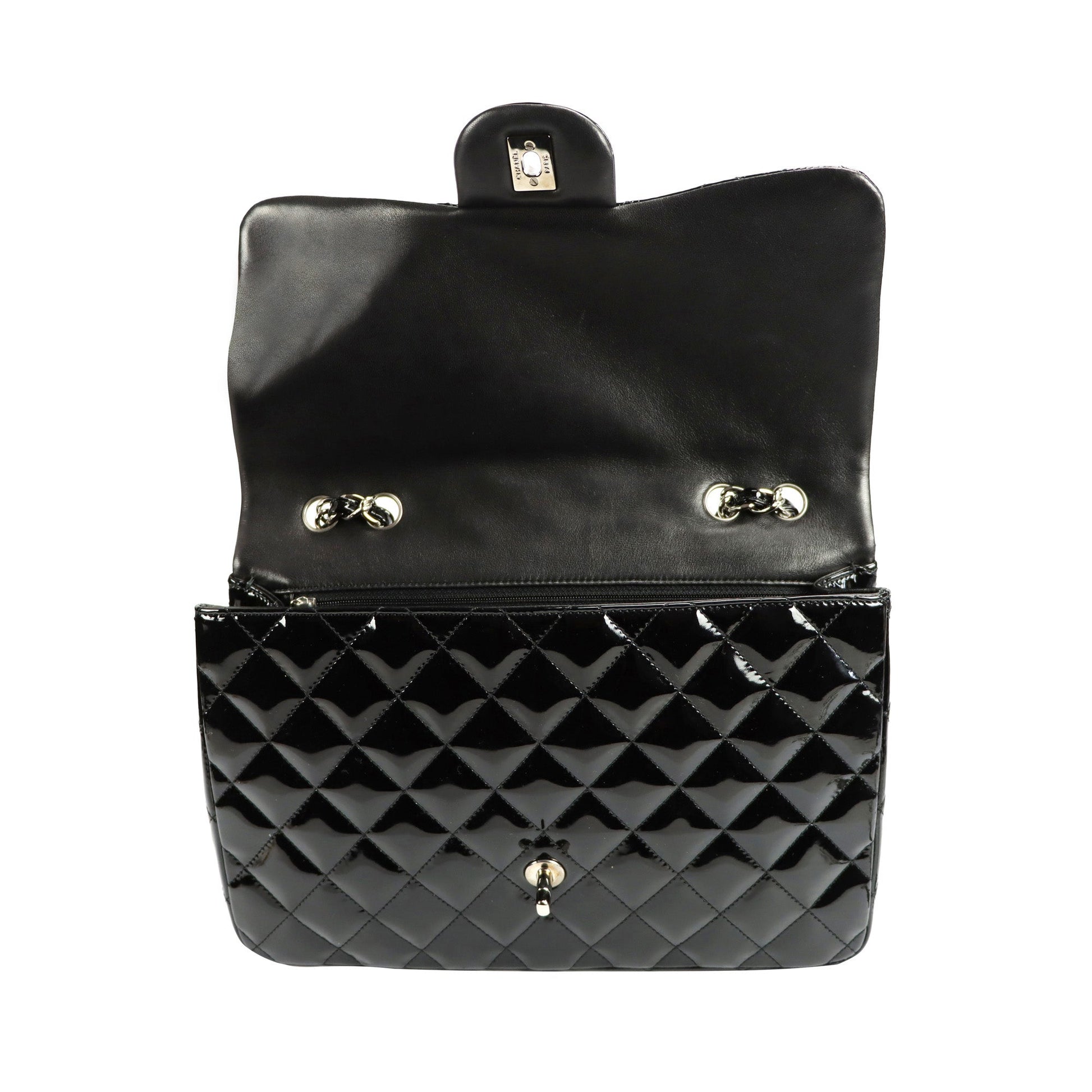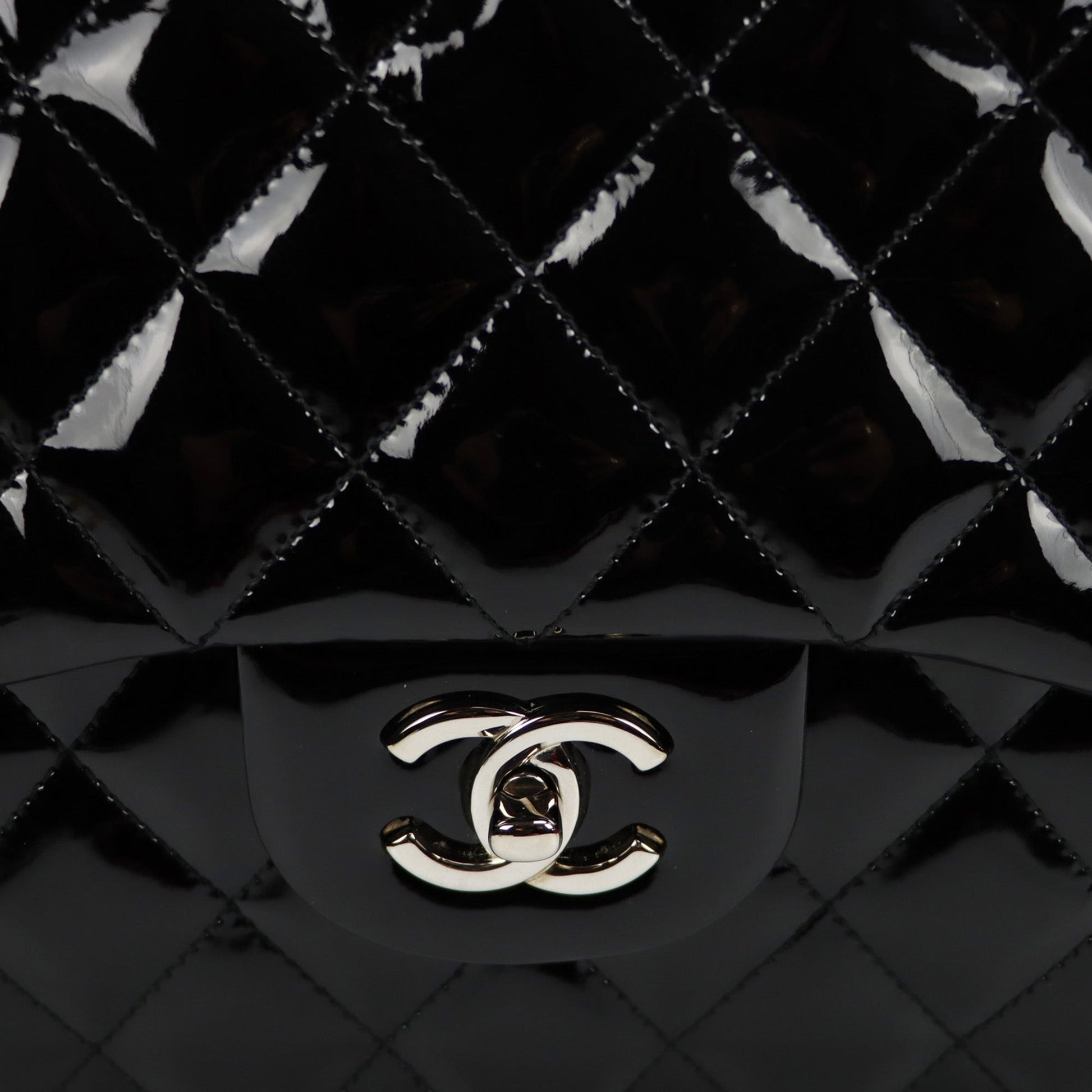 SALE Chanel Classic Single Flap Jumbo Black Patent Leather Silver