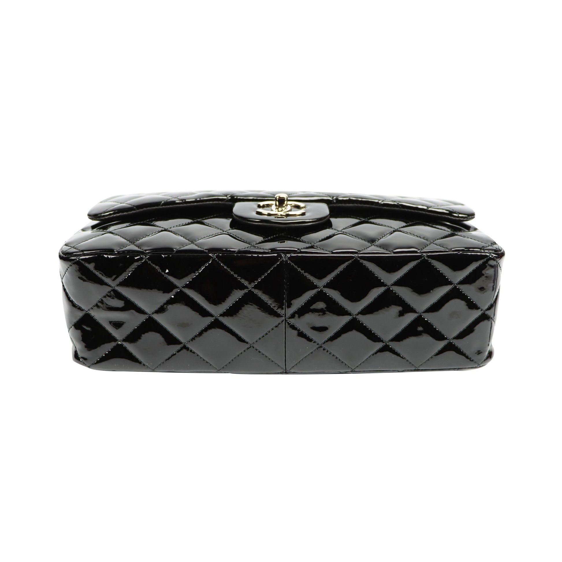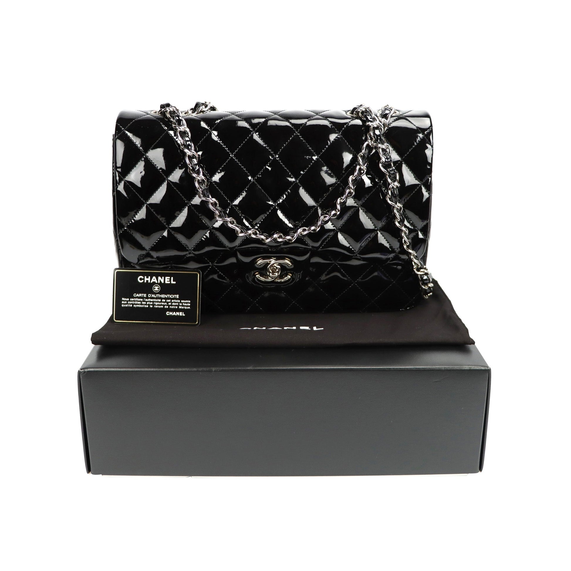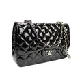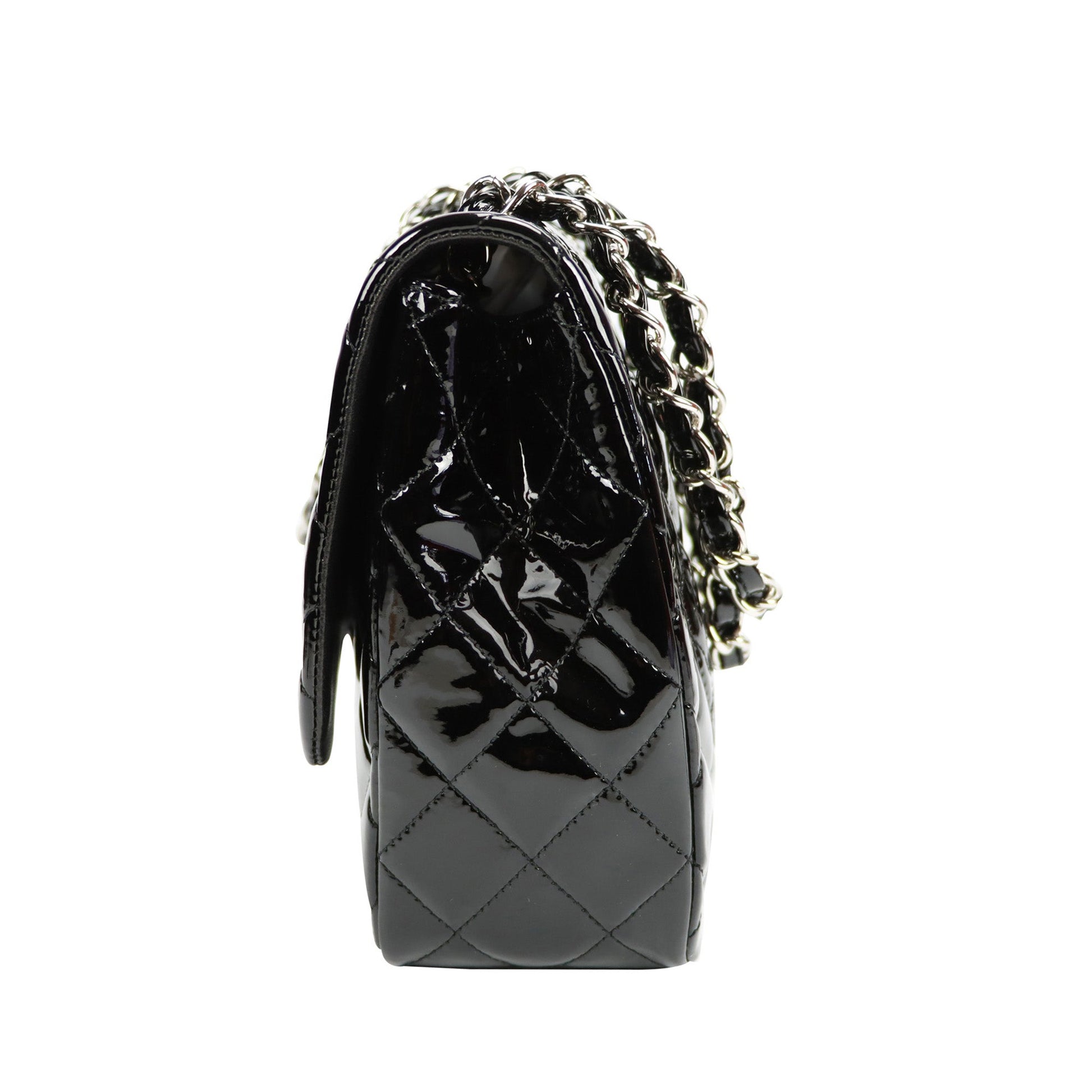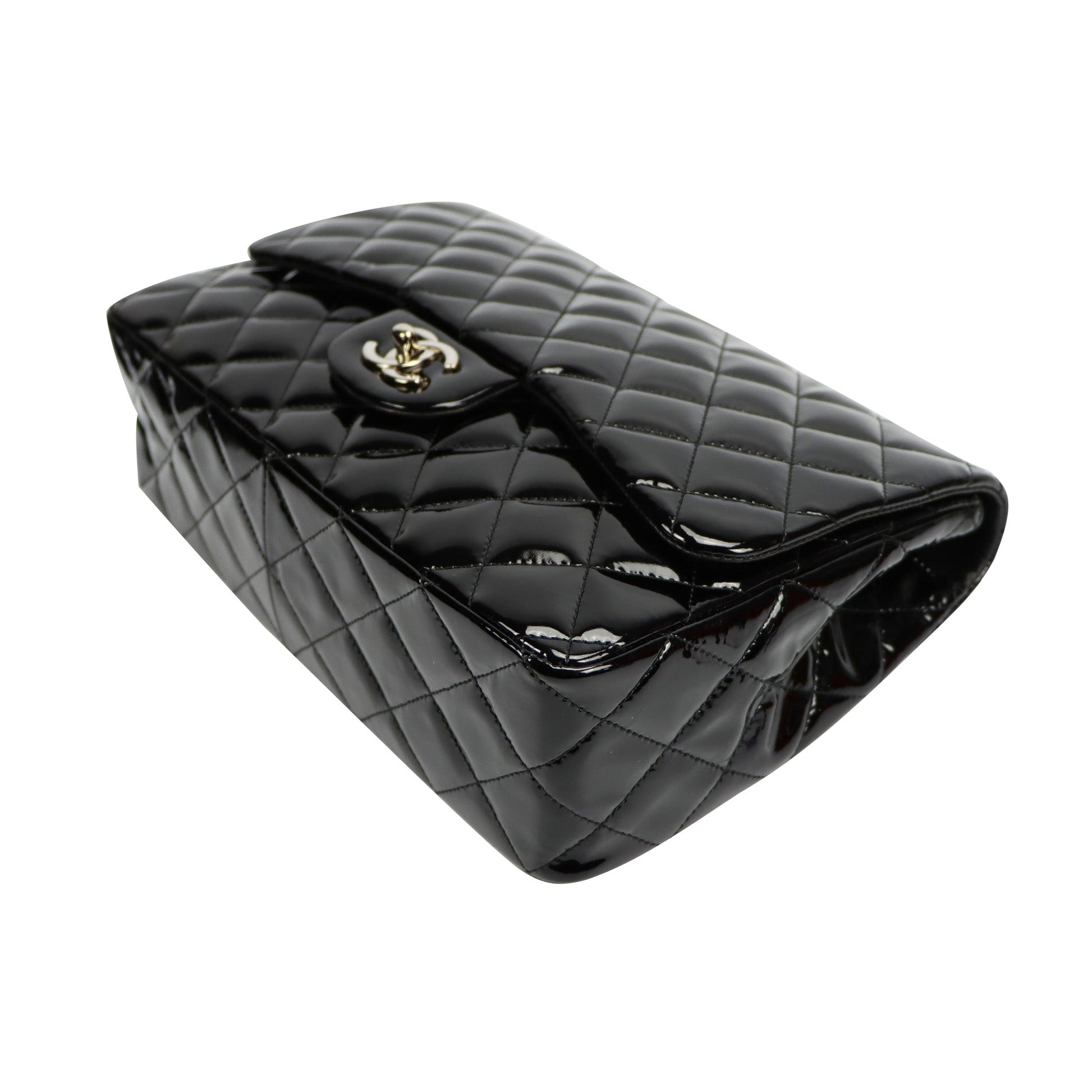 SALE Chanel Classic Single Flap Jumbo Black Patent Leather Silver