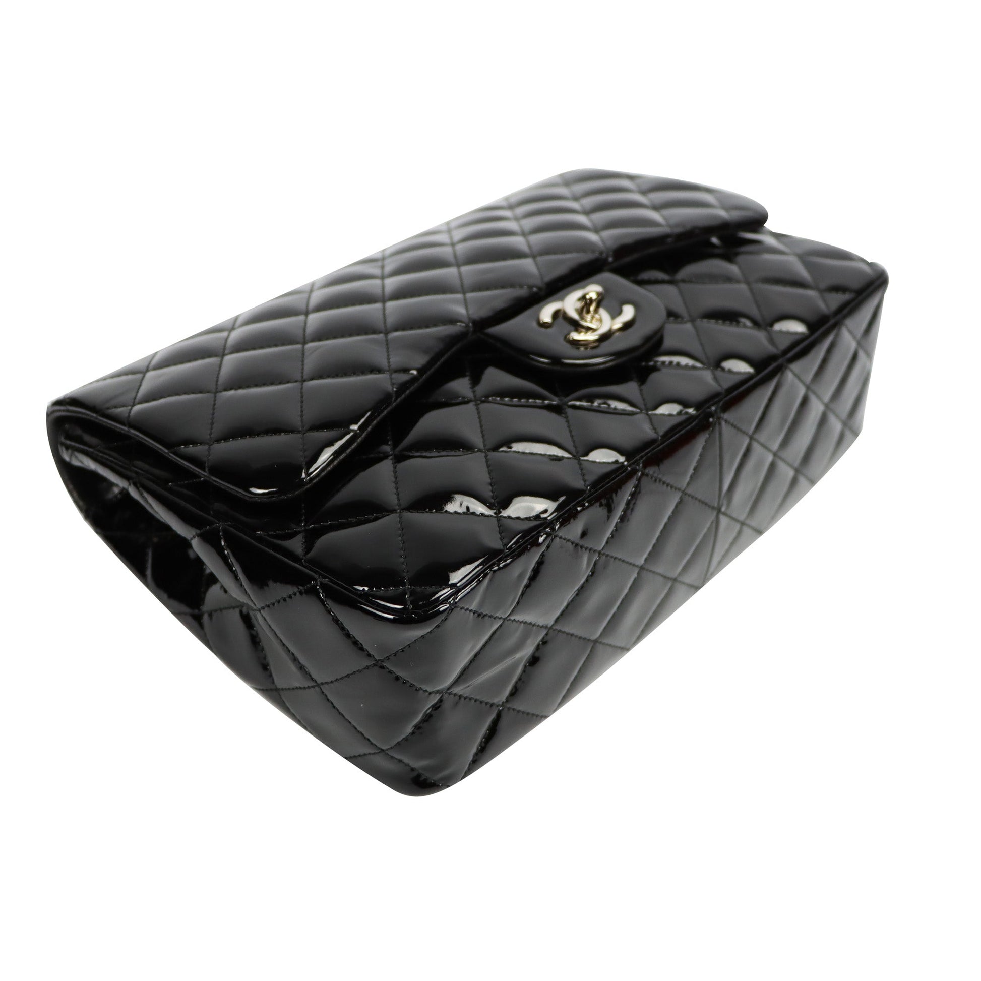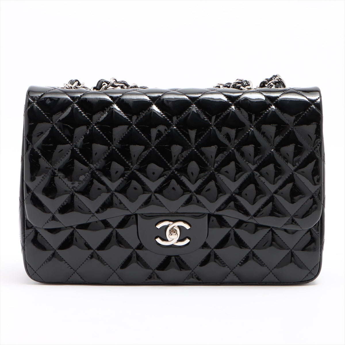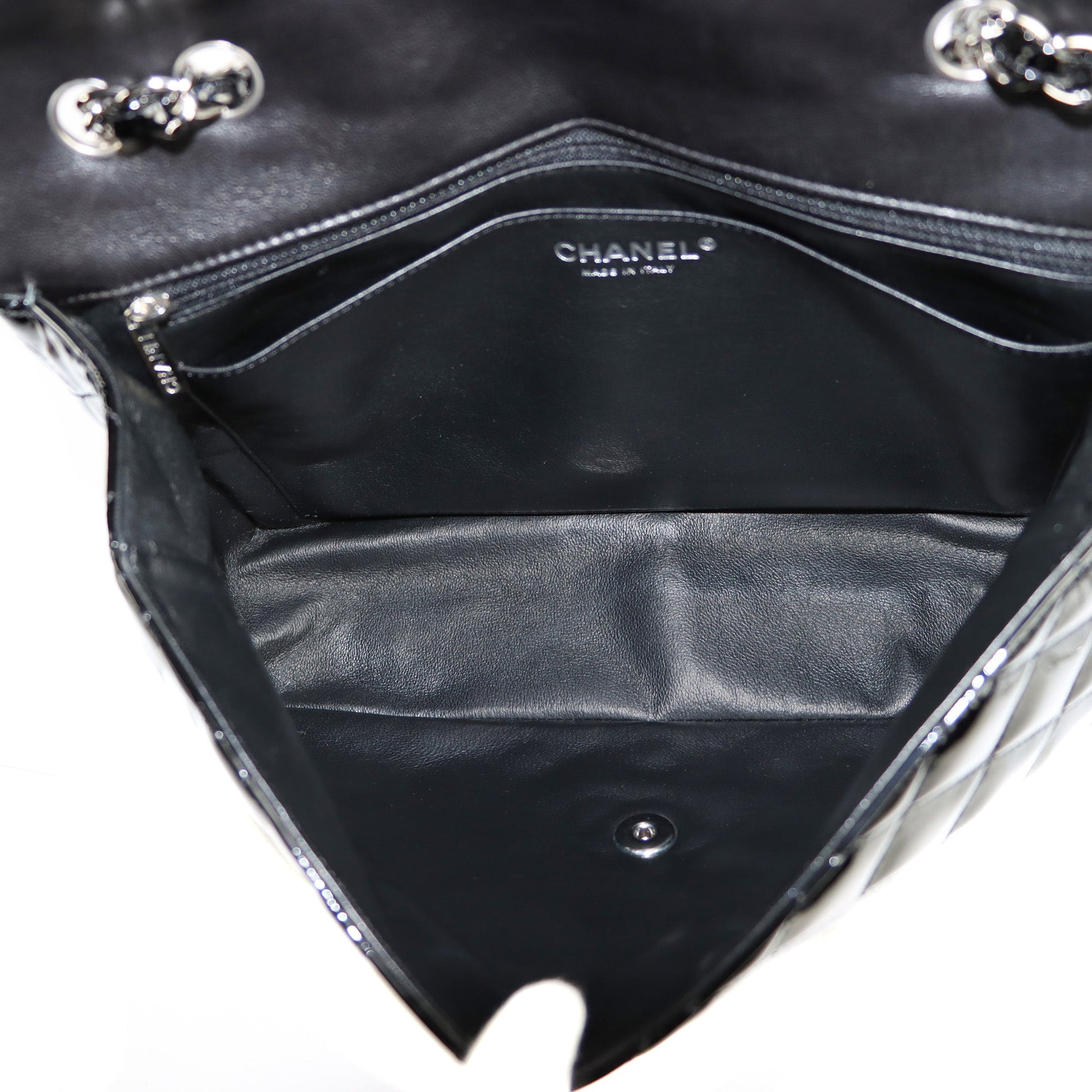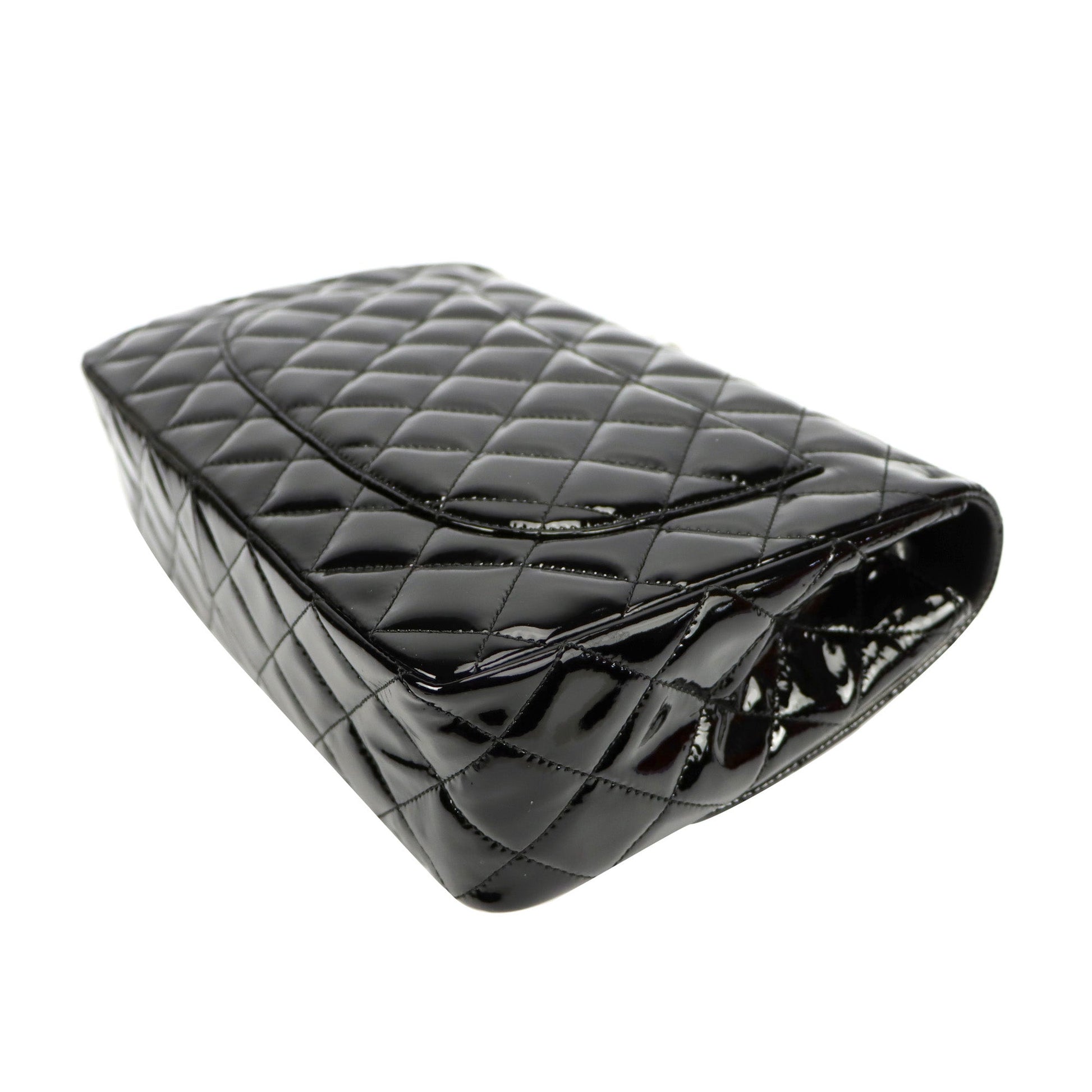 SALE Chanel Classic Single Flap Jumbo Black Patent Leather Silver