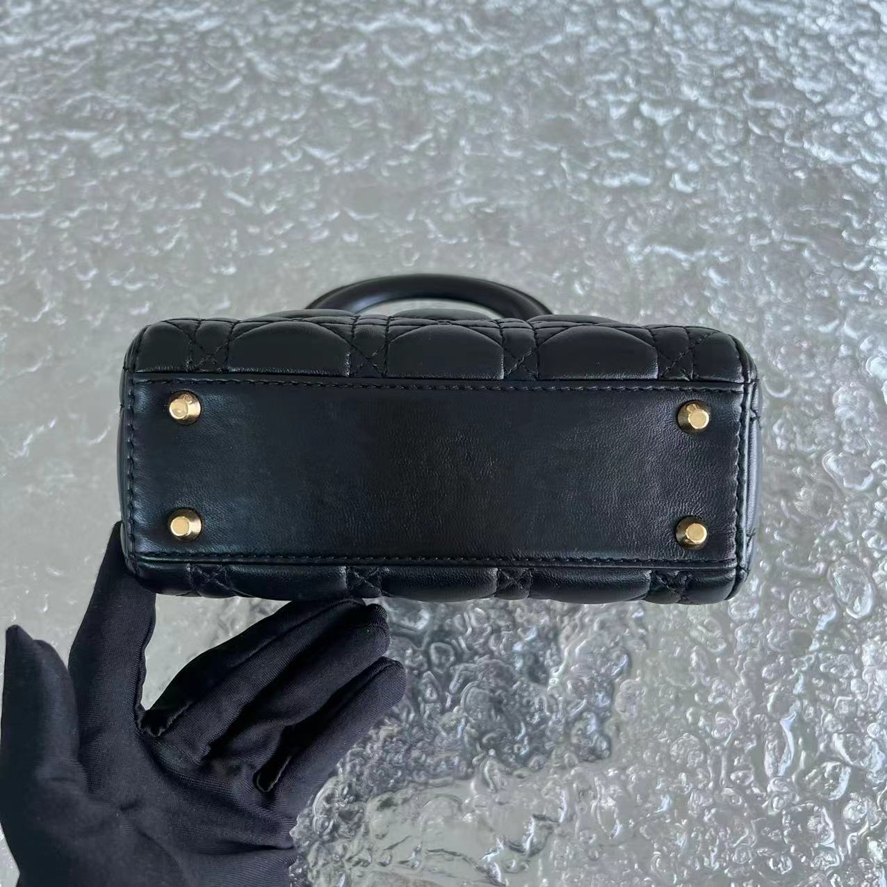 *Adjustable Strap* Lady Mini Cannage Lambskin Black Golden Hardware