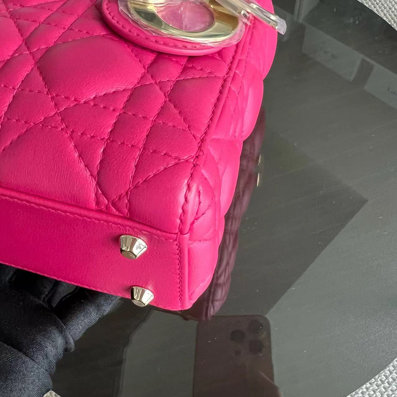 *Adjustable Strap* Lady Mini Cannage Lambskin Hot Pink Golden Hardware