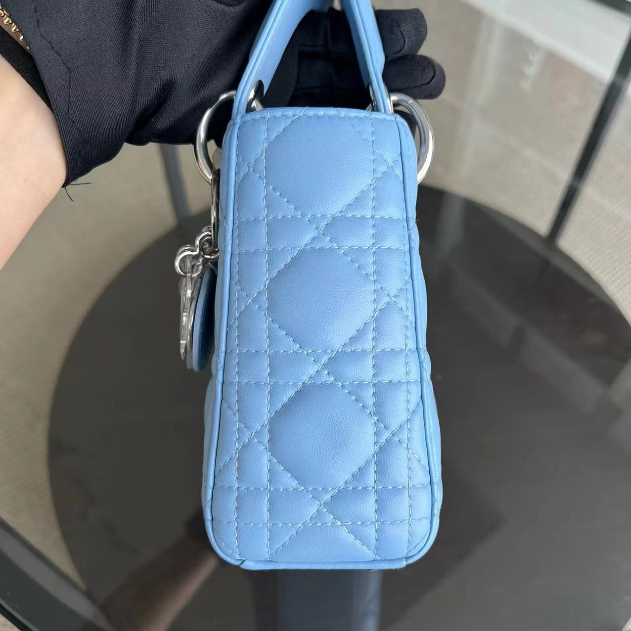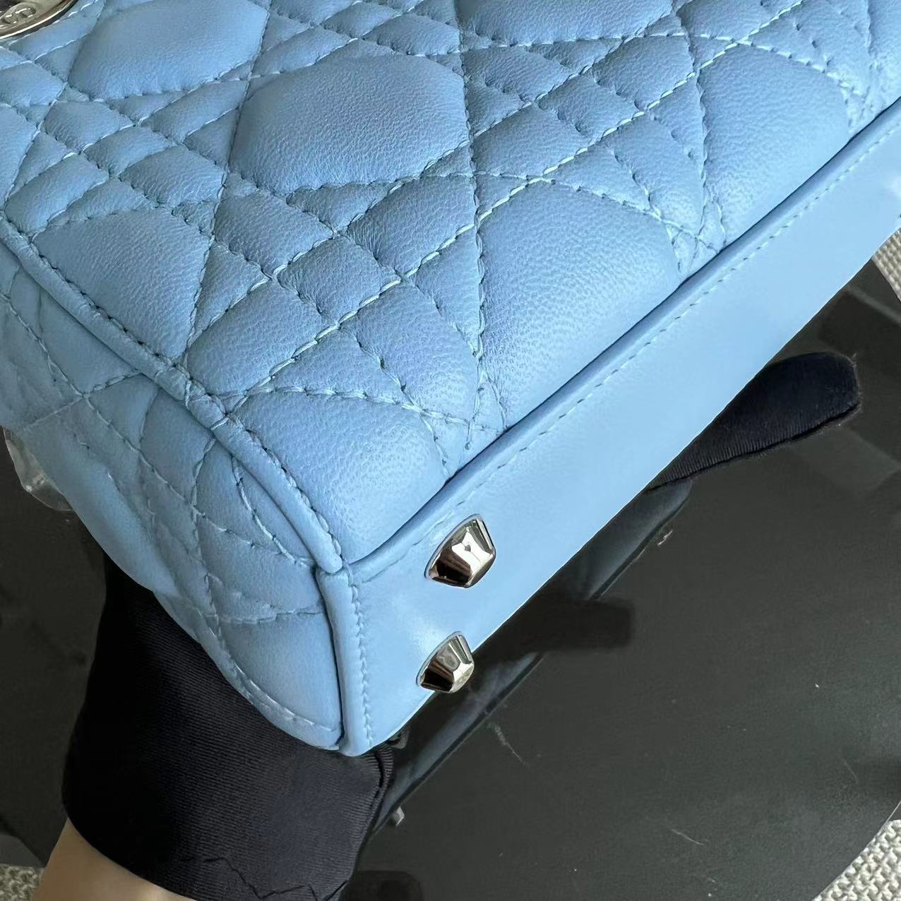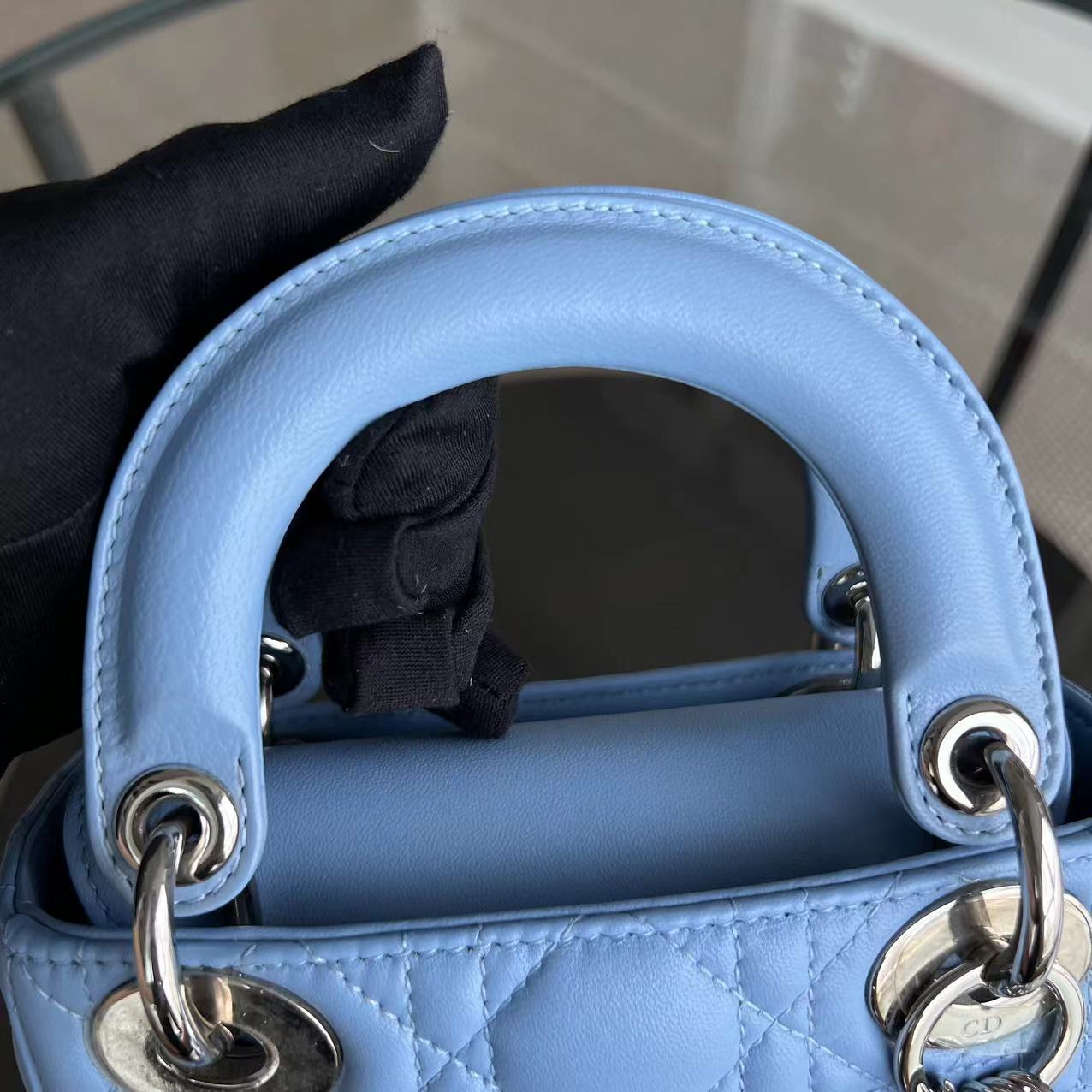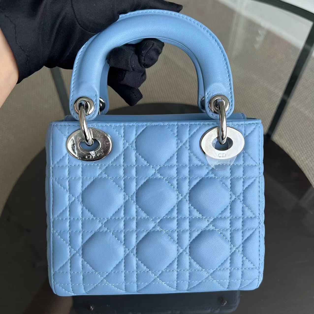 *Adjustable Strap* Lady Mini Cannage Lambskin Sky Blue Silver Hardware