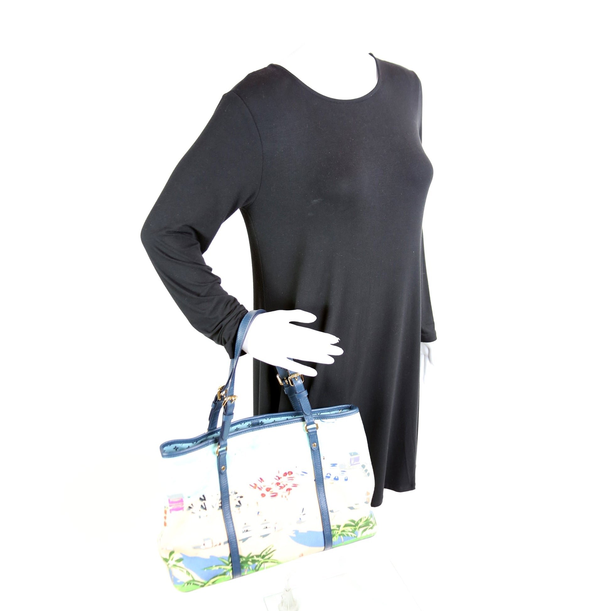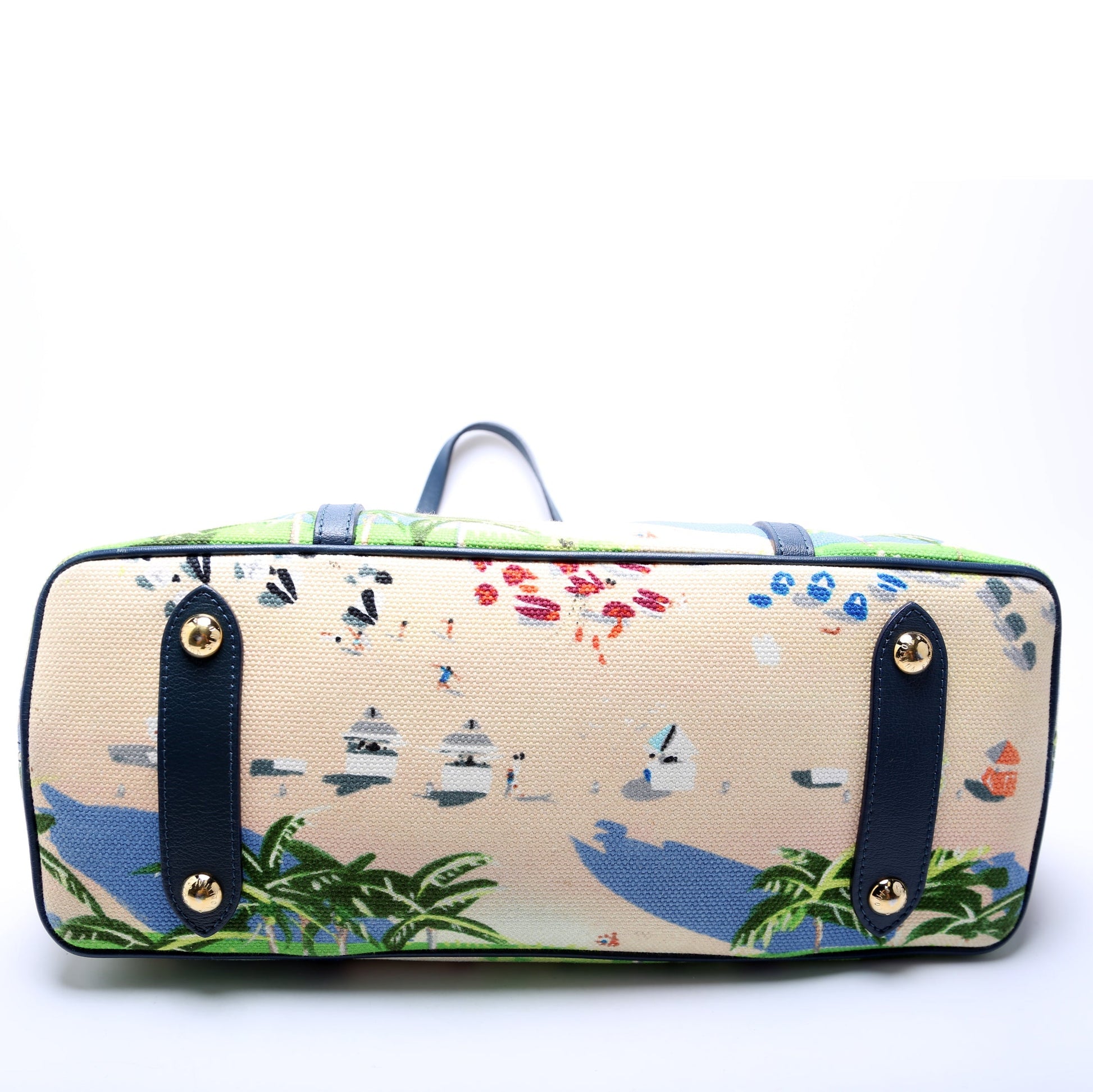 This Louis Vuitton Ailleurs Cabas PM Escale Canvasis eye catching bag.