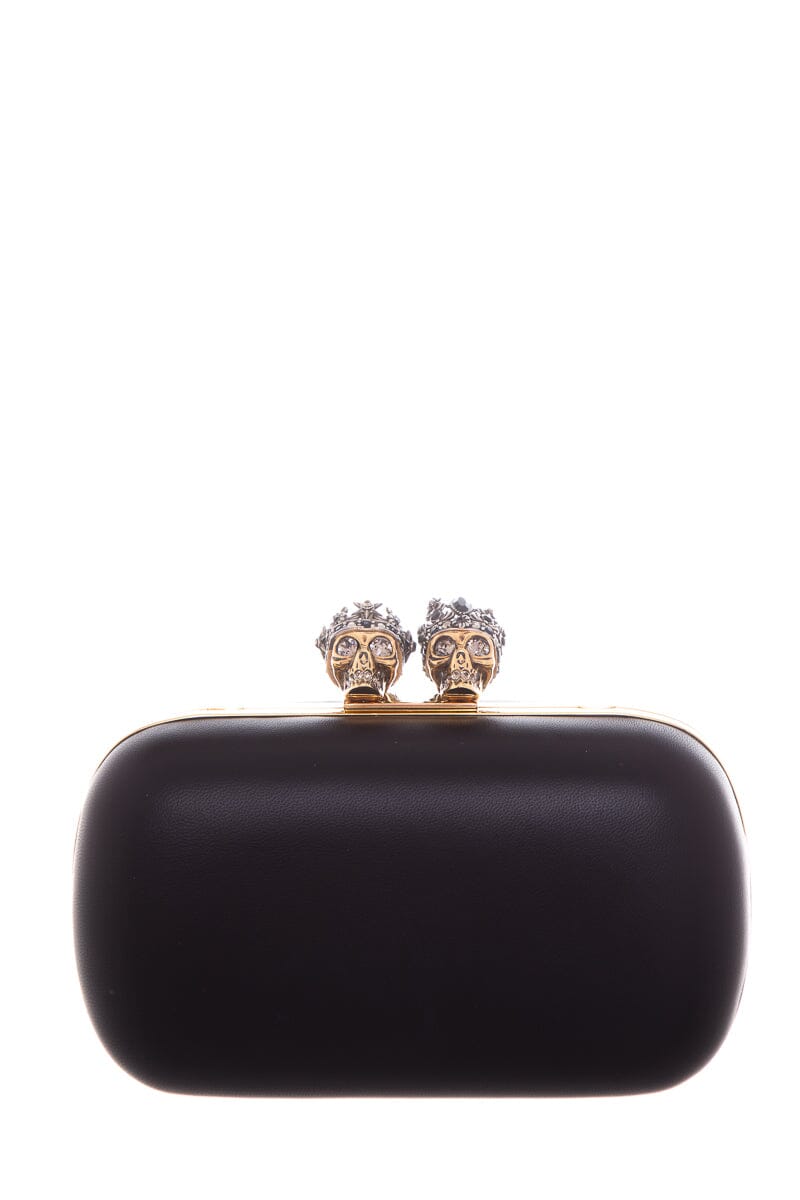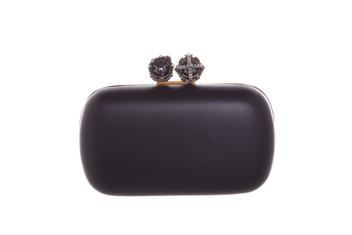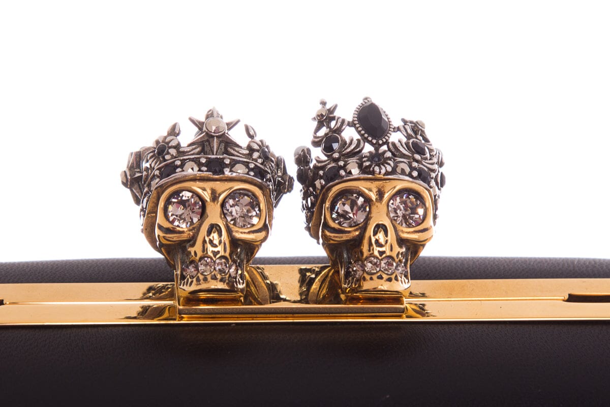 Alexander McQueen King & Queen Black Nappa Leather & Gold Hardware Clutch