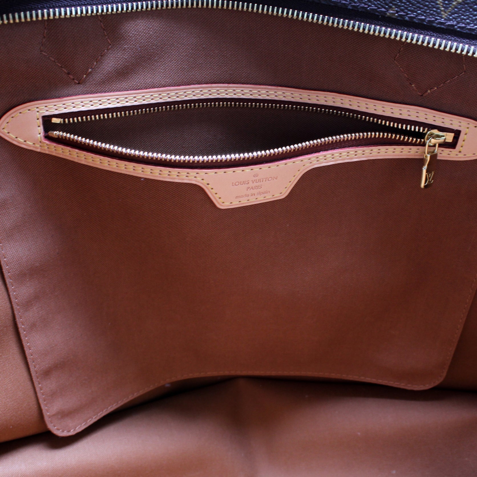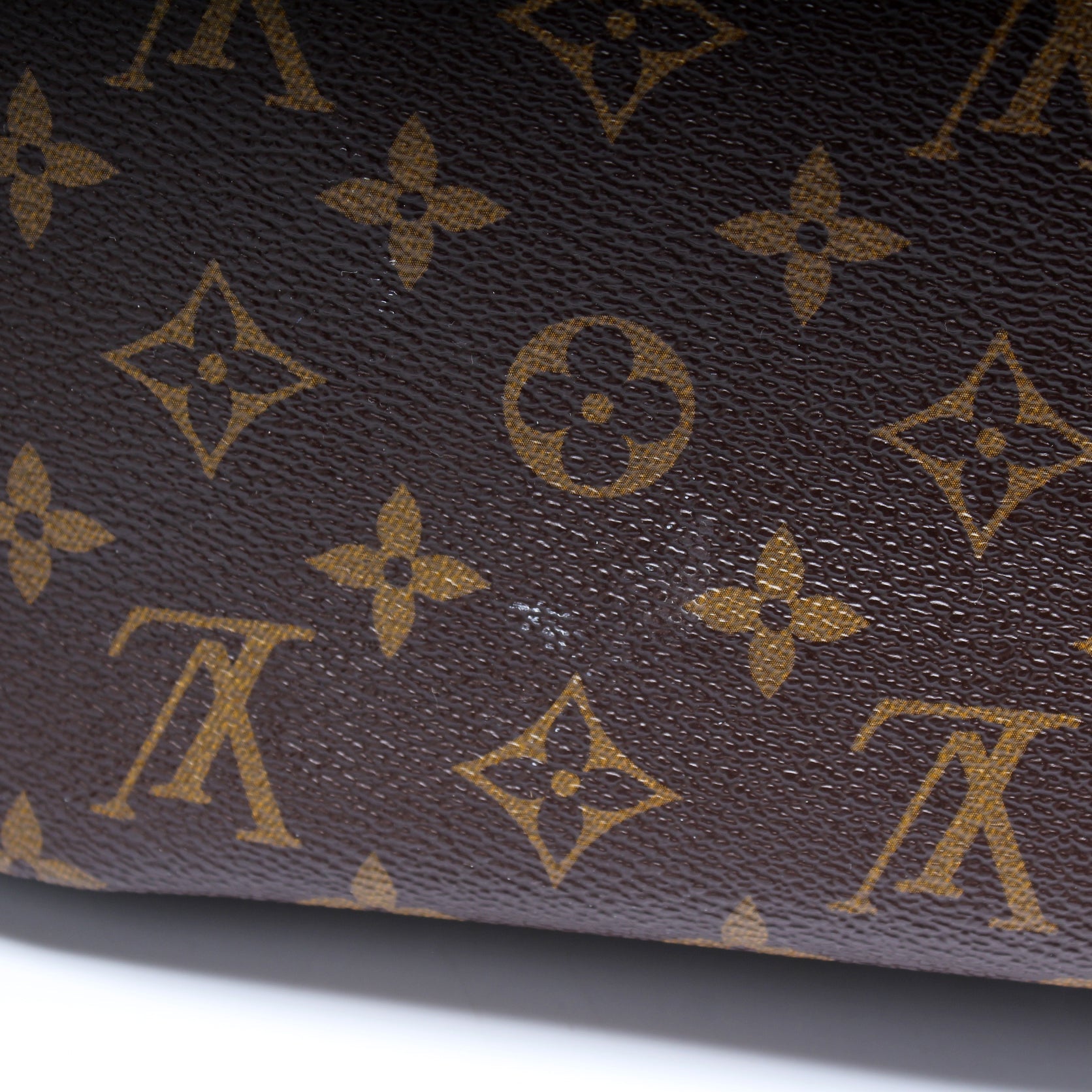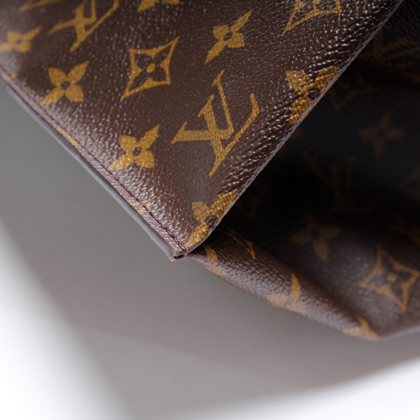 Exterior: The exterior Monogram coated canvas is free of any rips or cracks.