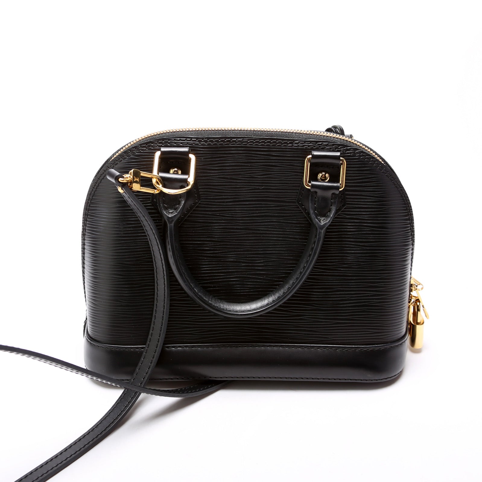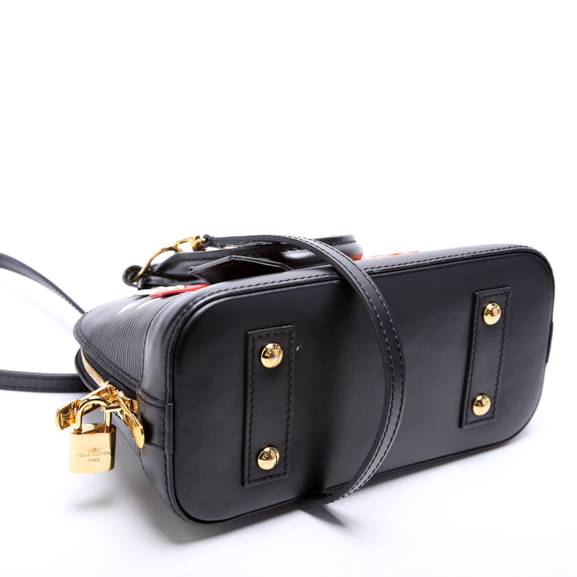 This Louis Vuitton Alma BBis eye catching bag. The exterior is in the classic Louis Vuitton Epi leather.