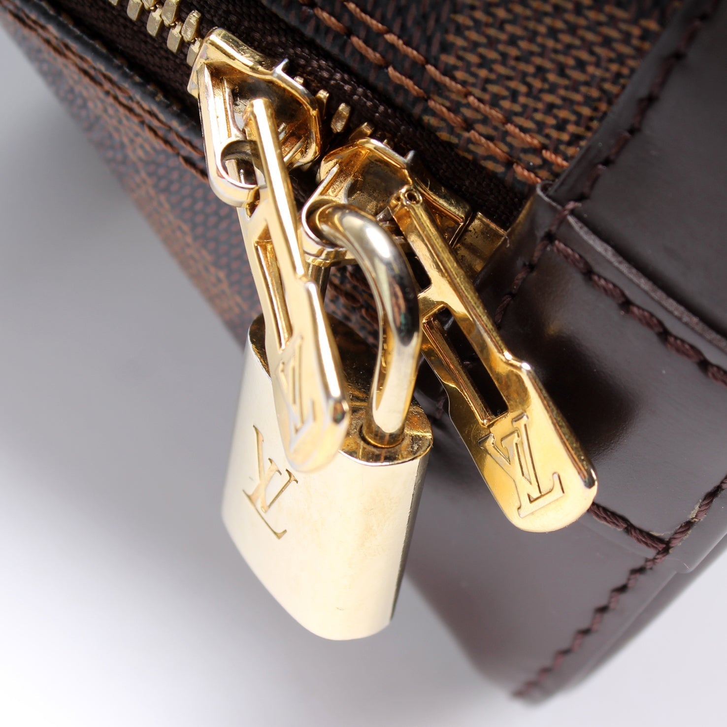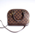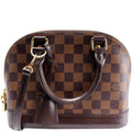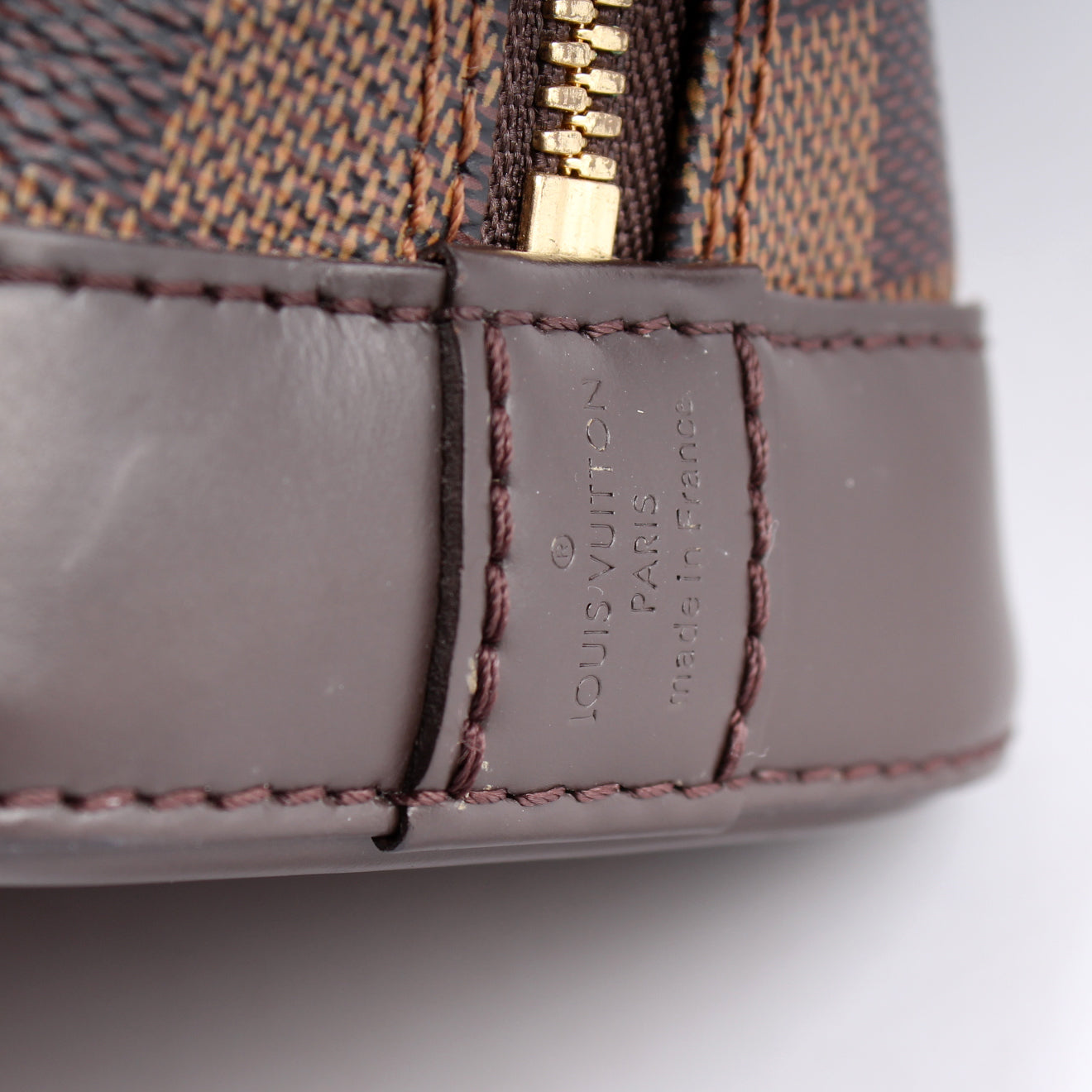 This Louis Vuitton Alma BB is guaranteed 100% authentic. The exterior is in the classic Damier Ebene coated canvas.