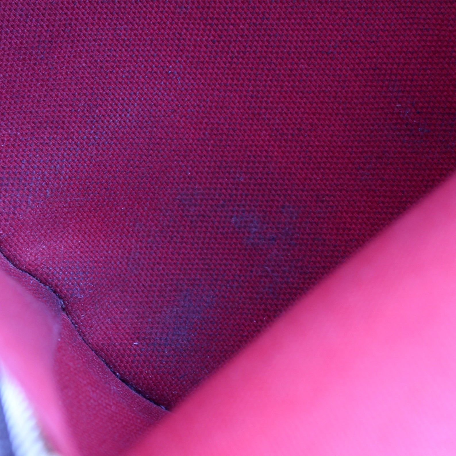 Interior: The interior is clean and free of rips or tears. It features one open pocket. There is minor discoloration near the zipper on the fabric.