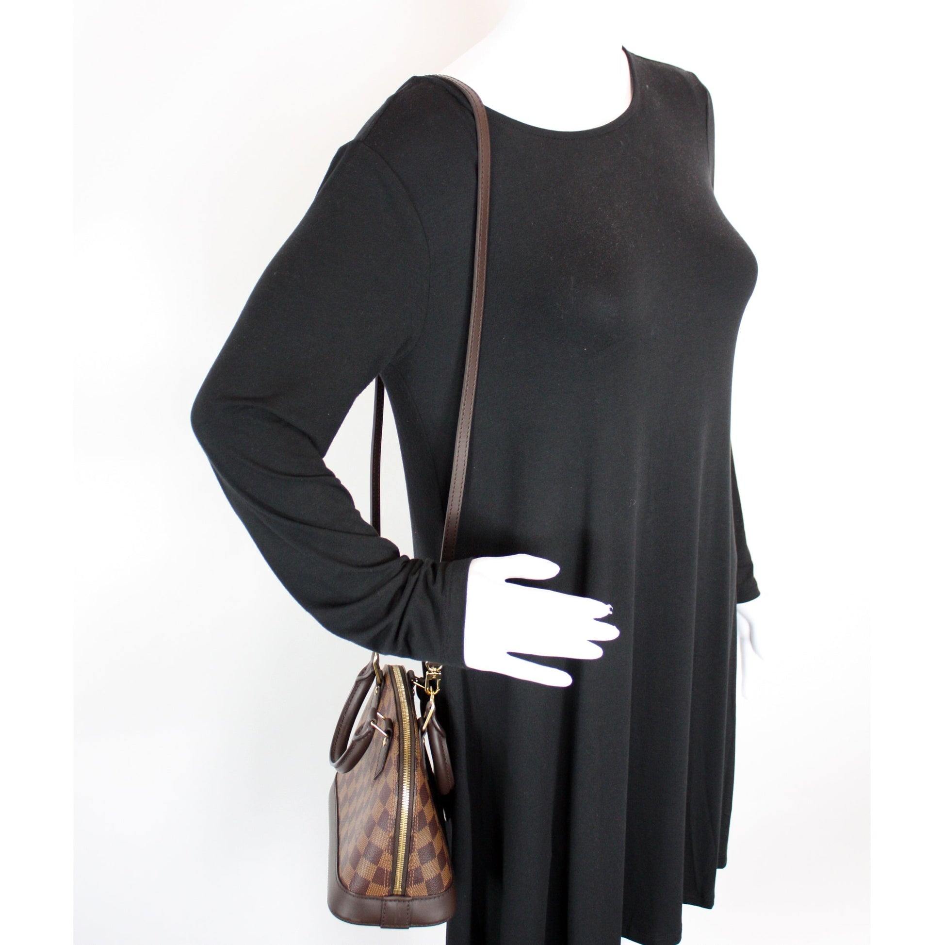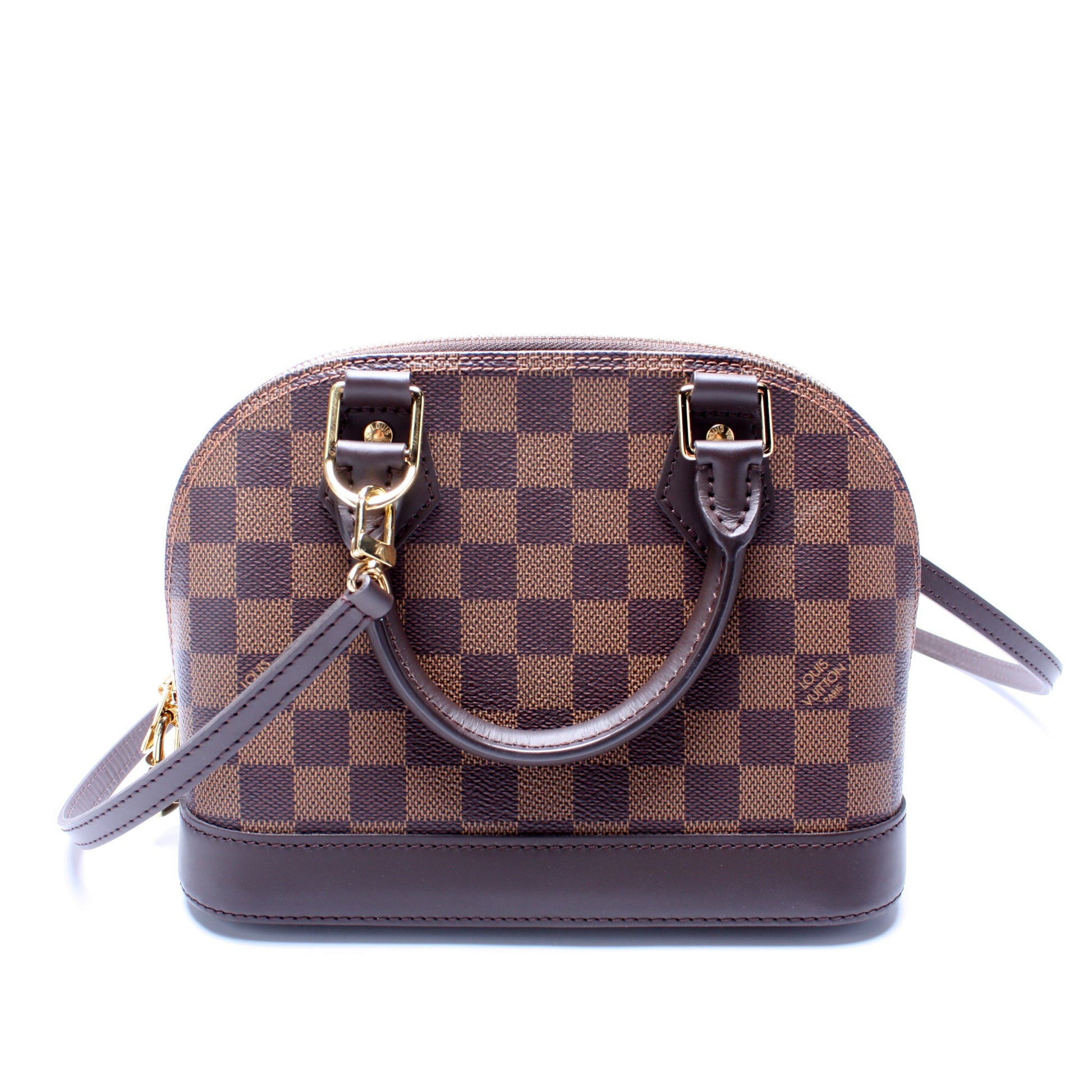 This Louis Vuitton Alma BB is guaranteed 100% authentic. The exterior is in the classic Damier Ebene coated canvas.