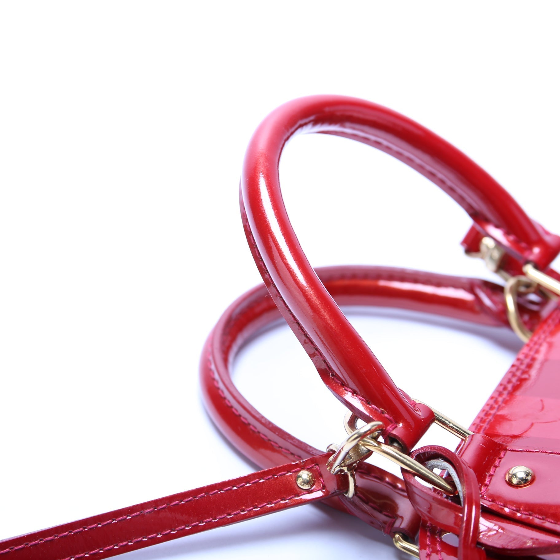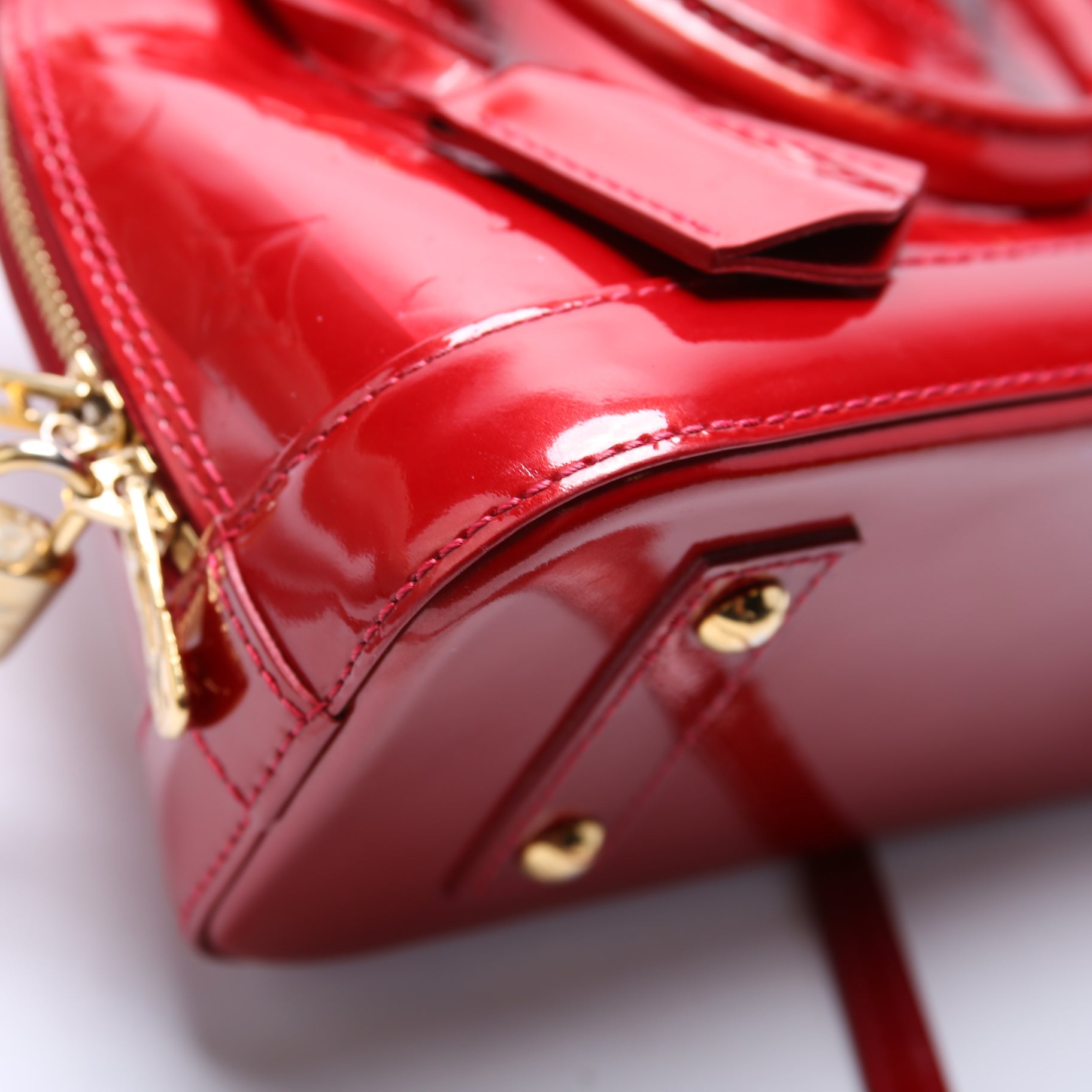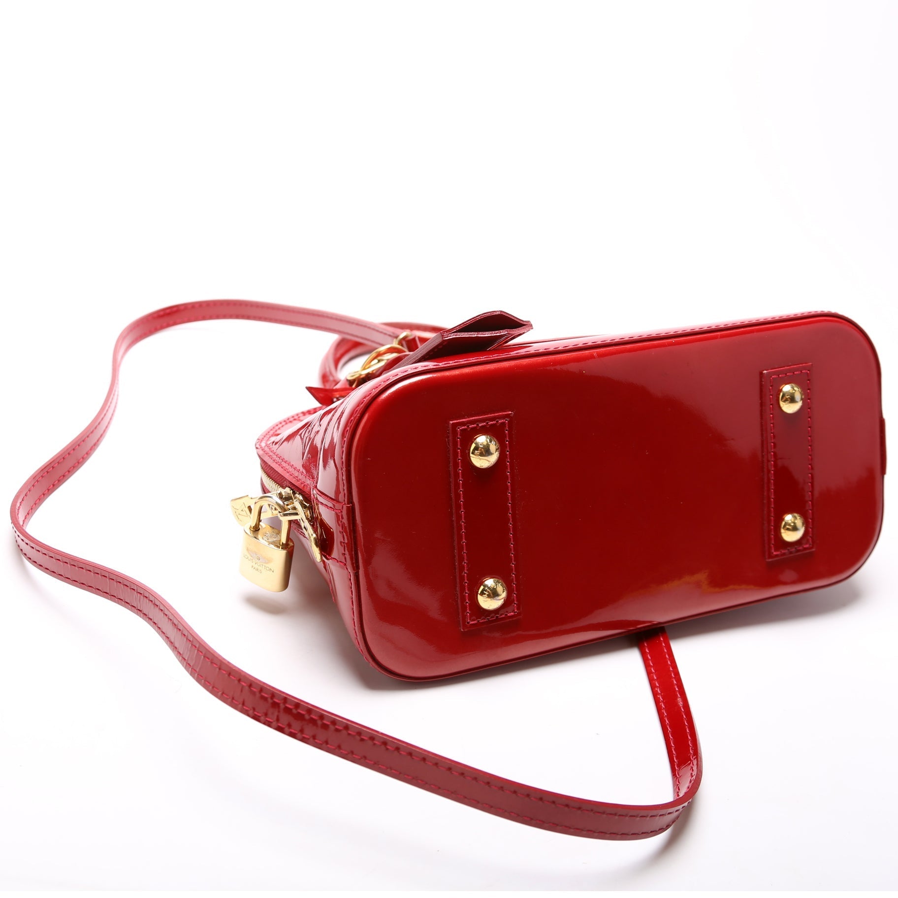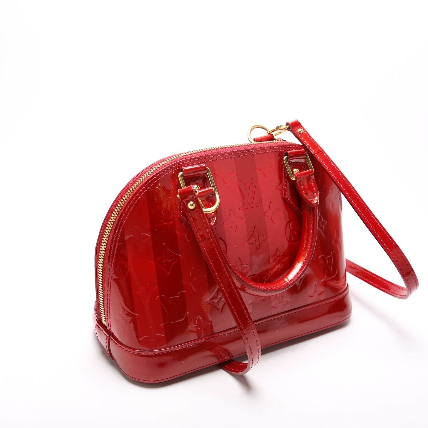 This Louis Vuitton Alma BB is d 100% . The exterior is in the classic Vernis leather.