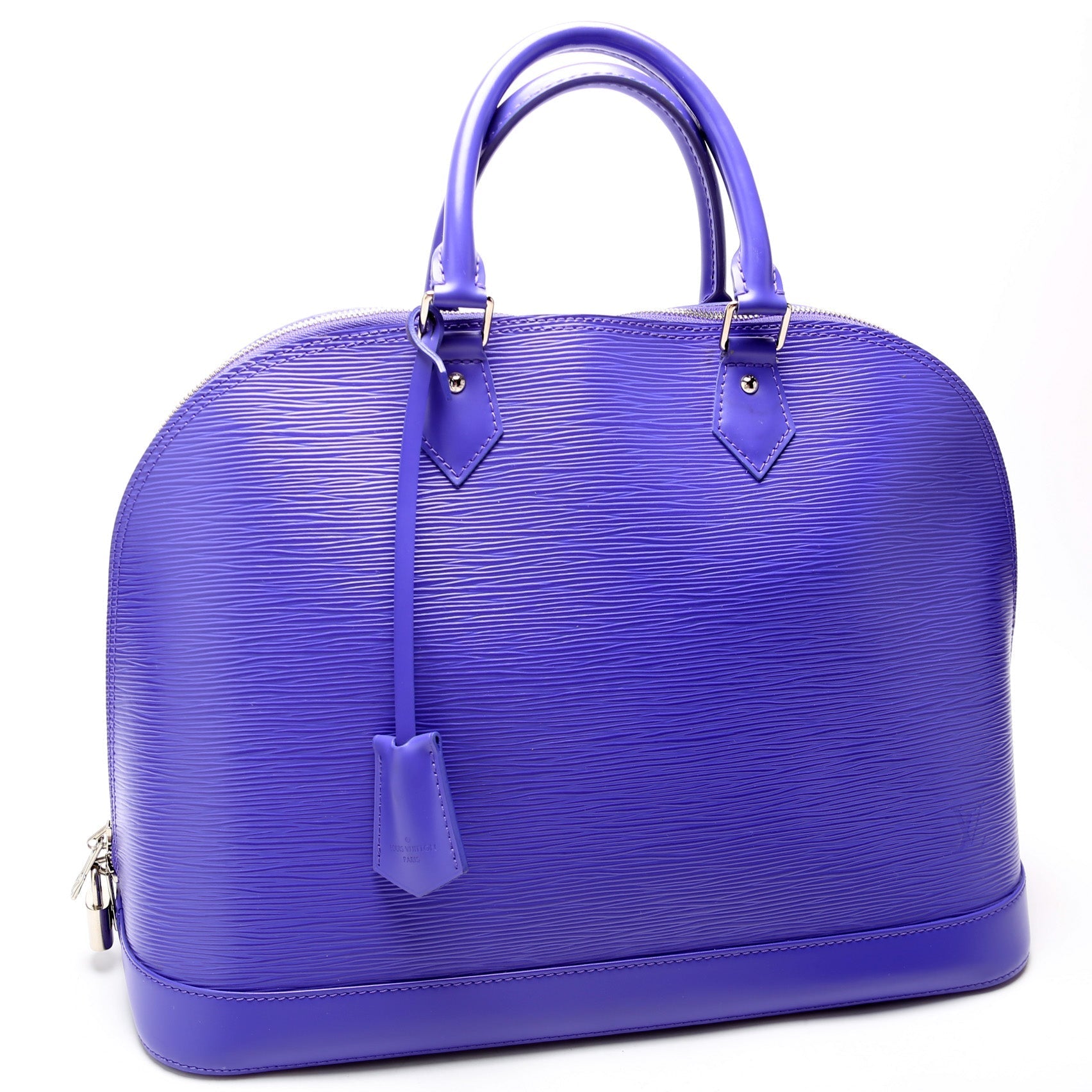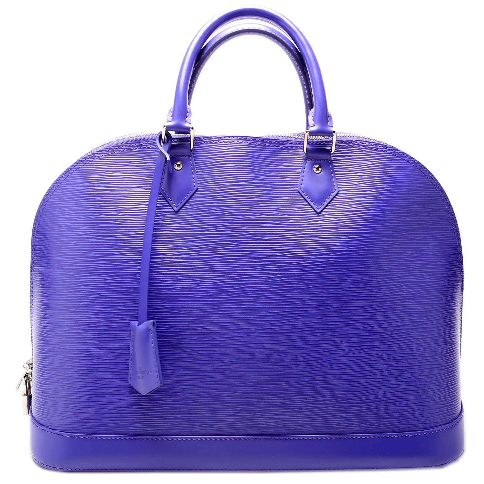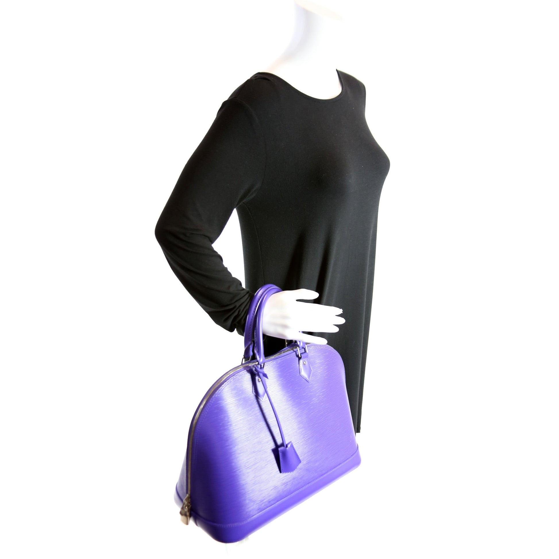 This Louis Vuitton Alma GMis eye catching bag. The exterior is in the classic Louis Vuitton Epi leather.