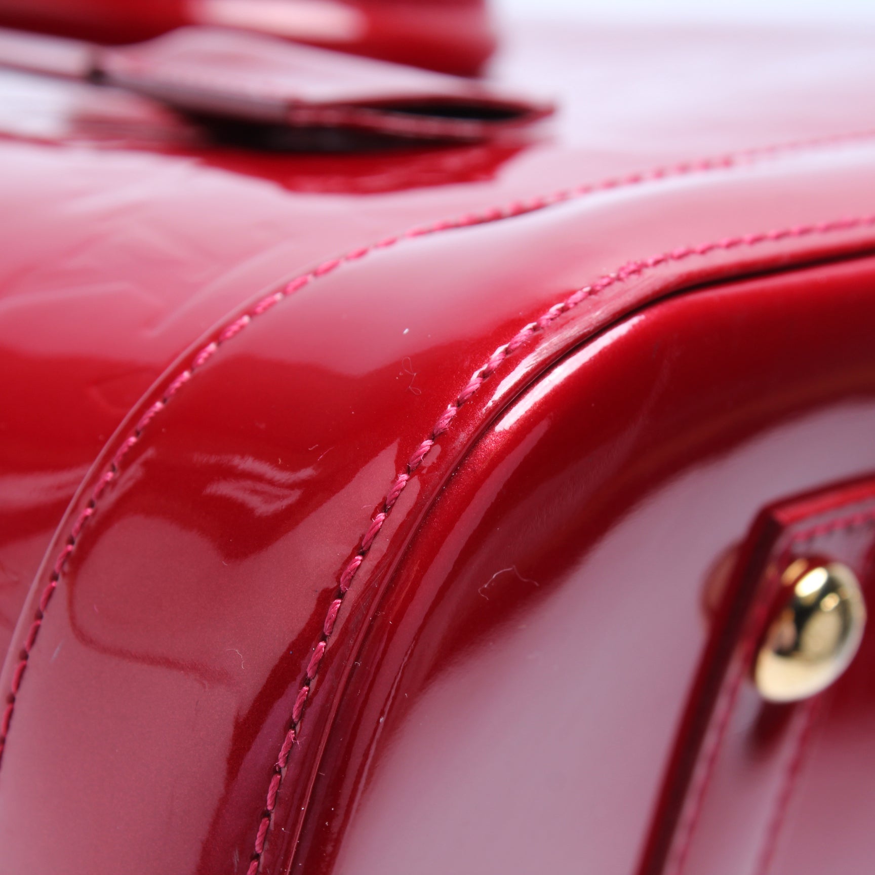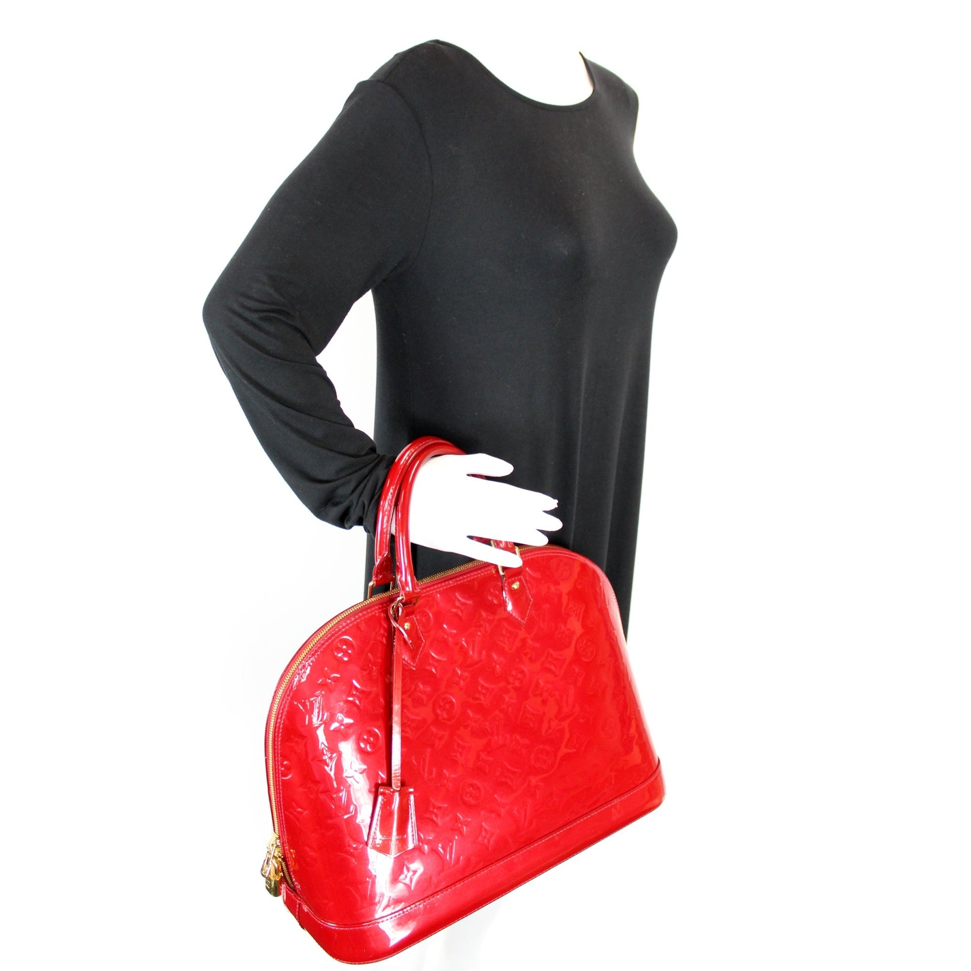 This Louis Vuitton Alma GMis eye catching bag. The exterior is in the classic Louis Vuitton Vernis leather.