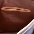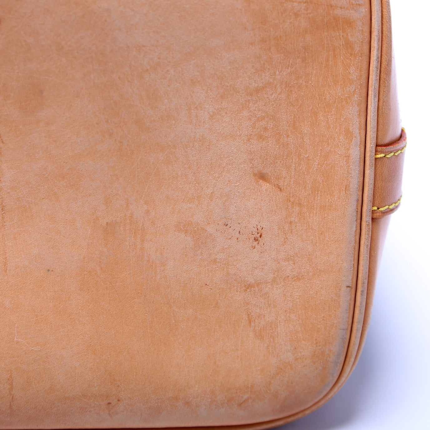 Exterior: The exterior canvas is free of any rips or cracks. The leather base shows heavy wear, scuffs, and discoloration.