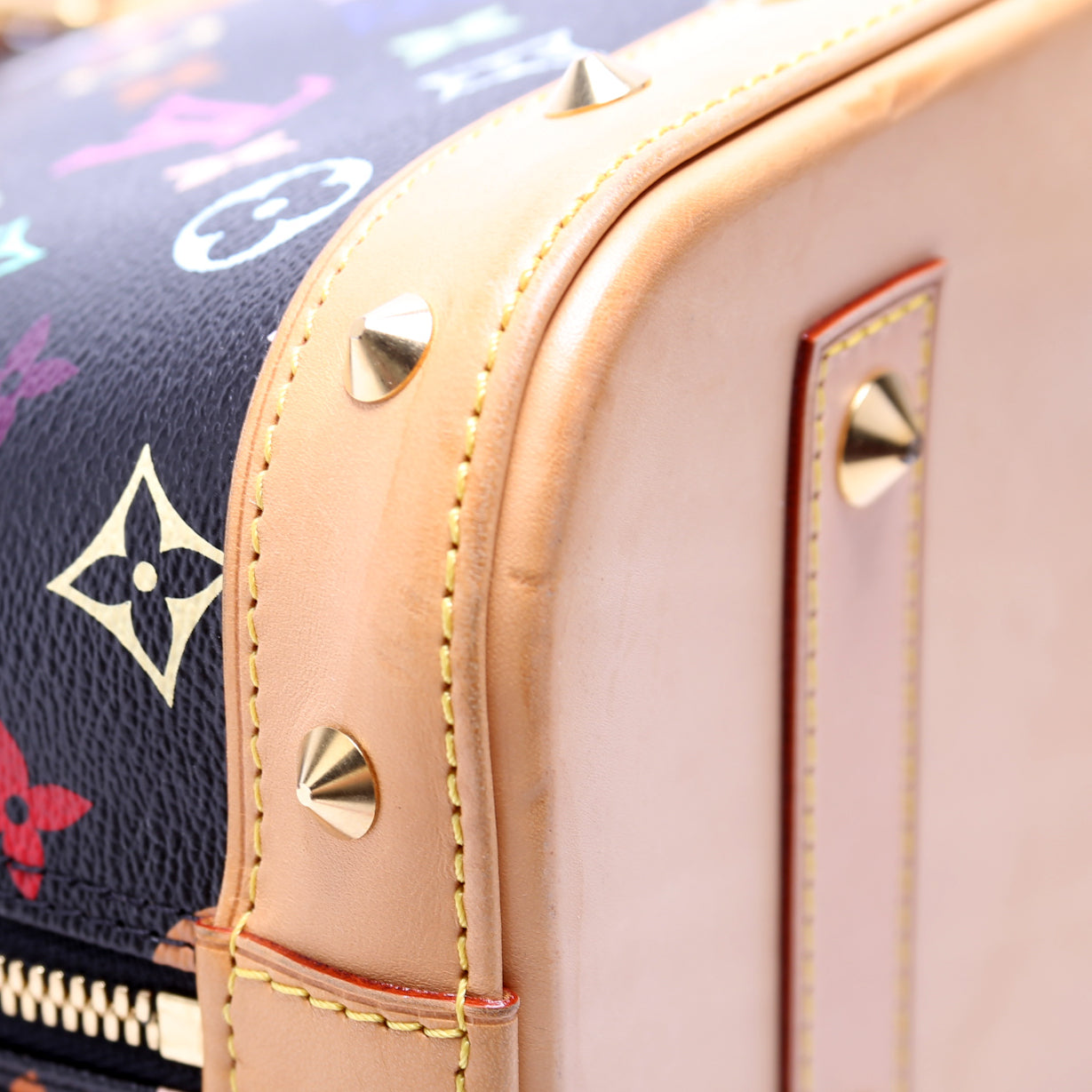 This Louis Vuitton Alma PMis eye catching bag. The exterior is in the classic Louis Vuitton Multicolor Monogram coated canvas.
