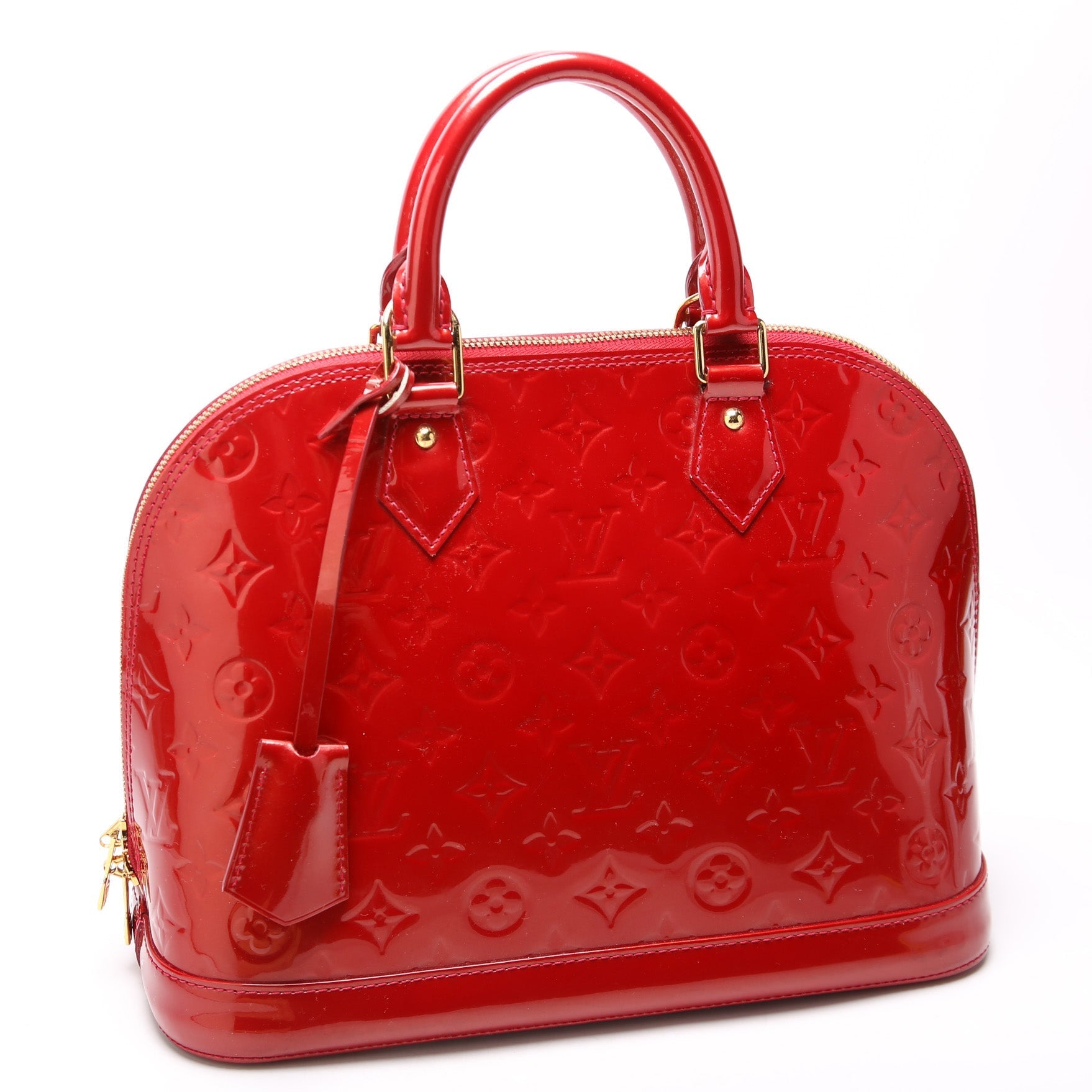 This Louis Vuitton Alma PMis eye catching bag. The exterior is in the classic Vernis leather.