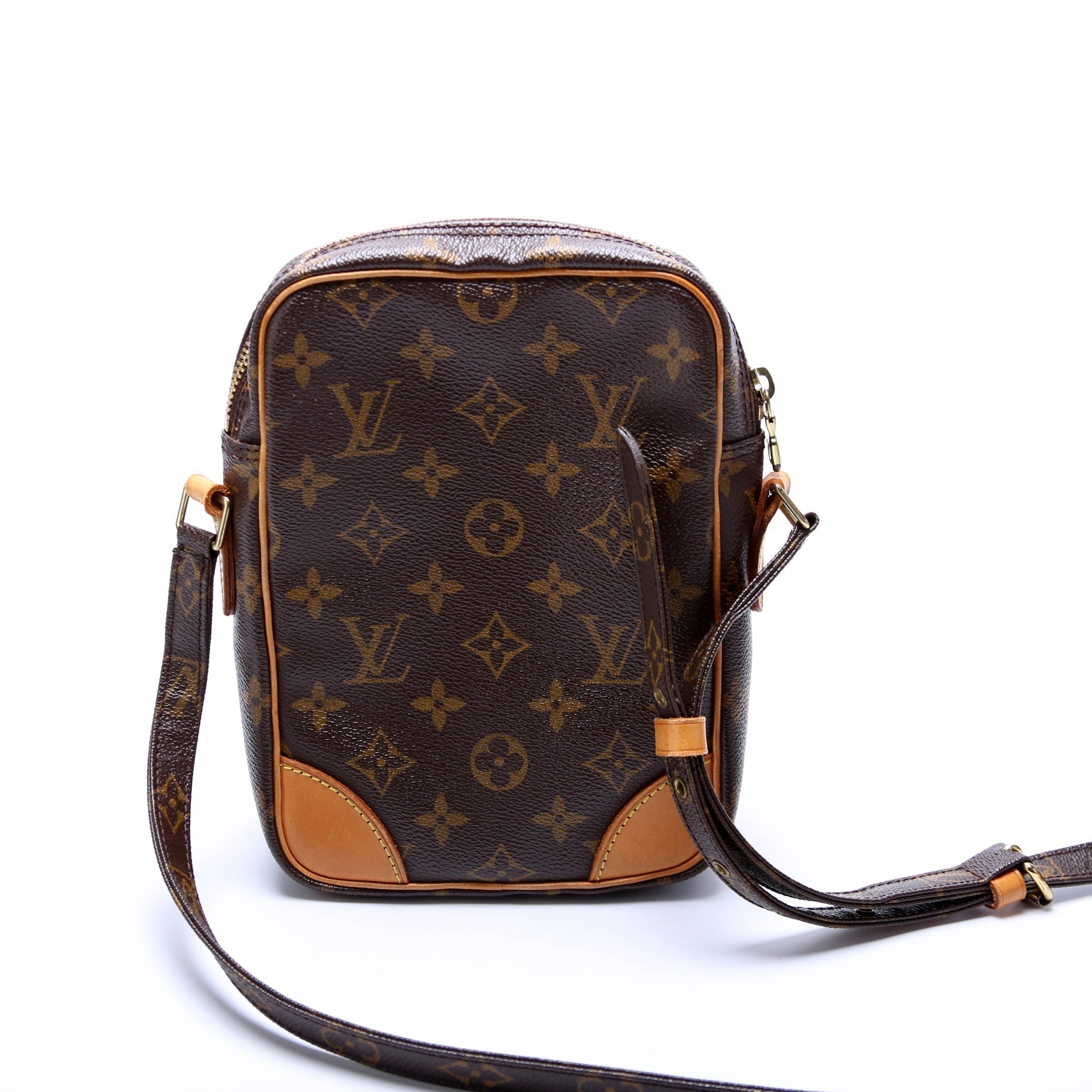 This Louis Vuitton Amazone Miniis eye catching bag. The exterior is in the classic Louis Vuitton Monogram coated canvas.