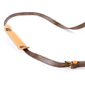 Exterior: The exterior coated canvas is free of any rips or cracks. The exterior features one zipper pocket. The leather details show minor wear.