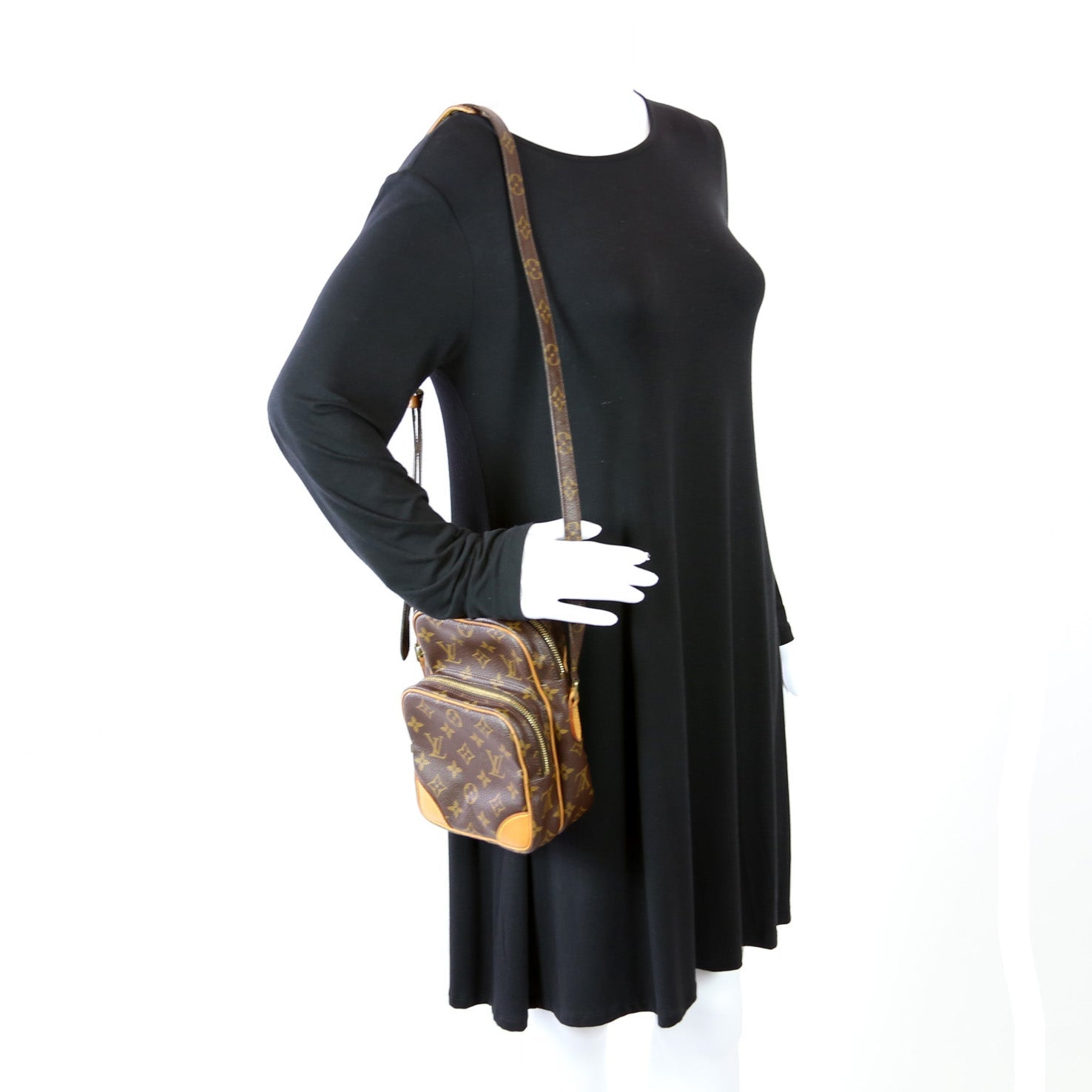 This Louis Vuitton Amazone Miniis eye catching bag. The exterior is in the classic Louis Vuitton Monogram coated canvas.