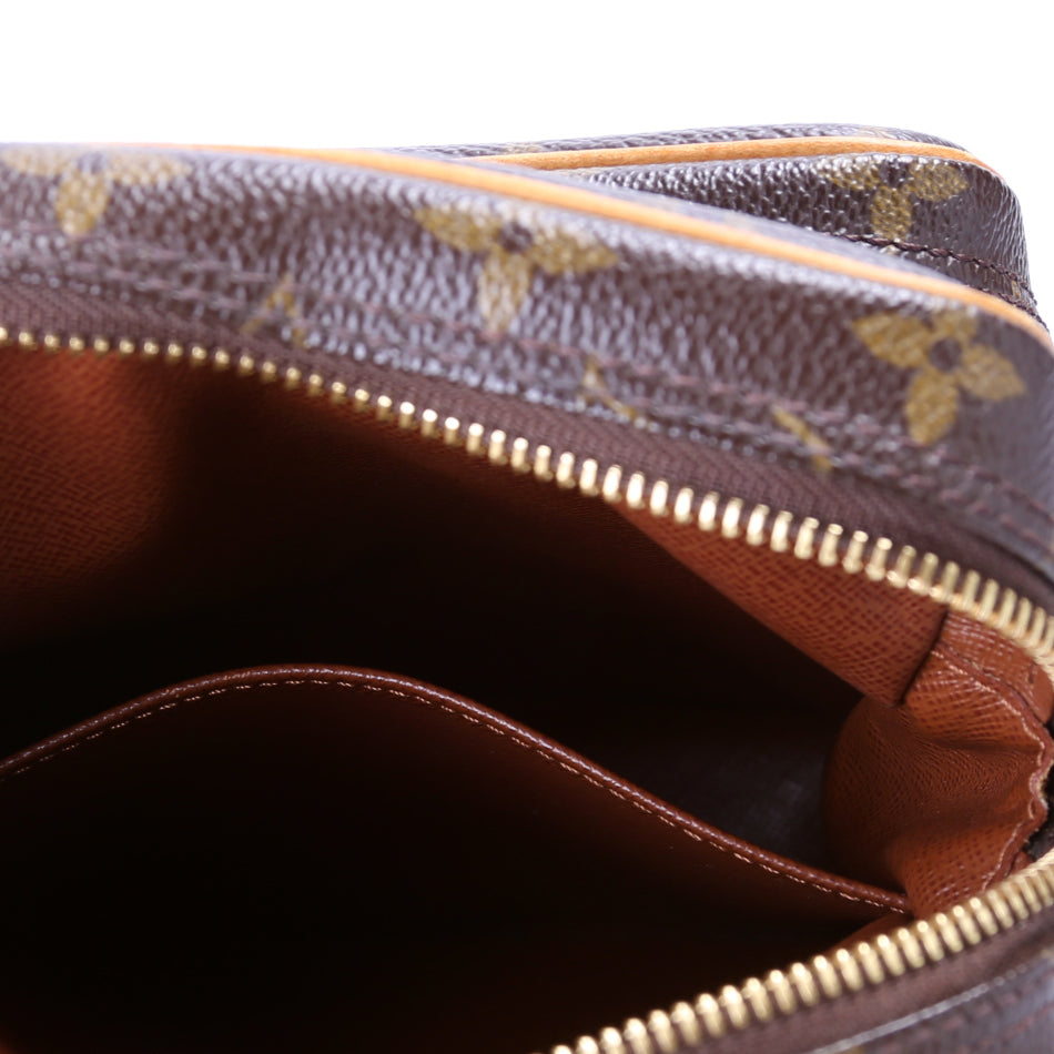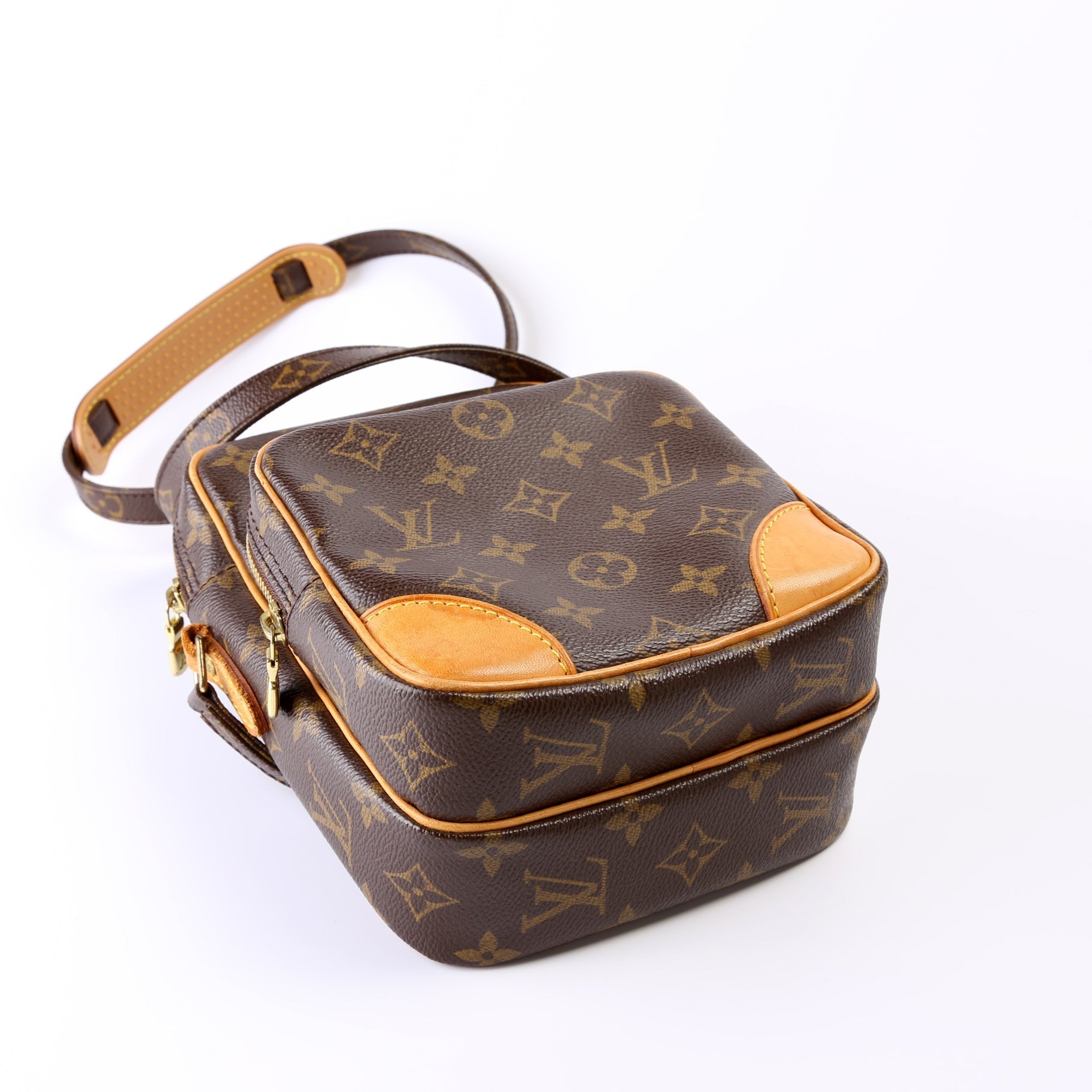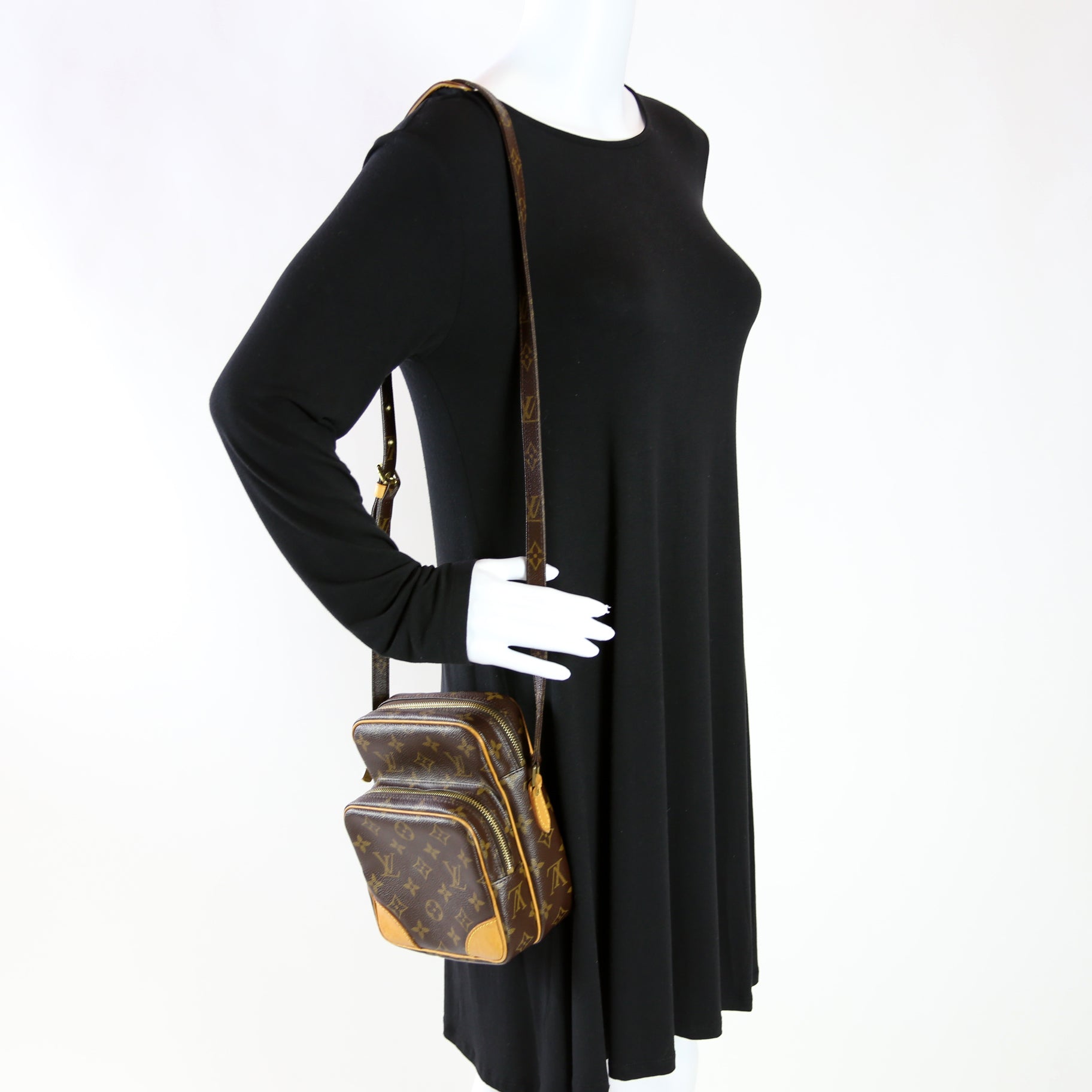 This Louis Vuitton Amazone Miniis eye catching bag. The exterior is in the classic Louis Vuitton Monogram coated canvas.