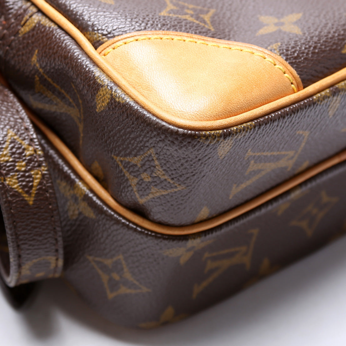 Exterior: The exterior coated canvas is free of any rips or cracks. The corners and leather details show minor signs of wear.