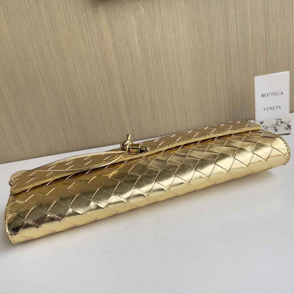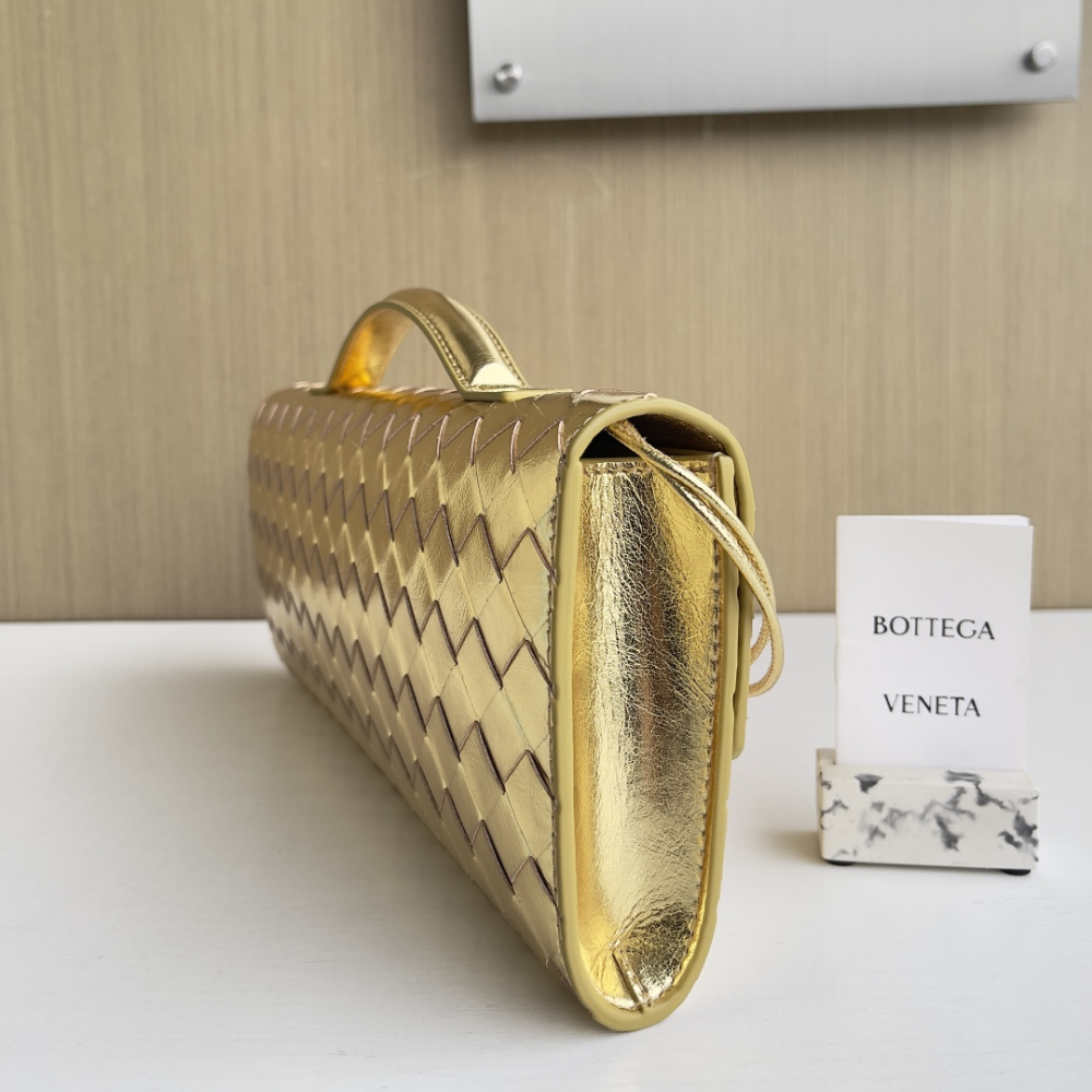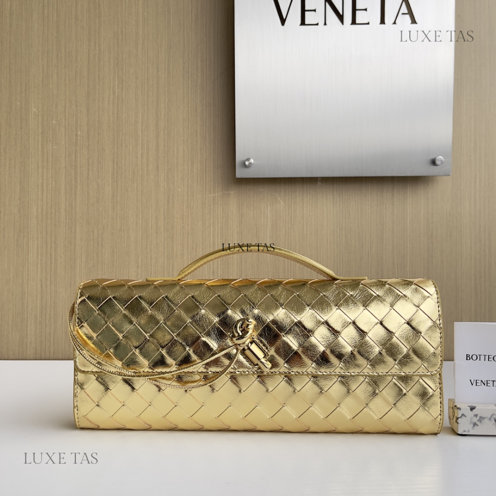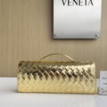 Andiamo Intrecciato Metallic Leather Long Clutch In Gold Designer Clutch for Women