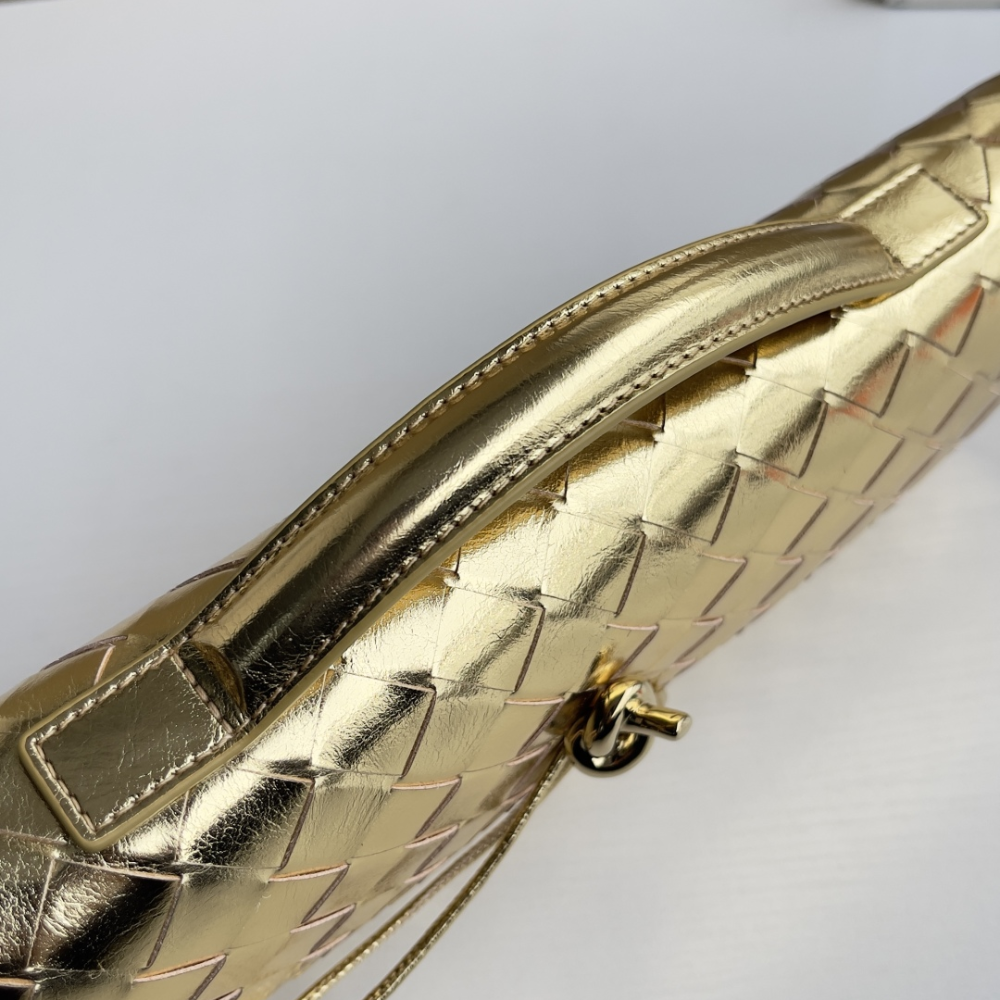 A refined blend of elegance and modern edge, this top-handle clutch showcases Intrecciato leather with a striking foggy mirror effect. Finished with the iconic knot closure, it’s a statement piece designed for sophisticated style.