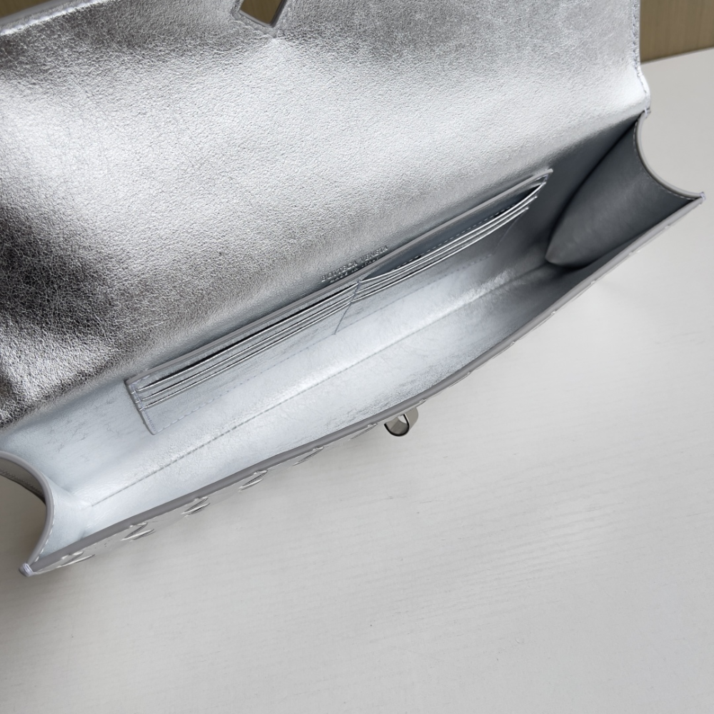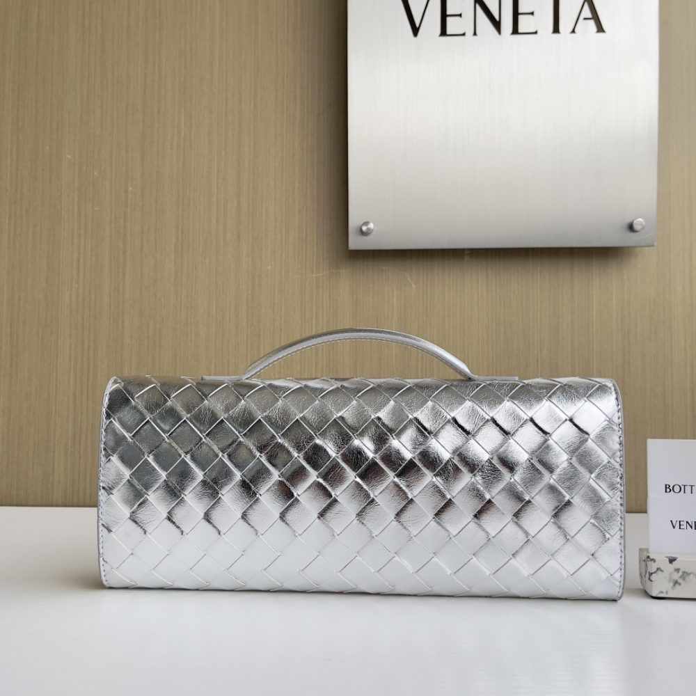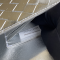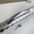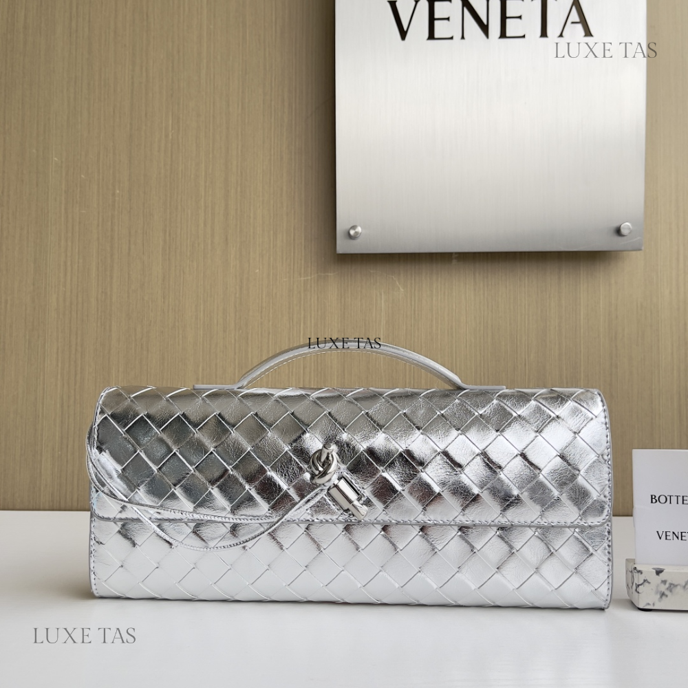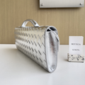 A refined blend of elegance and modern edge, this top-handle clutch showcases Intrecciato leather with a striking foggy mirror effect. Finished with the iconic knot closure, it’s a statement piece designed for sophisticated style.