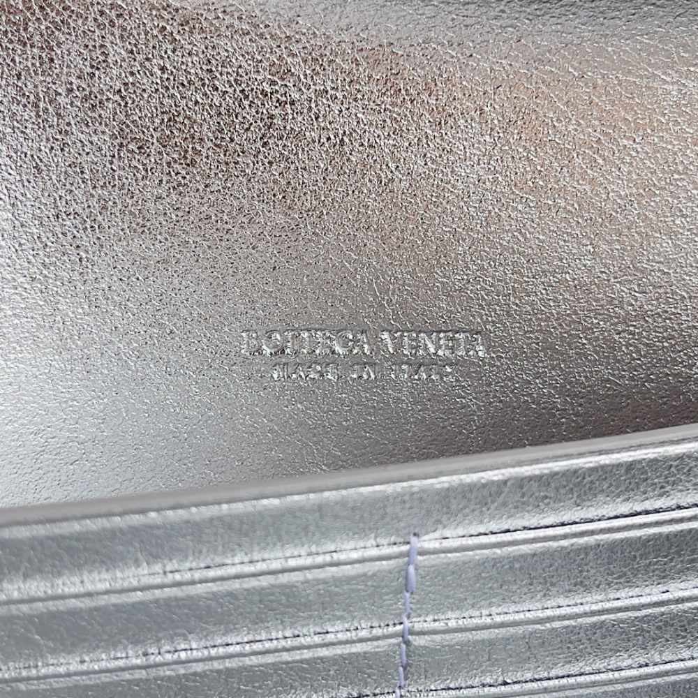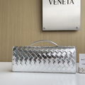 Andiamo Intrecciato Metallic Leather Long Clutch In Silver Designer Clutch for Women