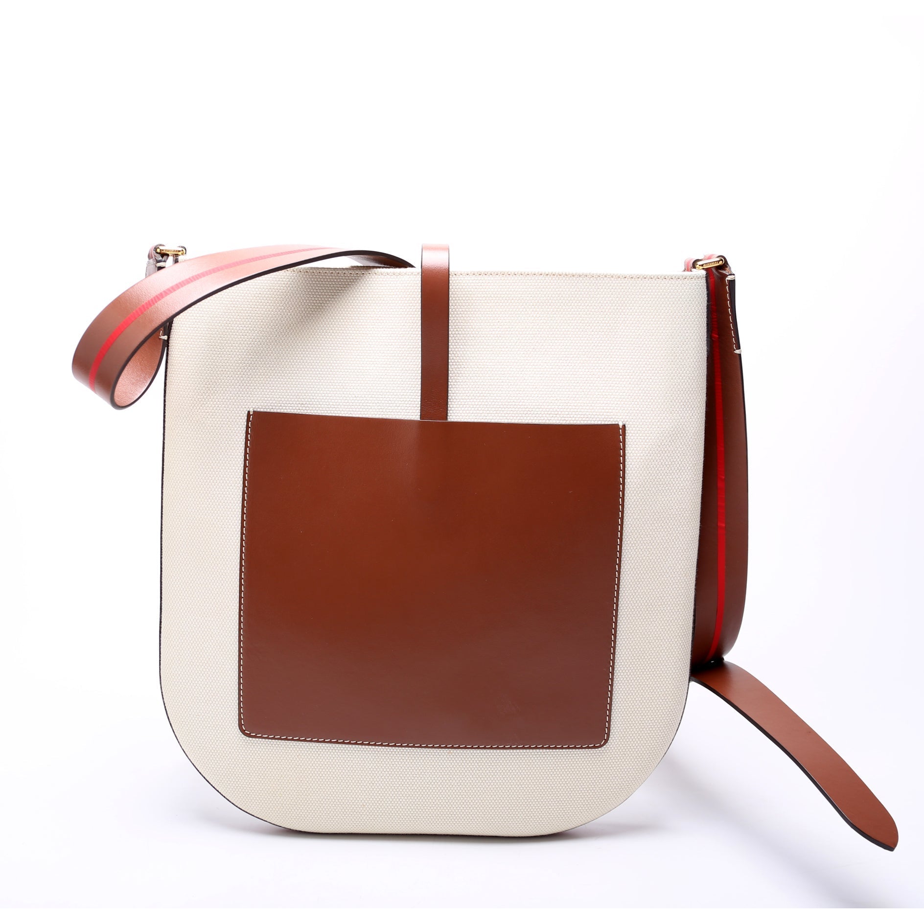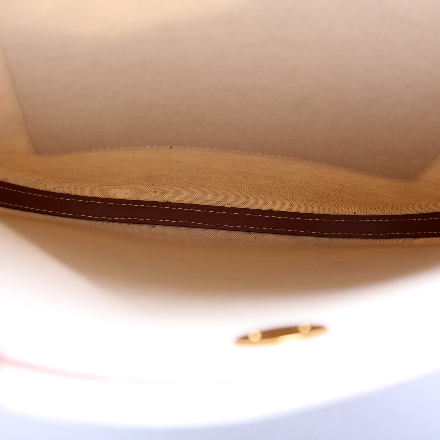 Exterior: The exterior canvas is free from any rips or cracks. The exterior features one open pocket. The leather pocket has minor scuffs.