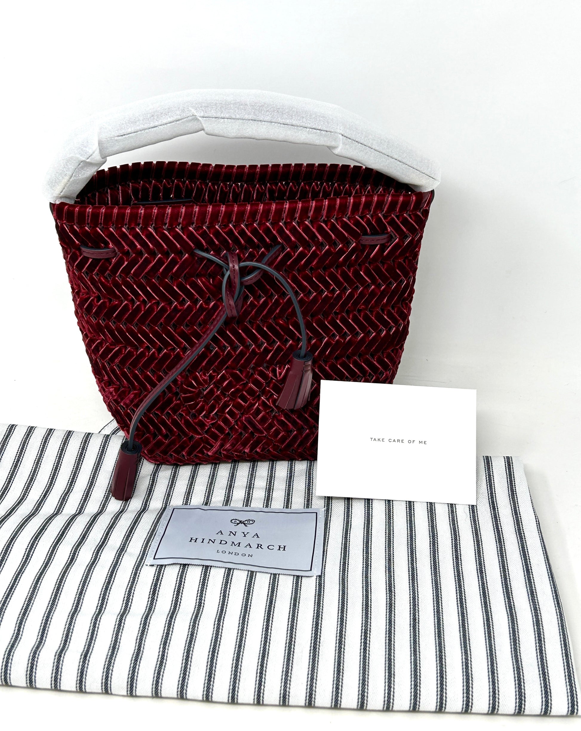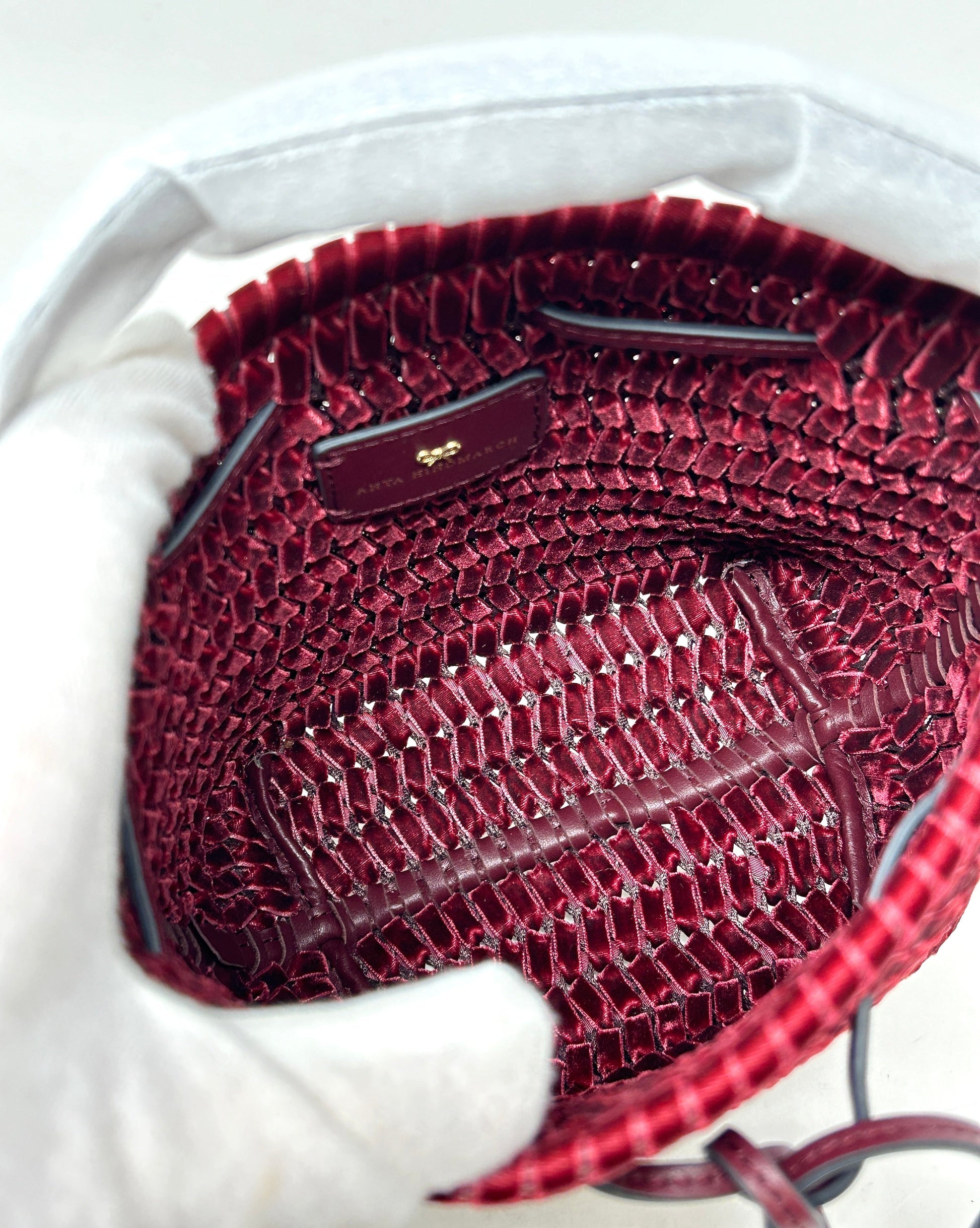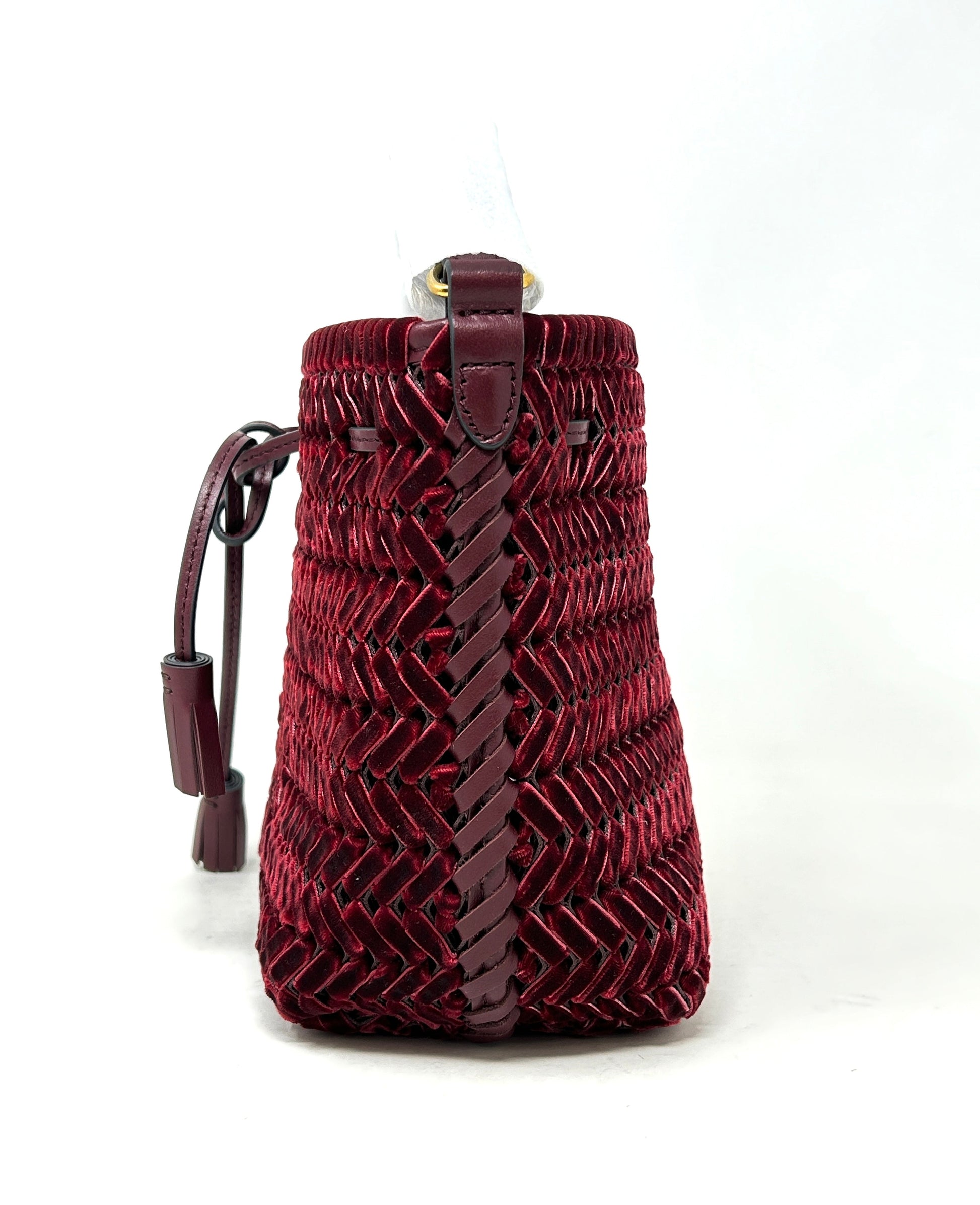 Anya Hindmarch Neeson Oxblood Velvet Woven Drawstring Bucket Bag