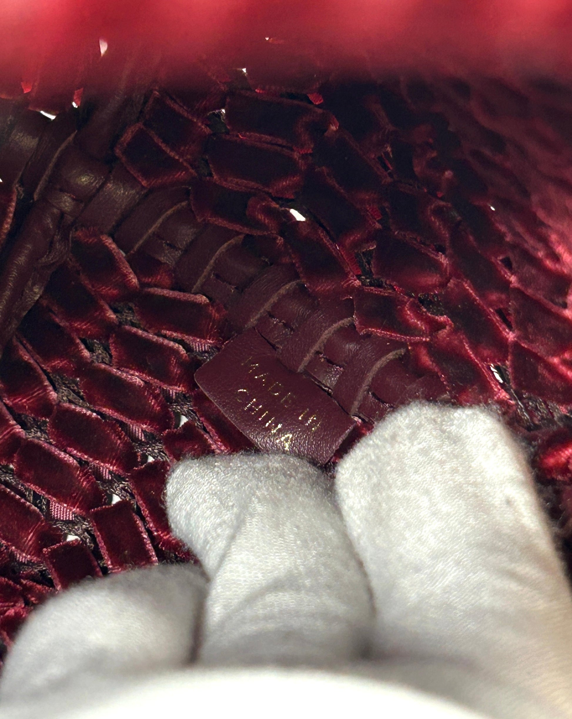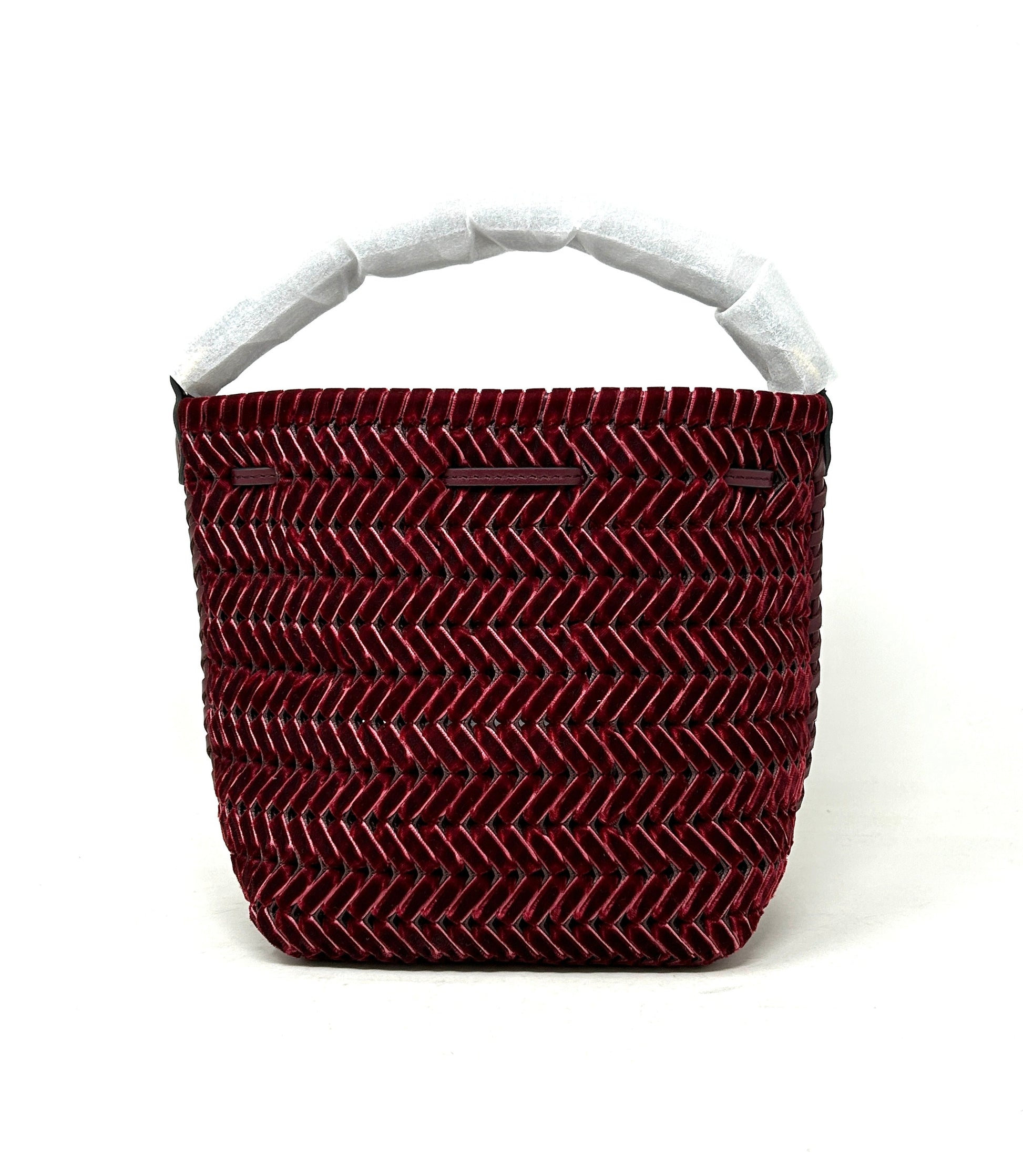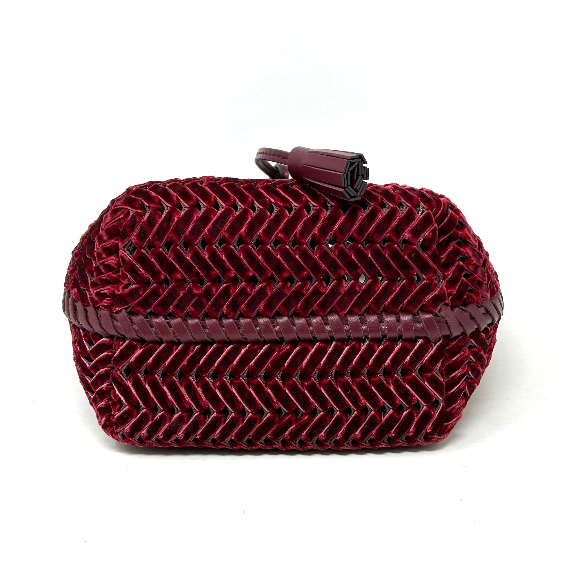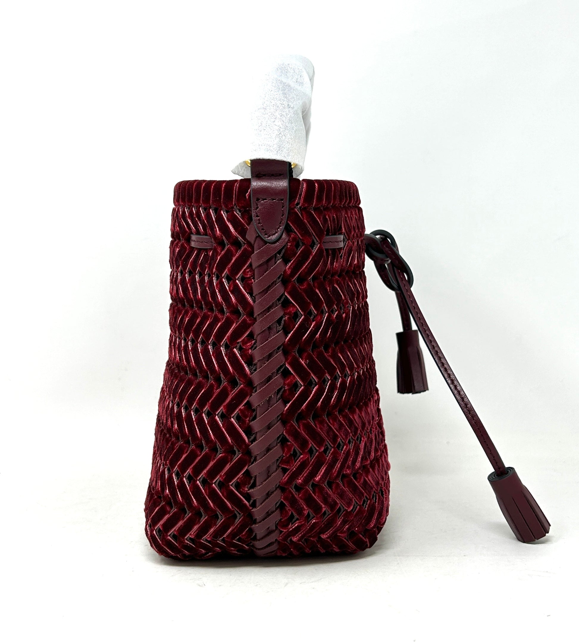 Anya Hindmarch Neeson Oxblood Velvet Woven Drawstring Bucket Bag