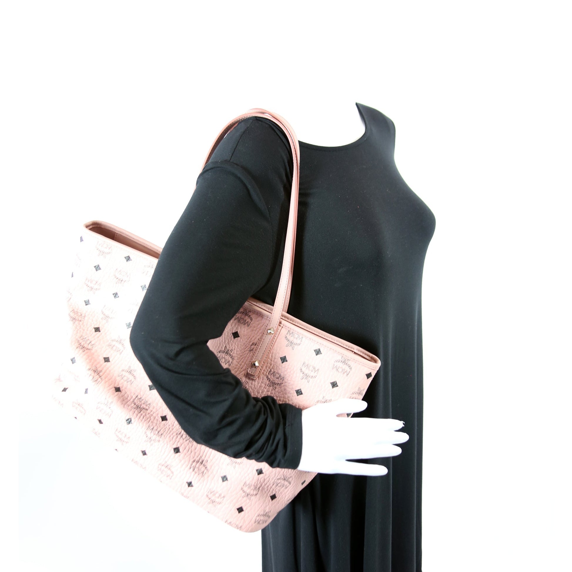 This MCM Anya Large Tote W/ Pouchis eye catching bag. The exterior is in the classic MCM Visetos leather.