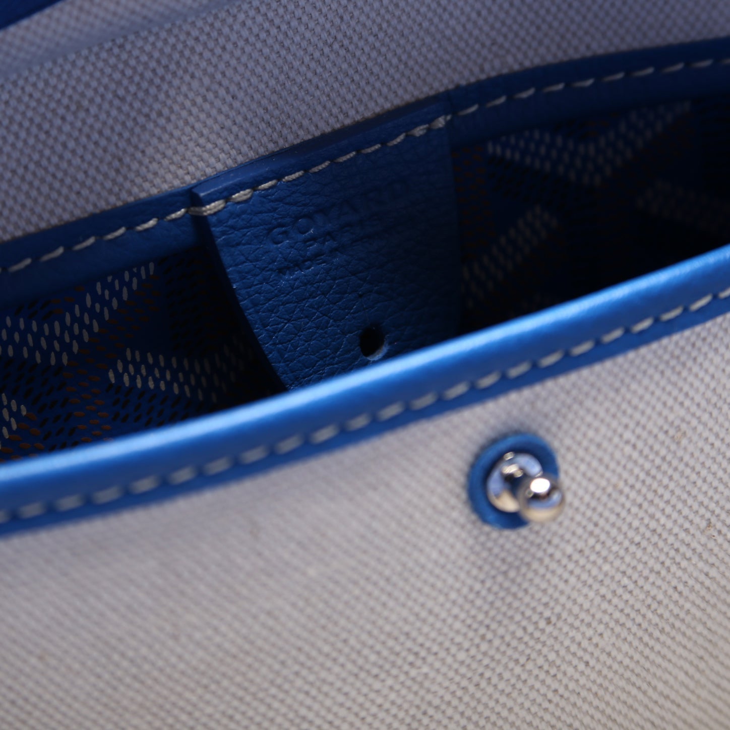 Exterior: The exterior Goyardine Coated Canvas is free from wear. The leather corners show minor scuffs.