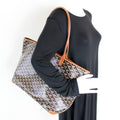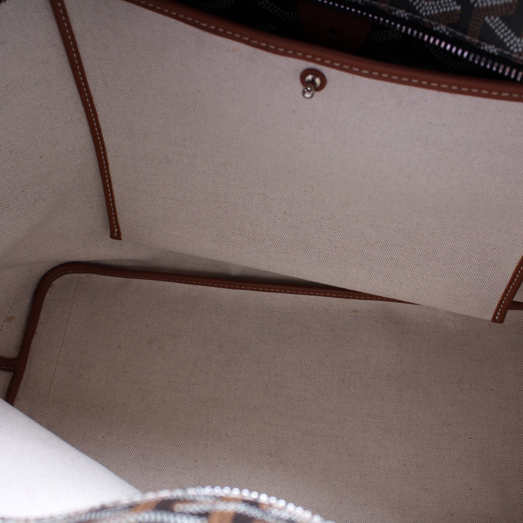 This Goyard Artois MM Toteis eye catching bag. The exterior is in the classic Guyard classic colors coated canvas