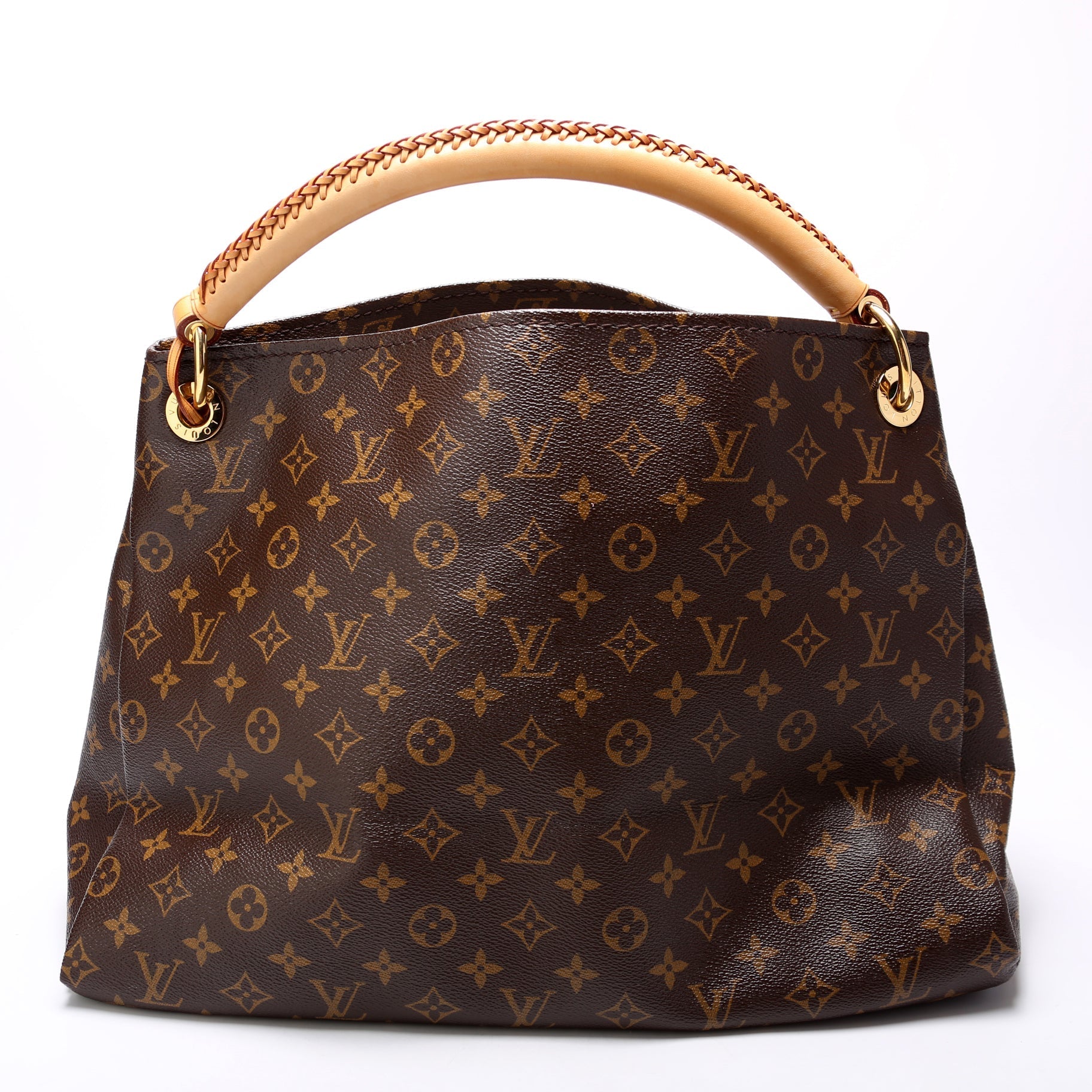 This Louis Vuitton Artsy MMis eye catching bag. The exterior is in the classic Louis Vuitton Monogram coated canvas.