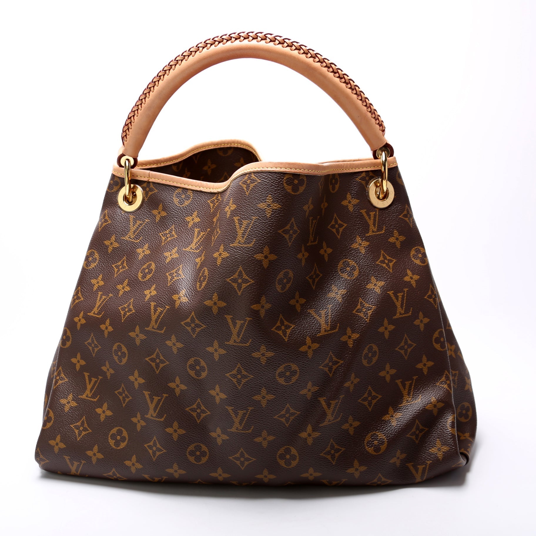 This Louis Vuitton Artsy MM NMis eye catching bag. The exterior is in the classic Louis Vuitton Monogram coated canvas.