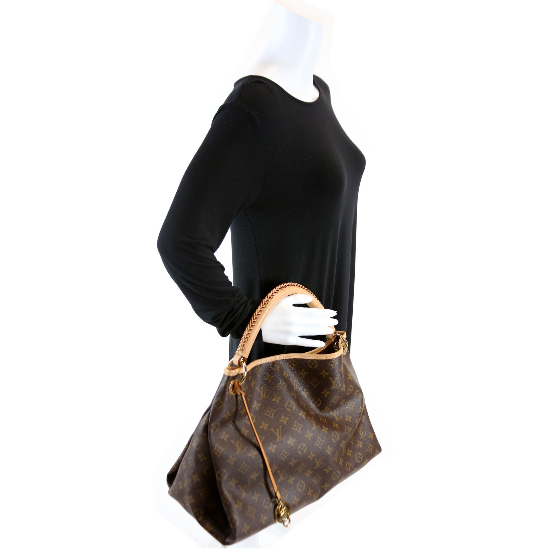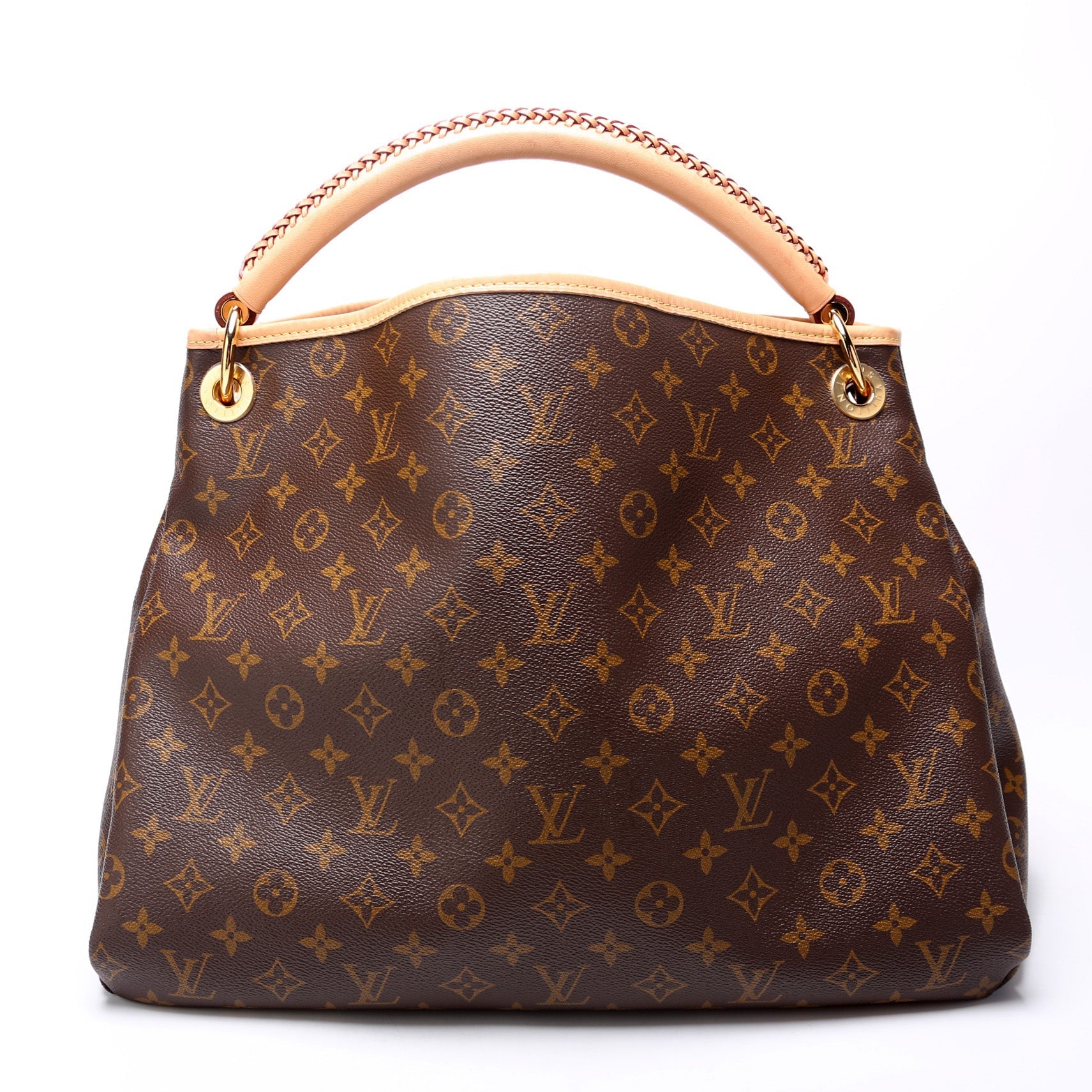 This Louis Vuitton Artsy MM NMis eye catching bag. The exterior is in the classic Louis Vuitton Monogram coated canvas.