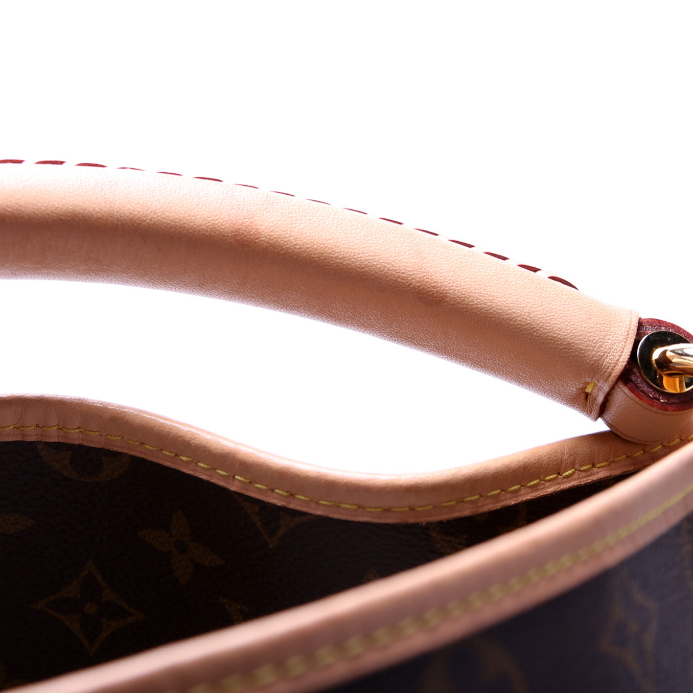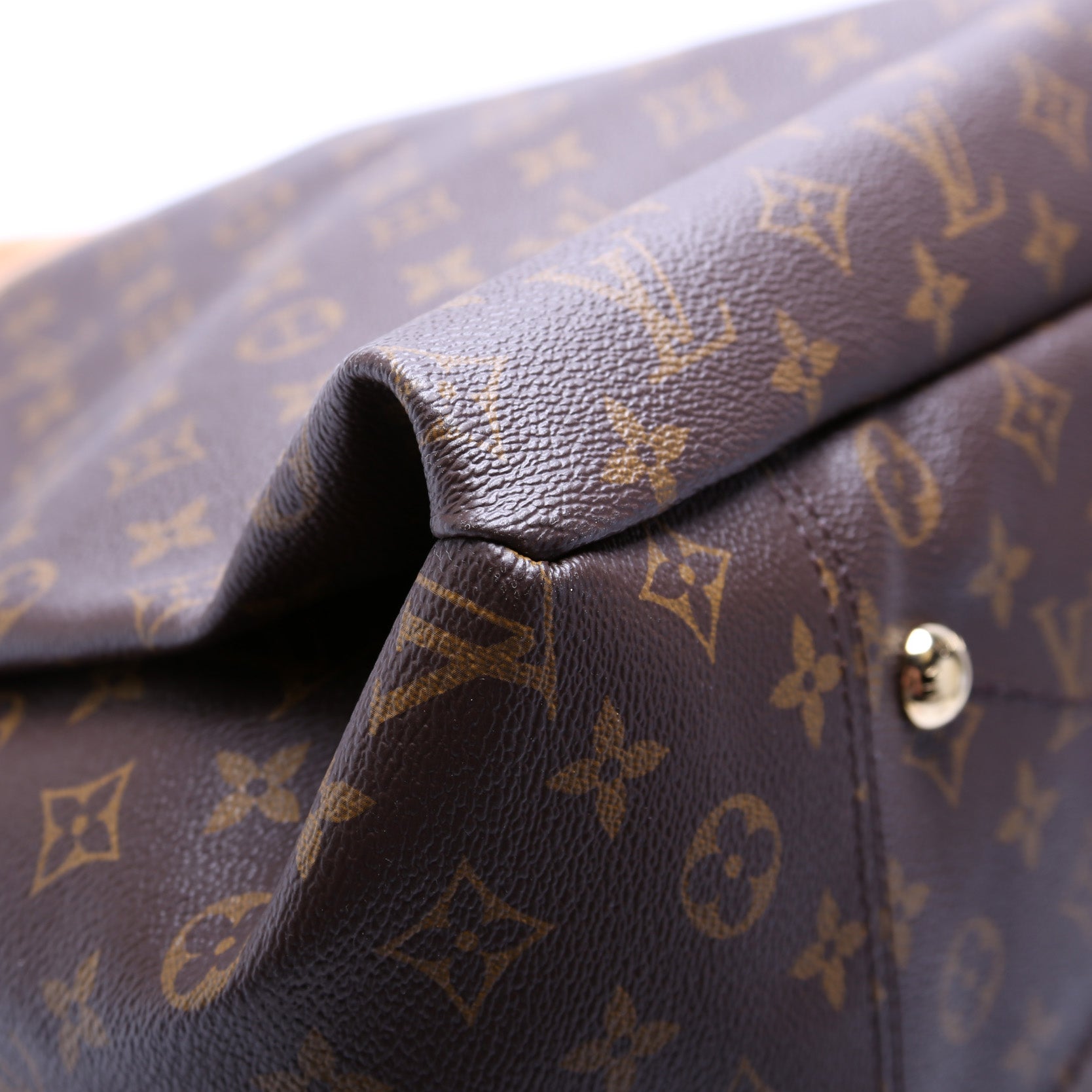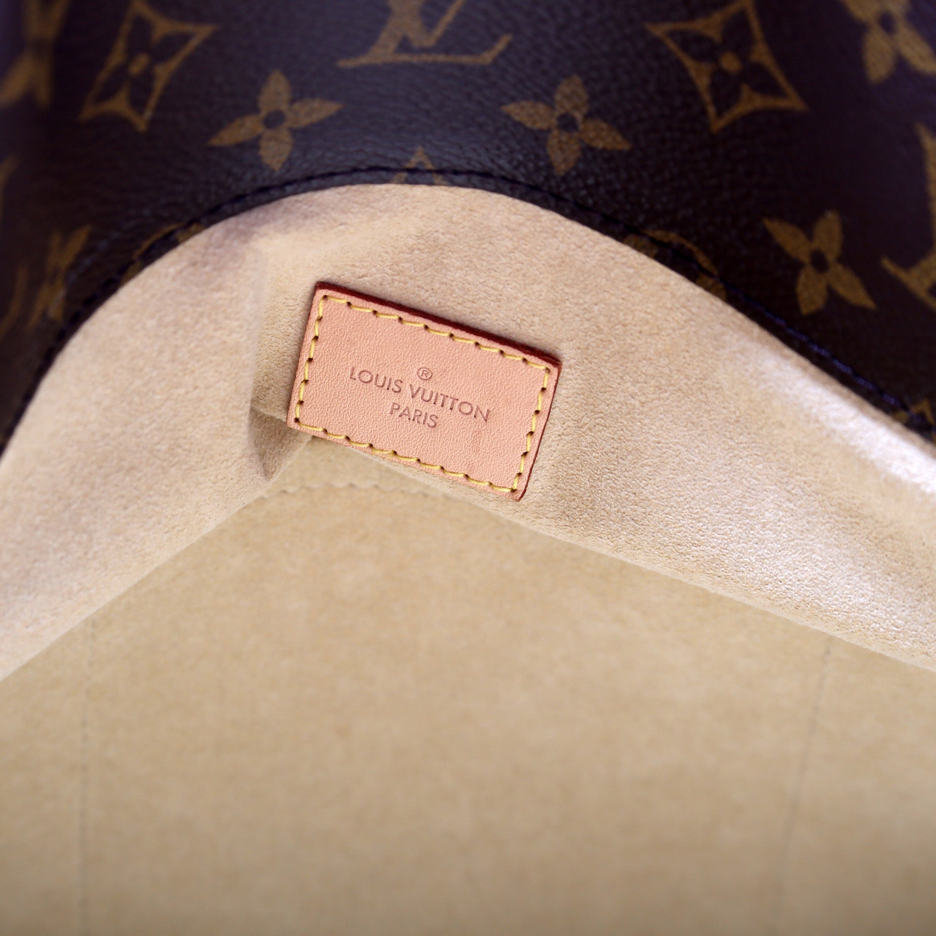 Exterior: The exterior canvas is free from any rips or cracks. The leather trim shows light wear and discoloration.