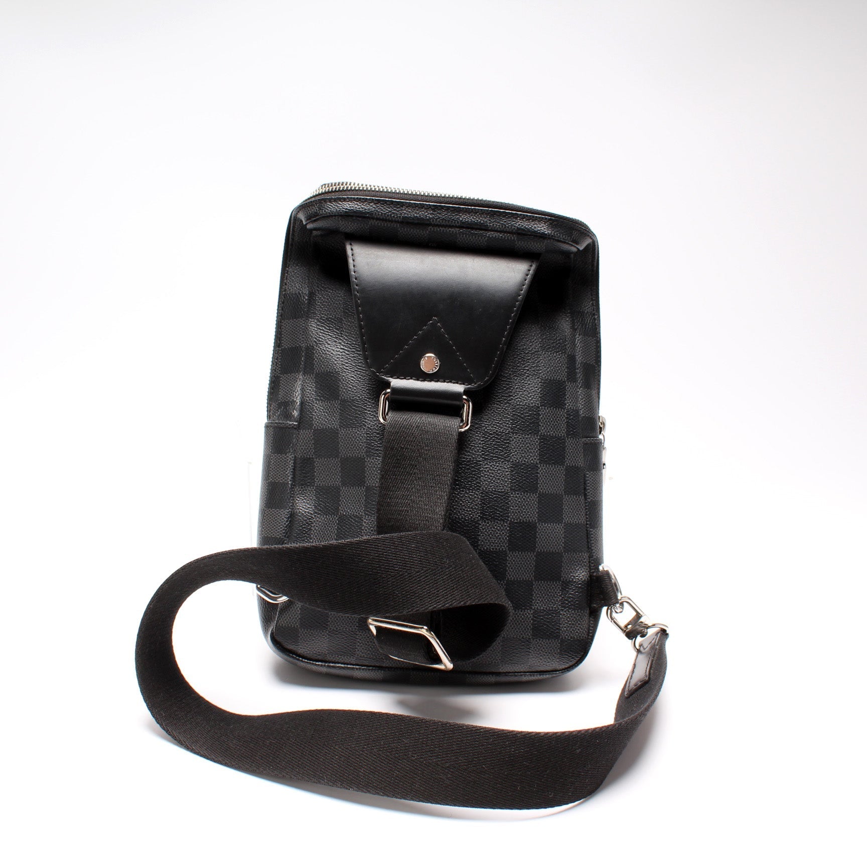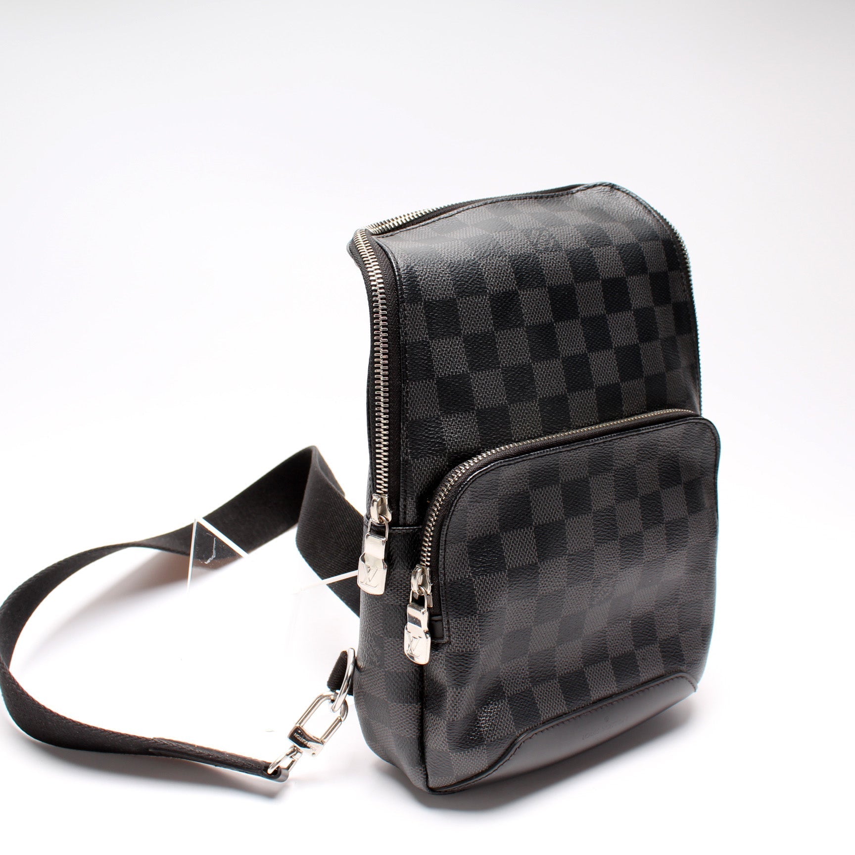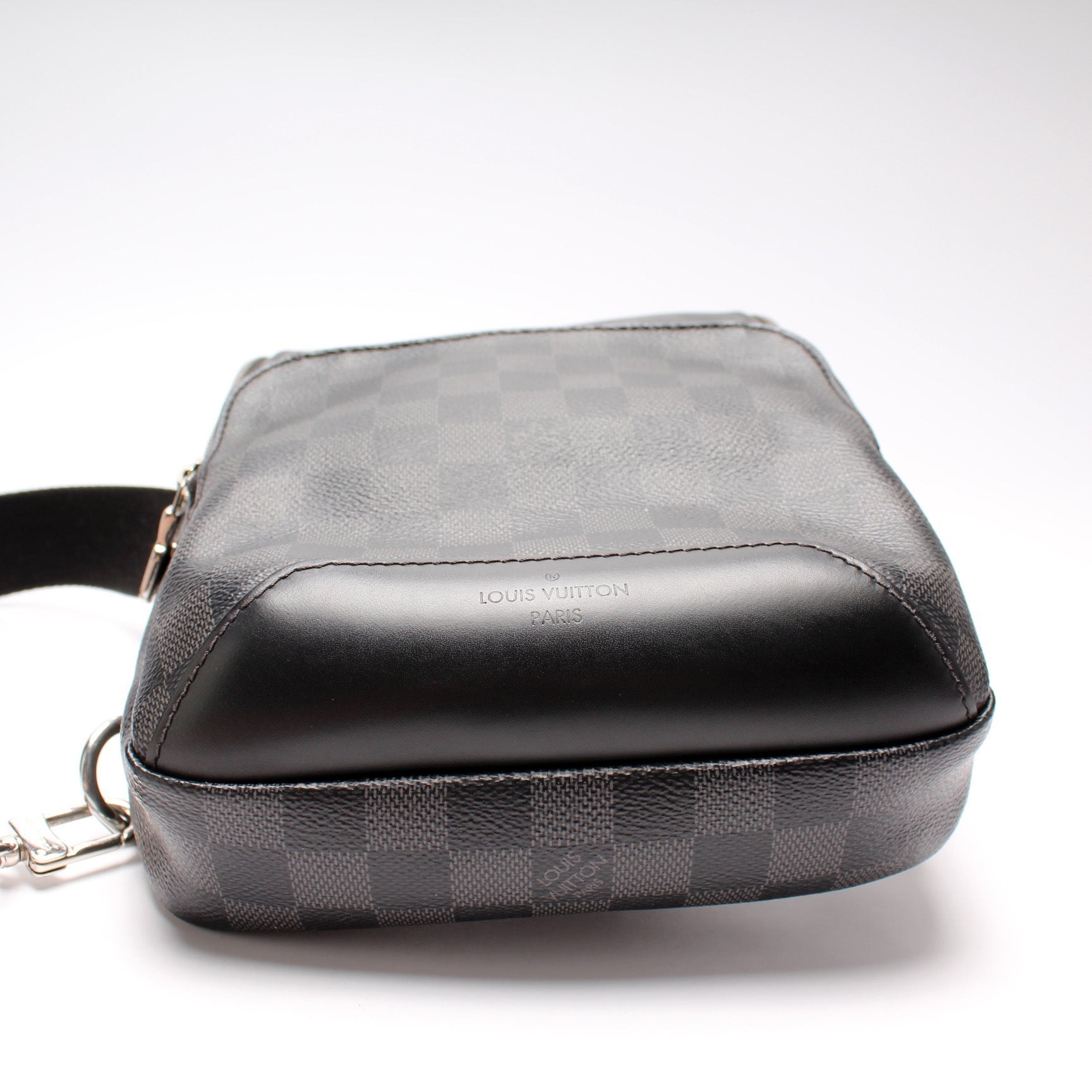 This Louis Vuitton Avenue Sling Bag is d 100% . The exterior is the Damier Graphite coated canvas.