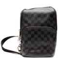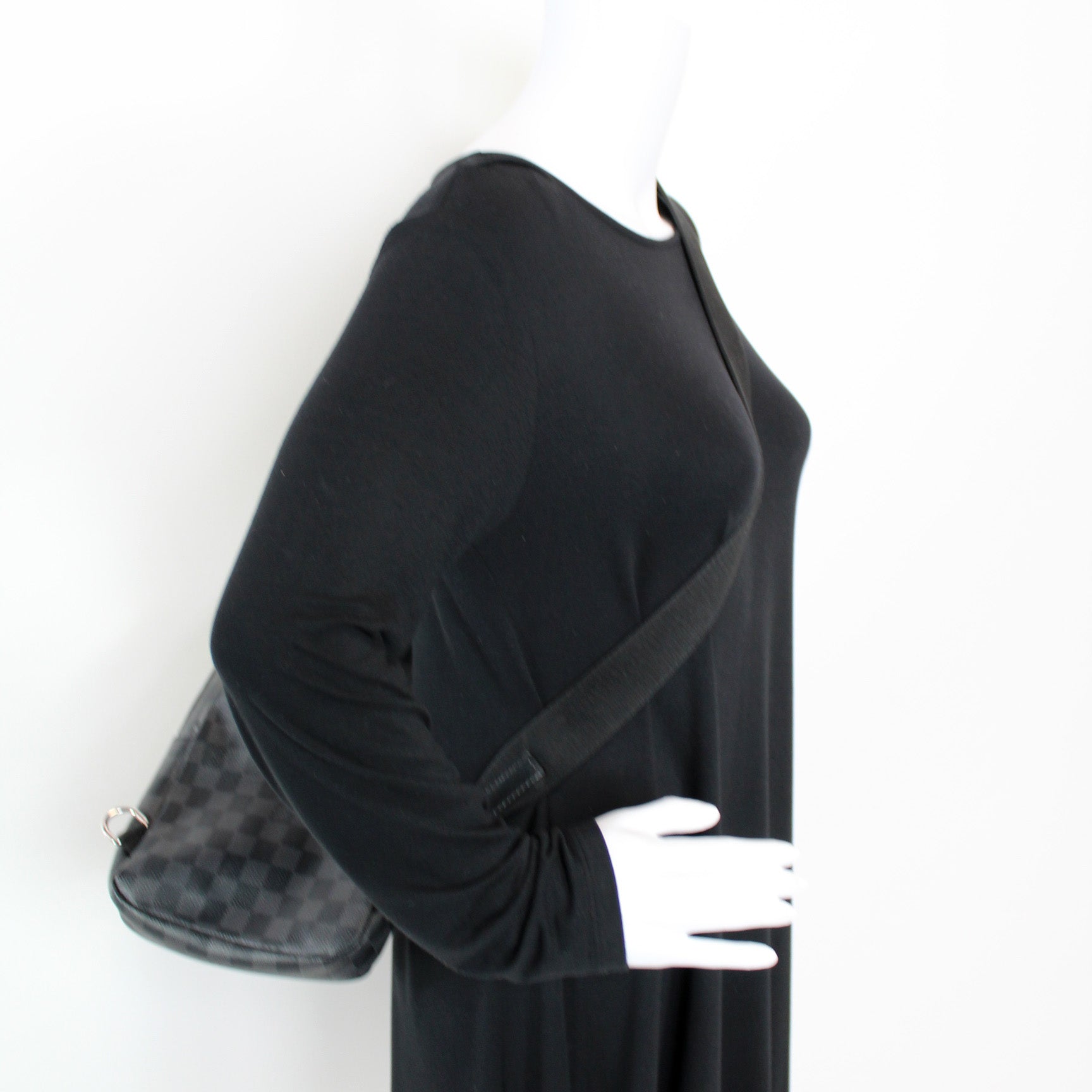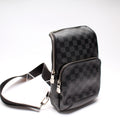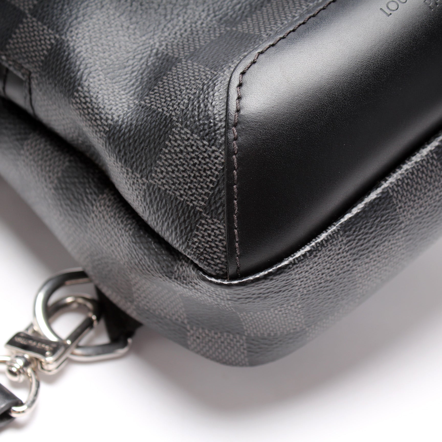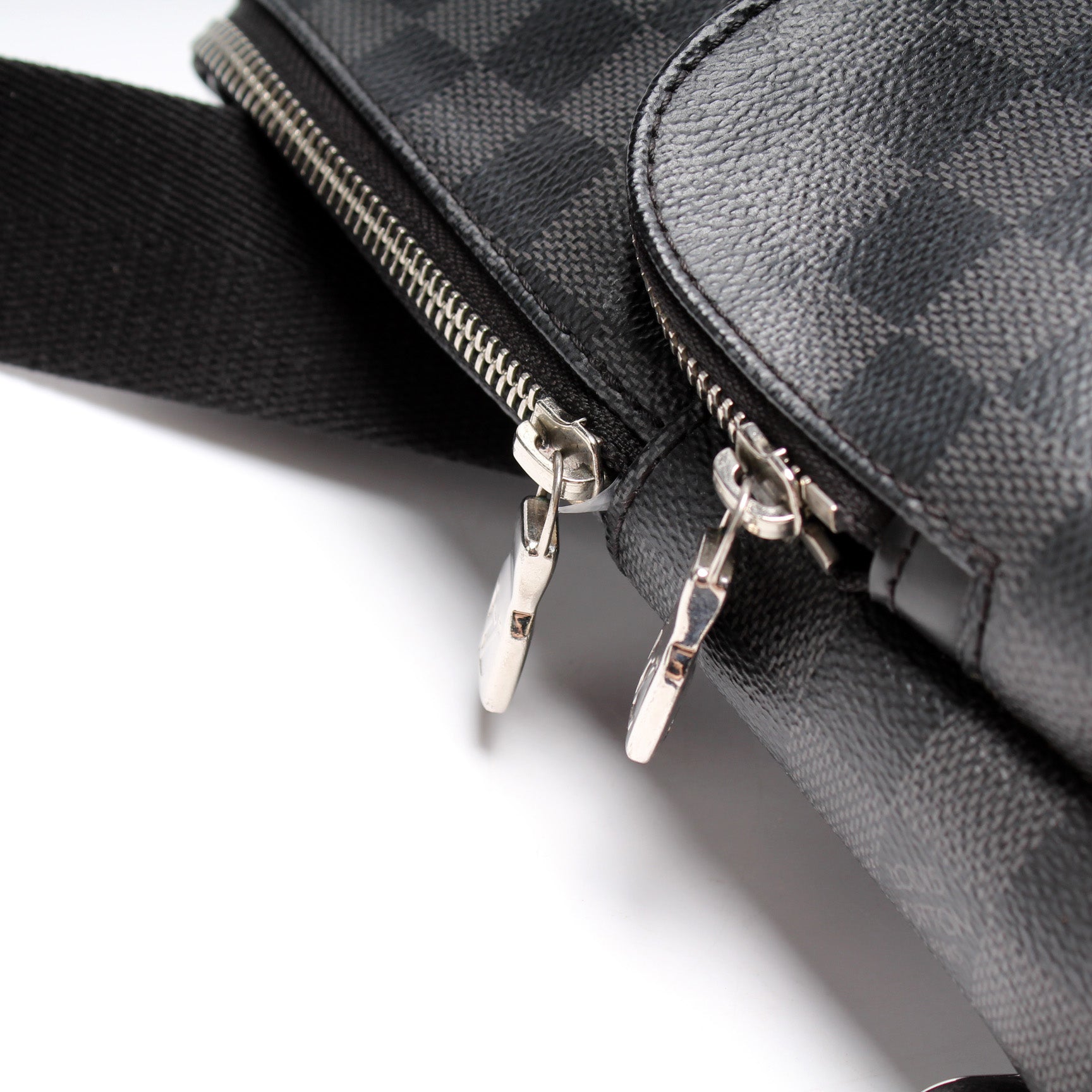This Louis Vuitton Avenue Sling Bag is d 100% . The exterior is the Damier Graphite coated canvas.