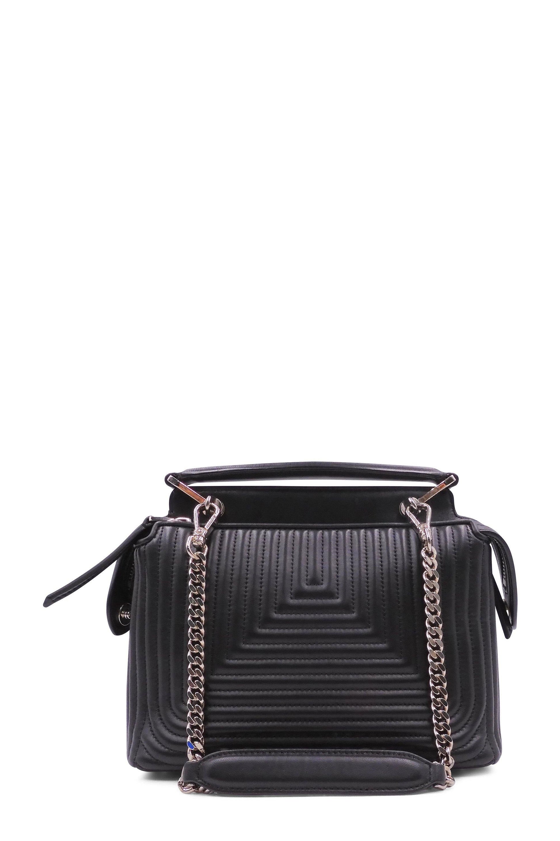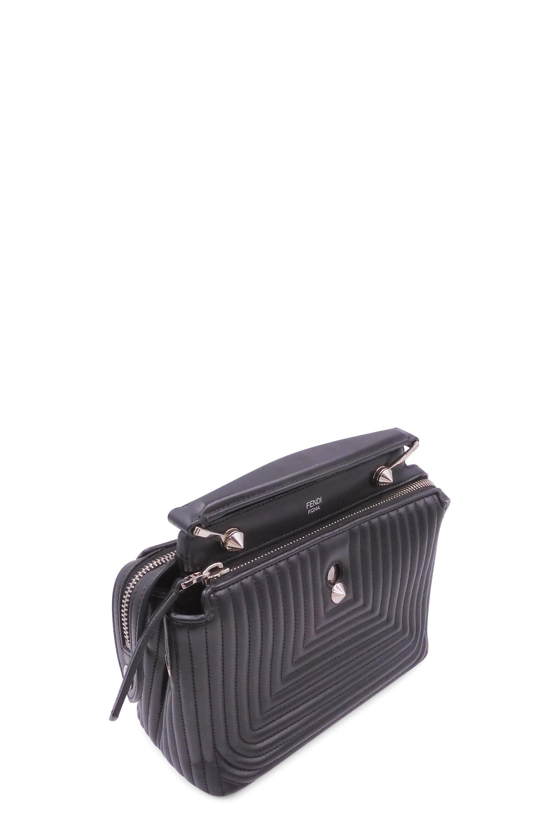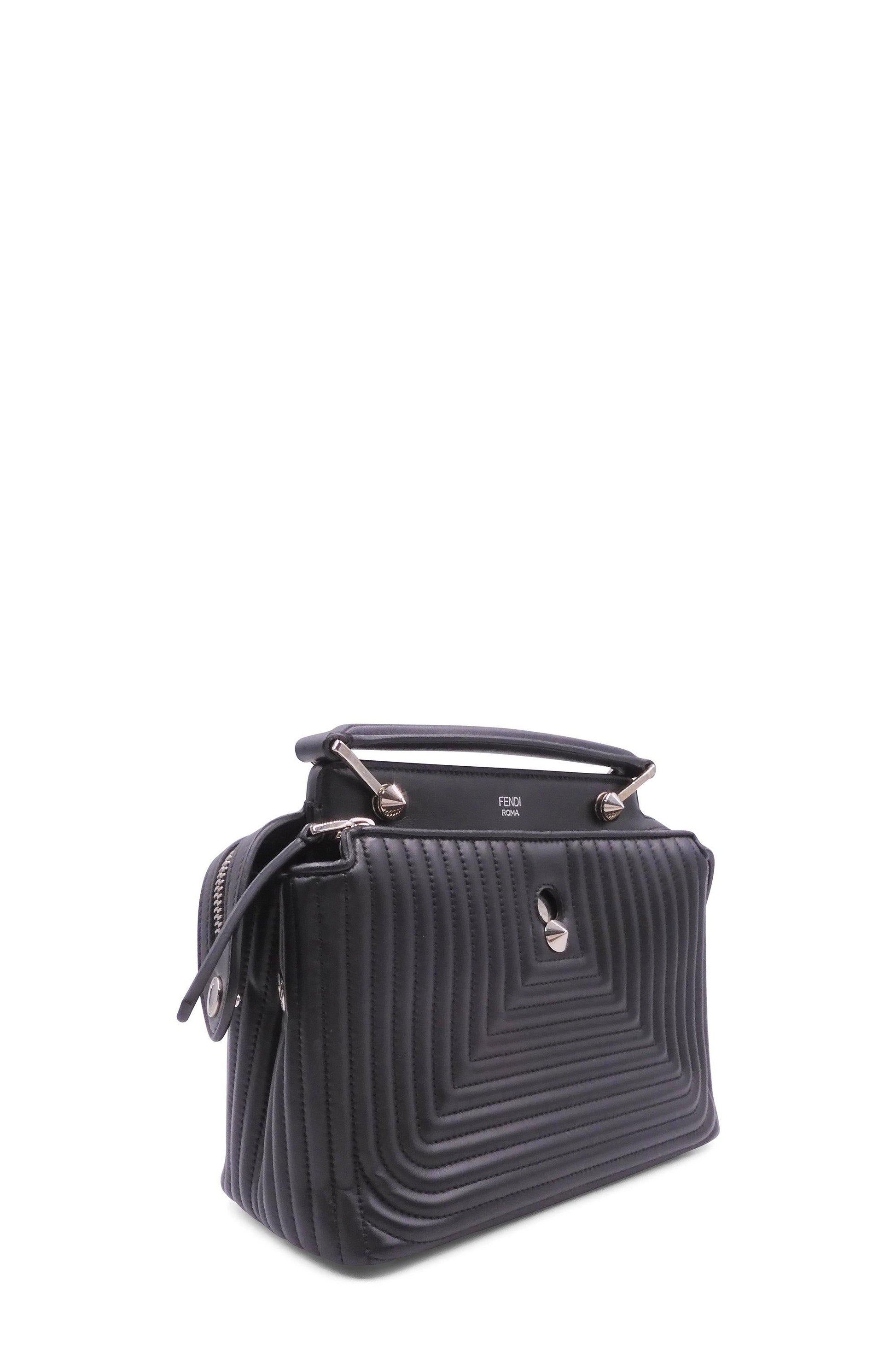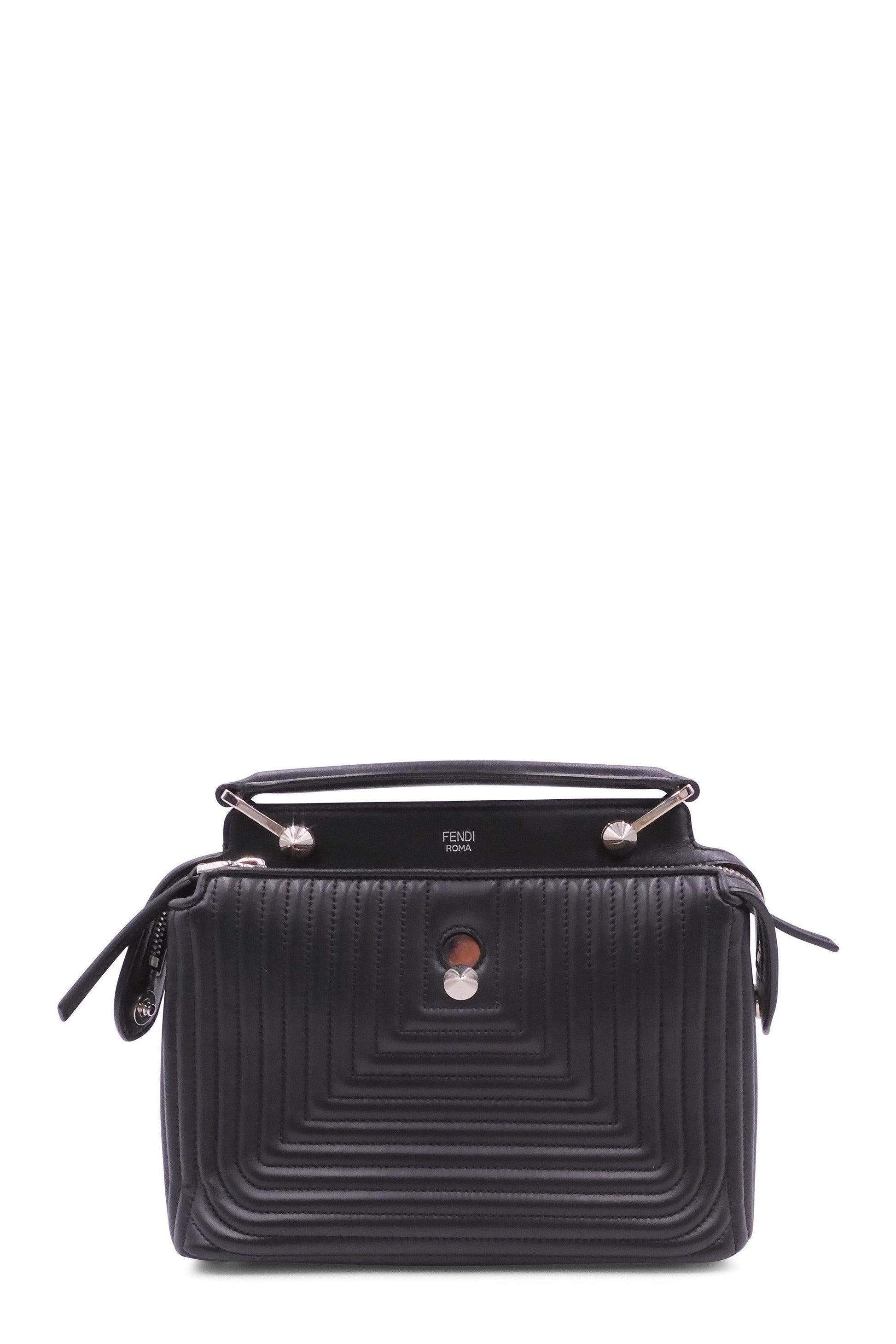 DELICATE Treat it gently and with extra care. This black nappa leather small 'Dotcom Click' tote from Fendi features a front centre logo stamp, a quilted effect, a detachable shoulder strap, a top zip fastening, two compartments divided by a partition with zip at the top and a black detachable pouch which attaches to the zipped front compartment with a conical stud. The size guide is approximate and may vary.
