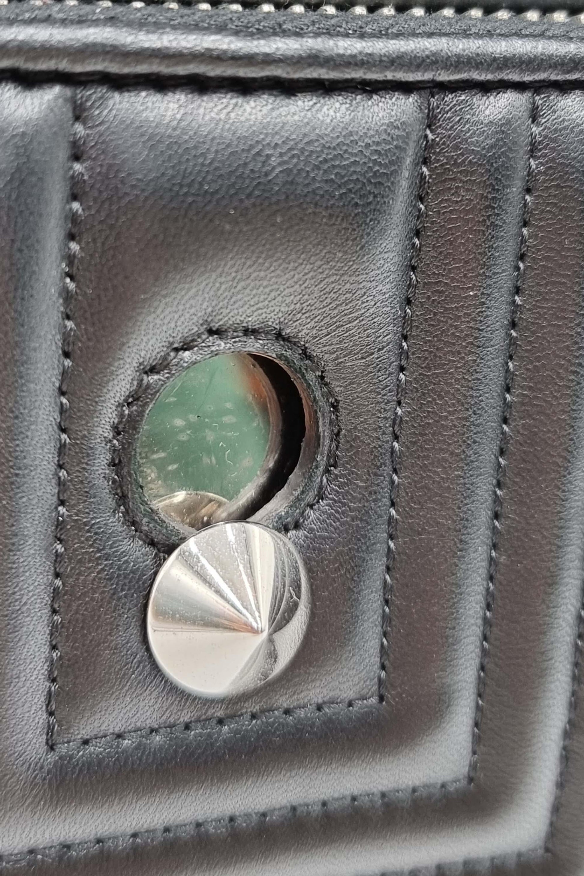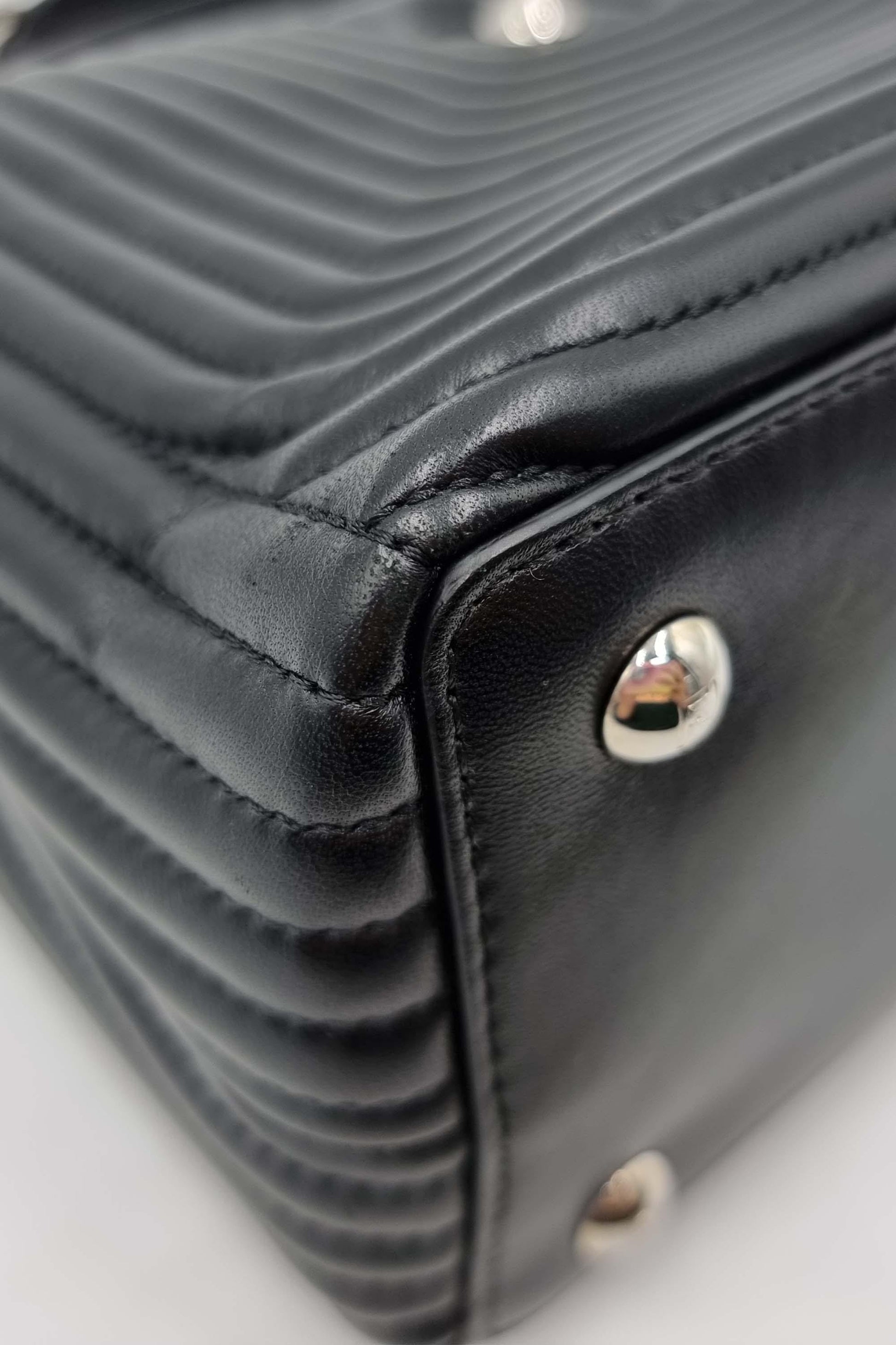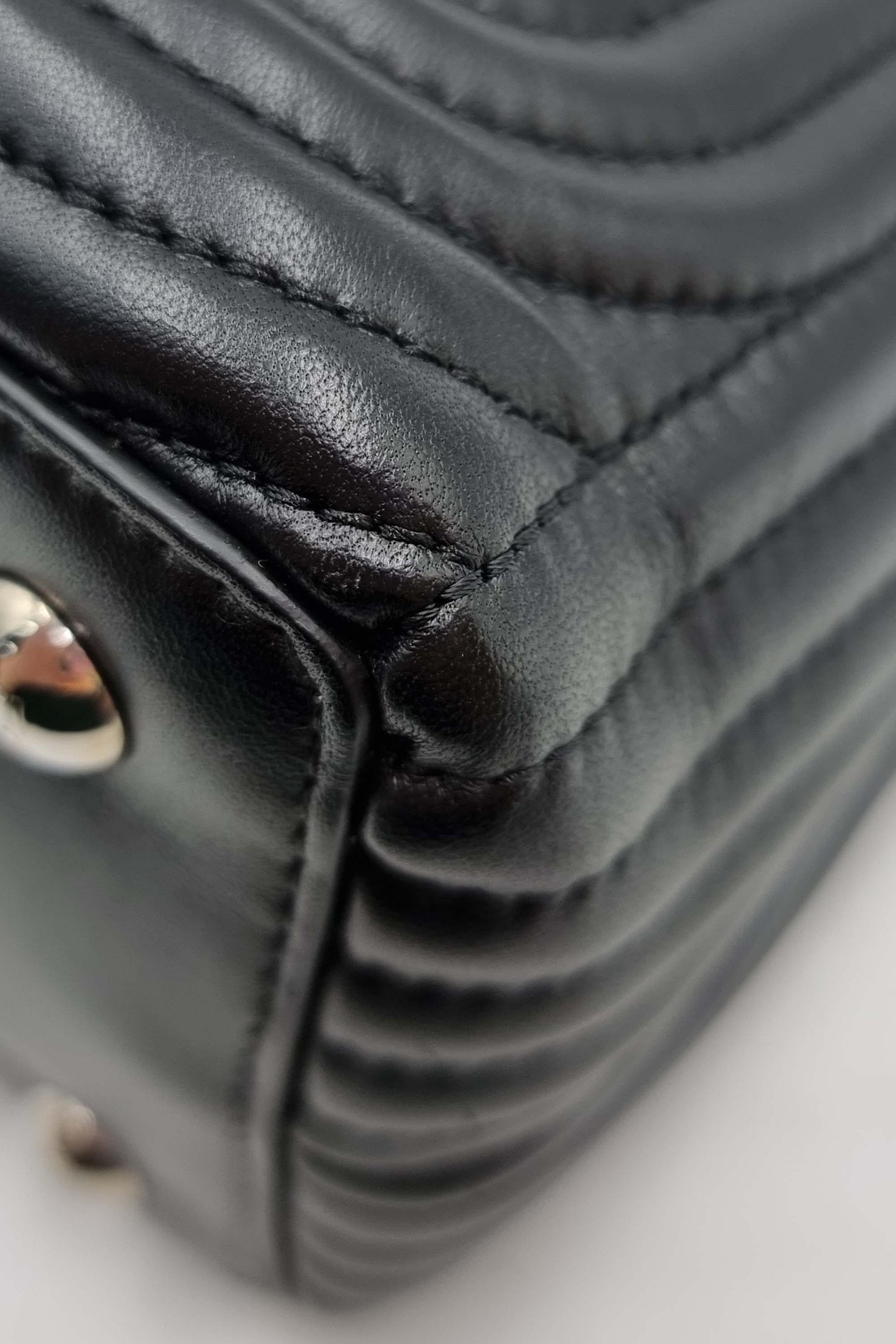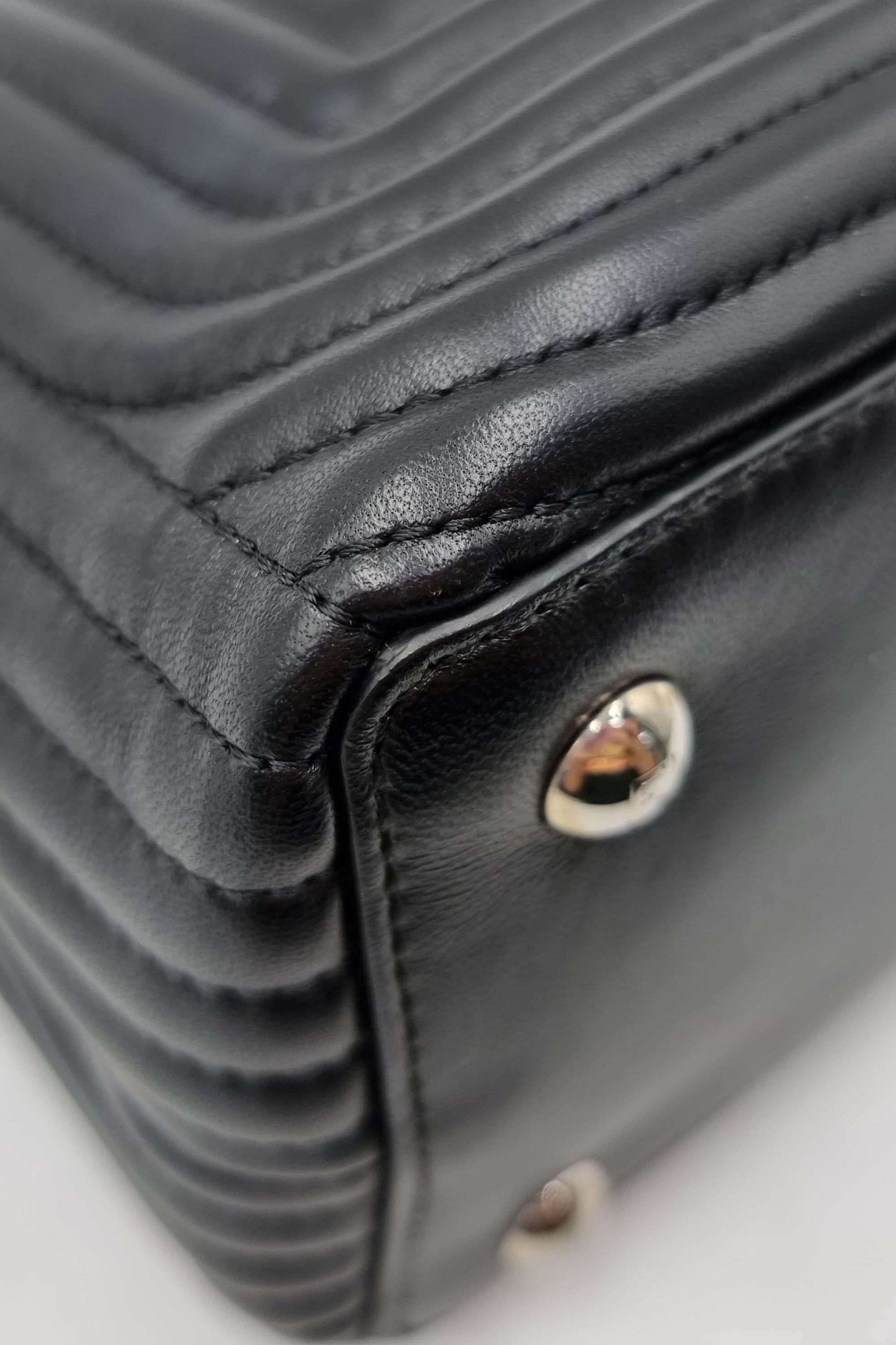DELICATE Treat it gently and with extra care. This black nappa leather small 'Dotcom Click' tote from Fendi features a front centre logo stamp, a quilted effect, a detachable shoulder strap, a top zip fastening, two compartments divided by a partition with zip at the top and a black detachable pouch which attaches to the zipped front compartment with a conical stud. The size guide is approximate and may vary.