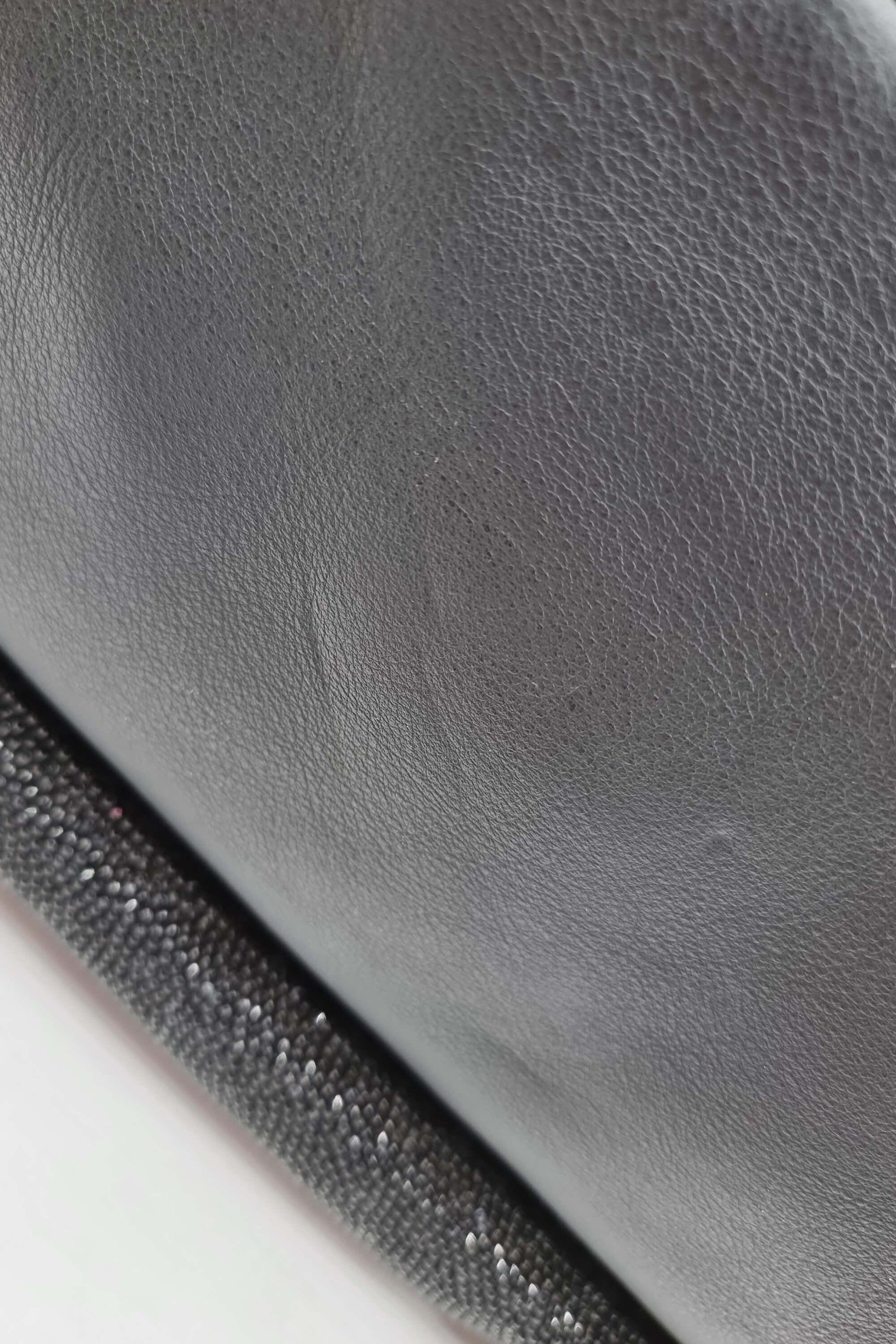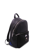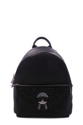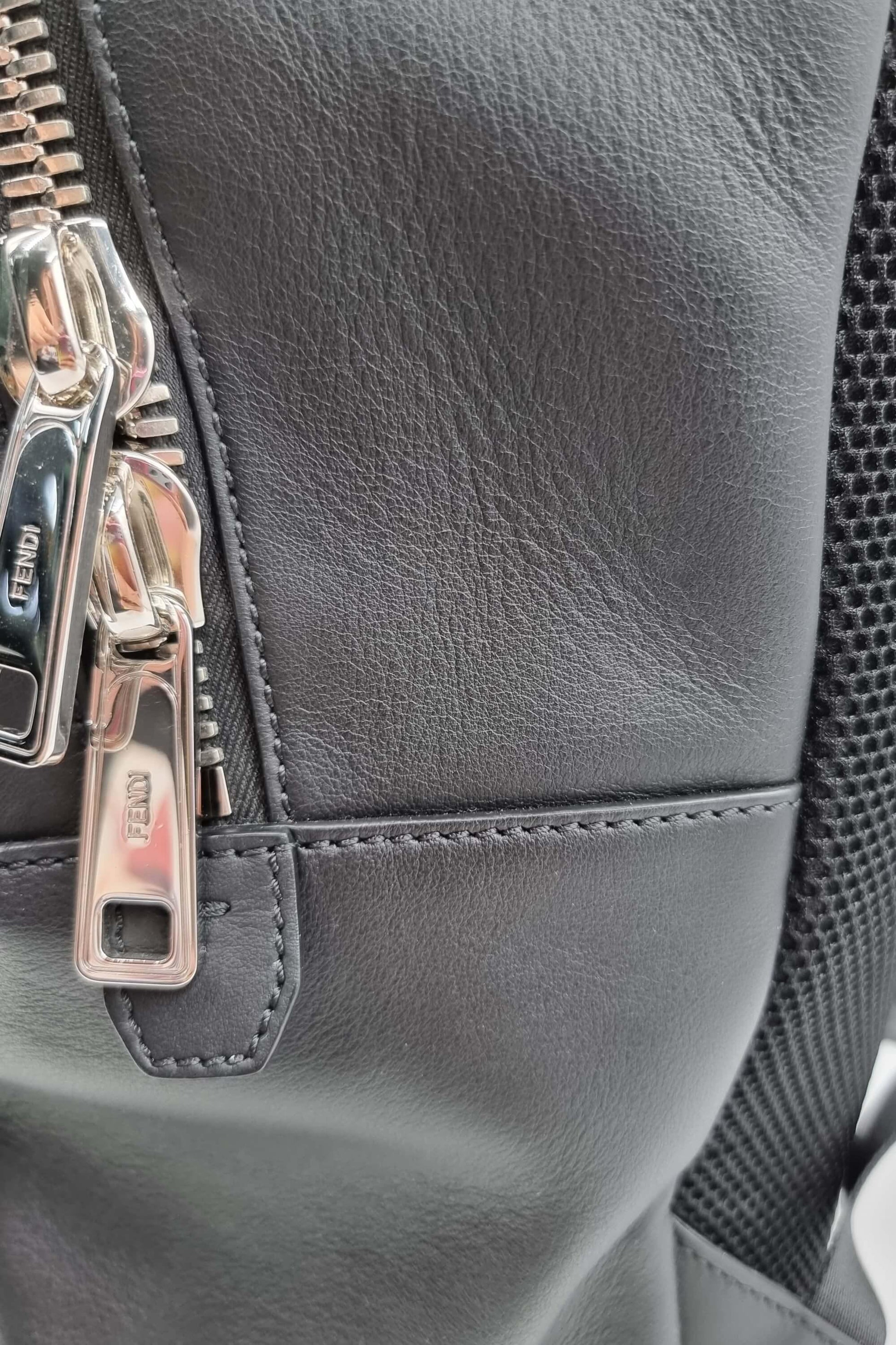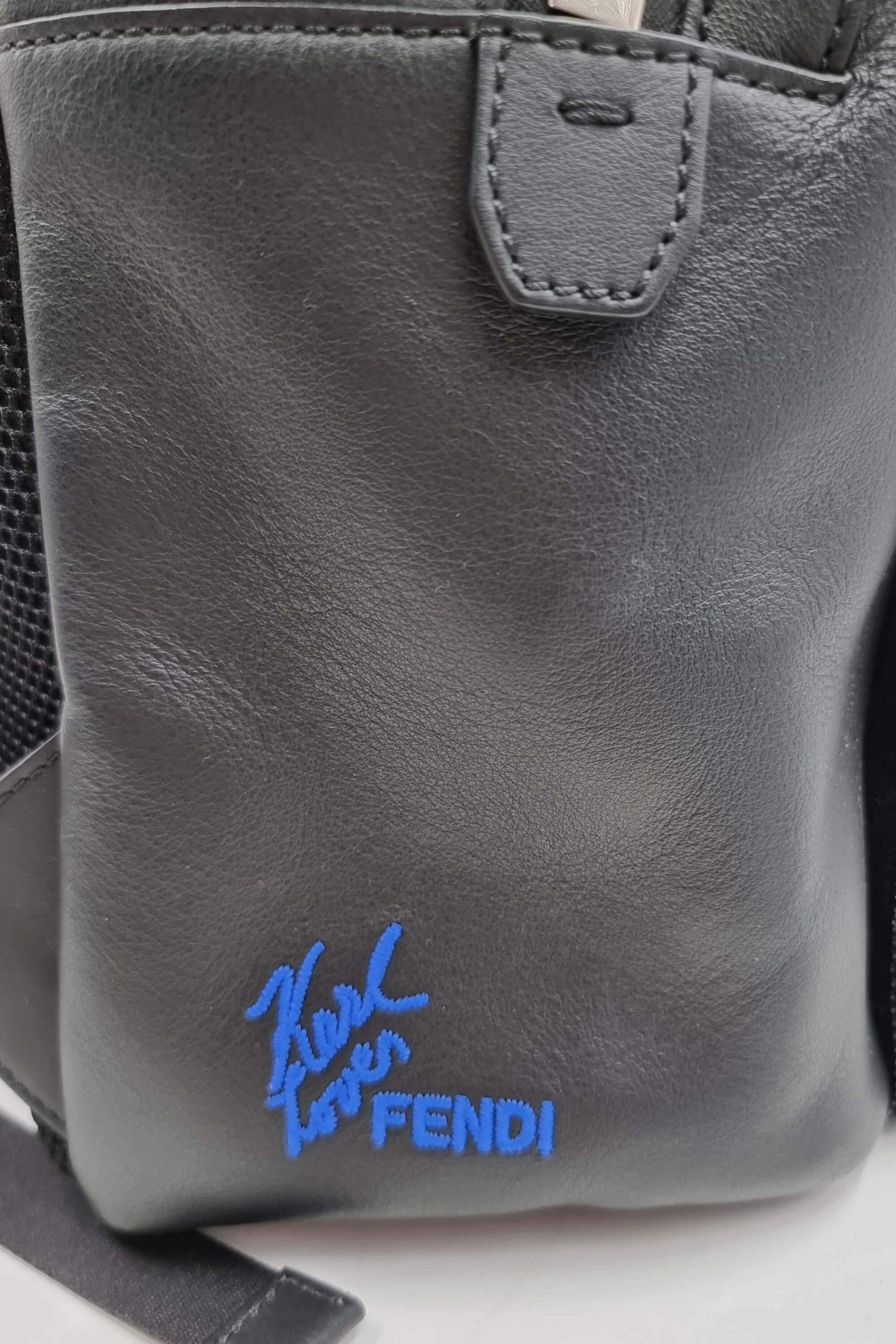 This Fendi Embellished Karlito Backpack features a smooth leather body with crystal embellishment, silver-tone hardware, rolled handle and dual adjustable shoulder straps. The zipper closure at the top opens to a canvas lining with three interior pockets.