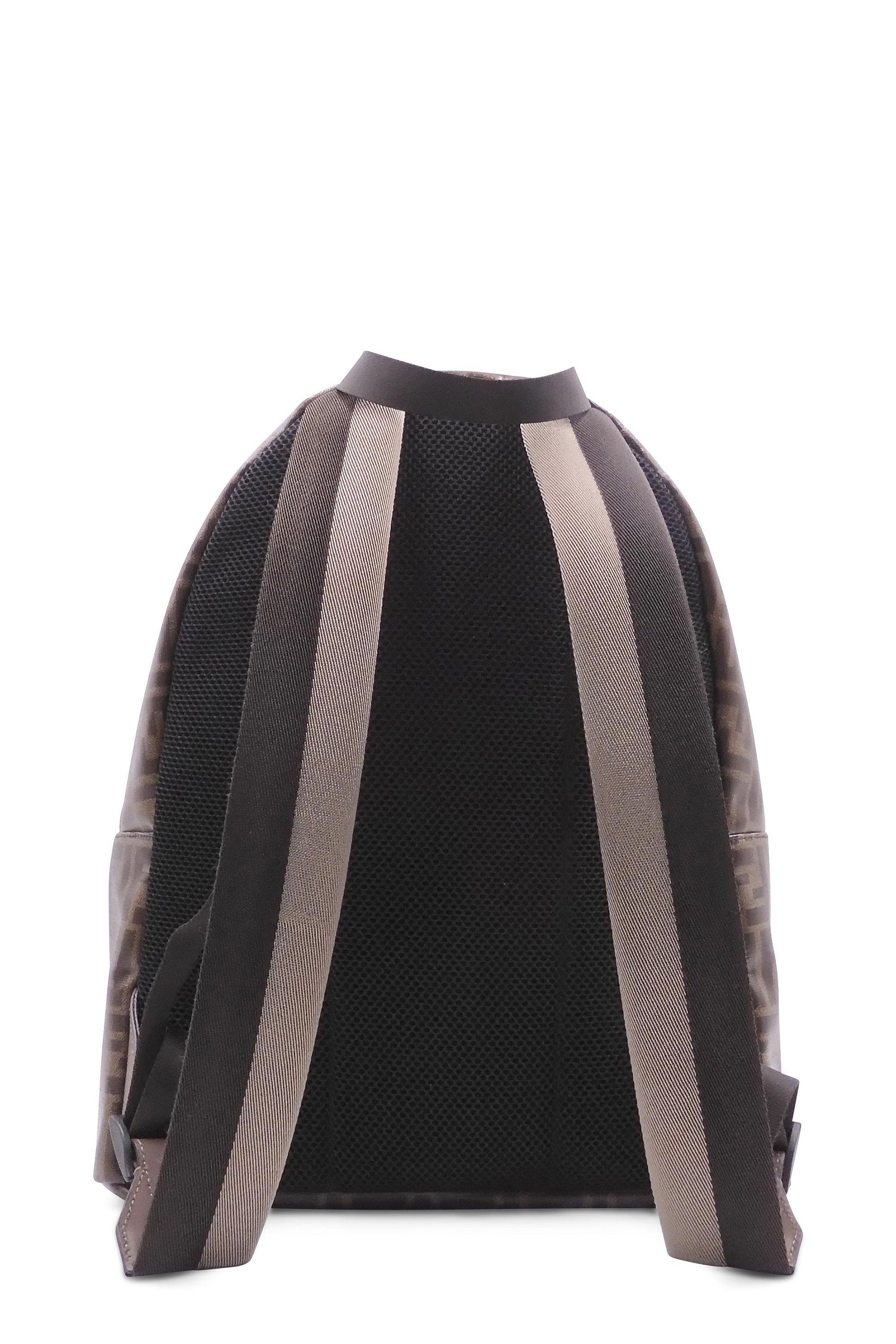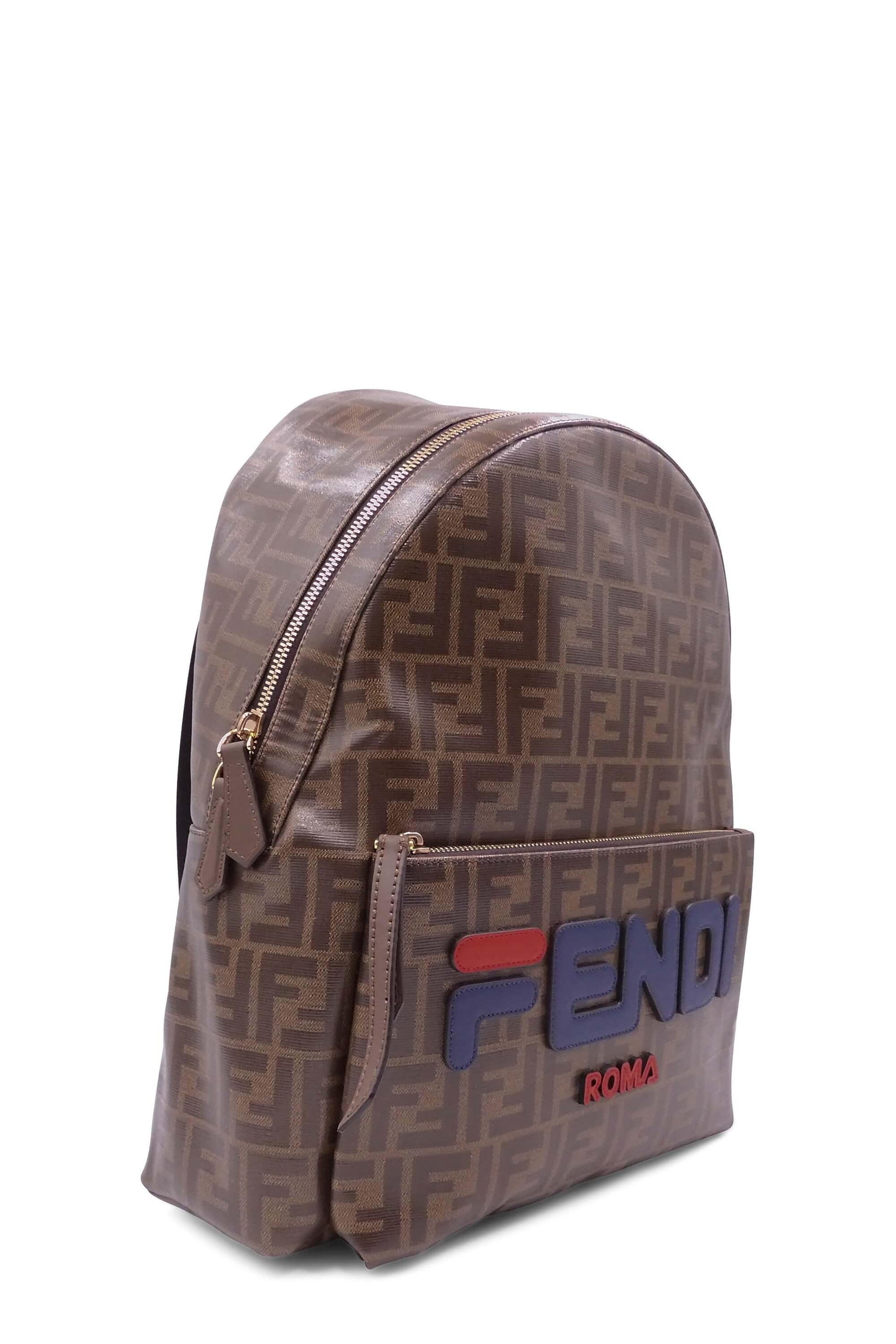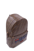 Fendi bags are the embodiment of accessorising with style and flair. For the new season, the label has presented us with bold prints containing the Monsters theme, the popular Bag Bugs motif, the Everyday theme and the famous FF logo. This brown calf leather double F logo backpack from Fendi features a round top handle, a two way zip fastening, a front zip pocket, adjustable shoulder straps, gold-tone hardware and a blue and red Fendi Roma embroidered logo on the front.