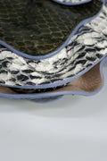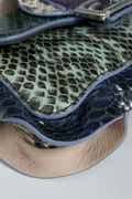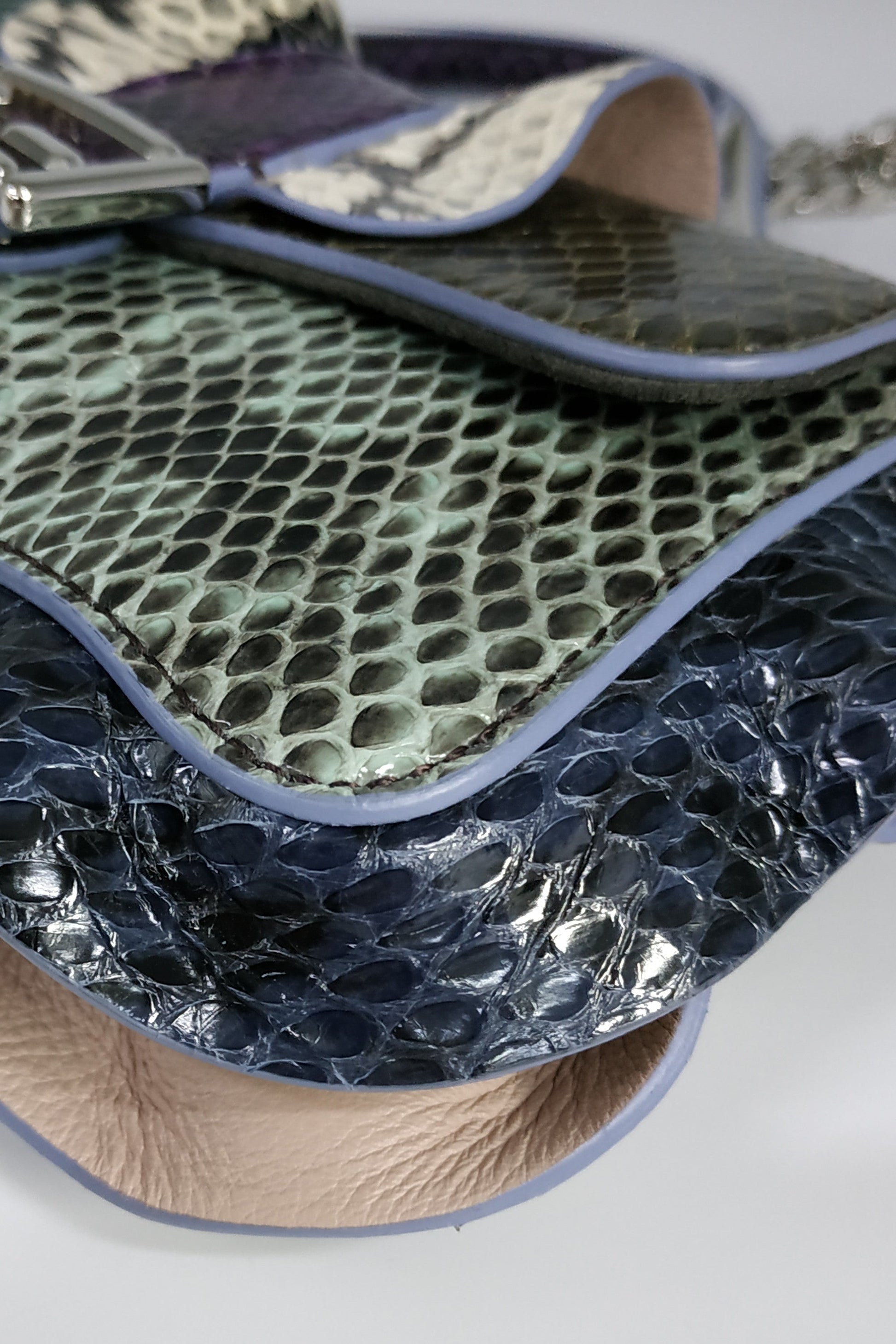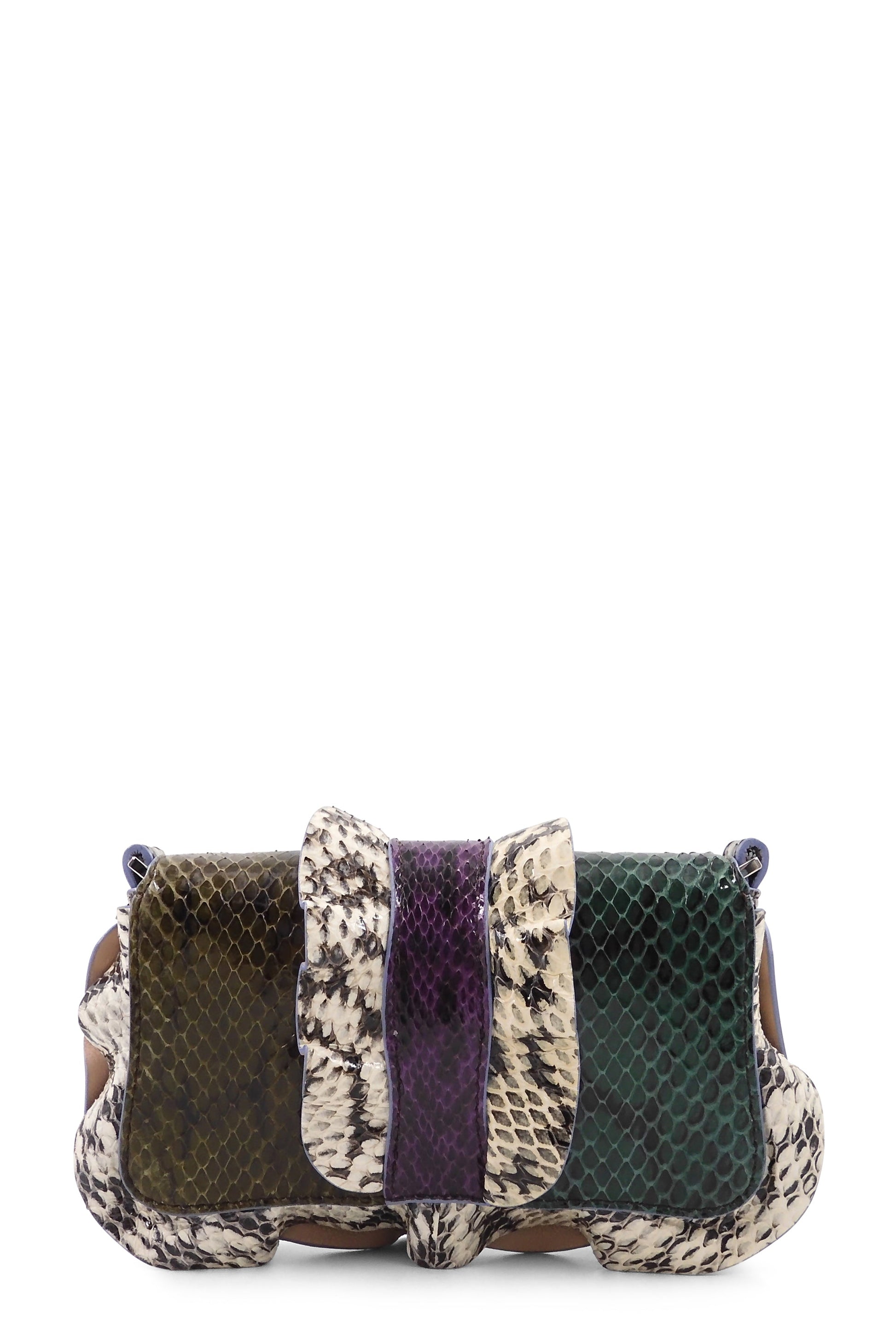 Fendi's 'Baguette' bag was seen with a variety of looks on the Fall '16 runway. It's crafted from bold panels of jade, turquoise, purple and army-green elaphe and trimmed with ruffled "waves" - a key theme in the collection. The micro proportions will fit your cell phone, a cardholder and lipstick.