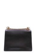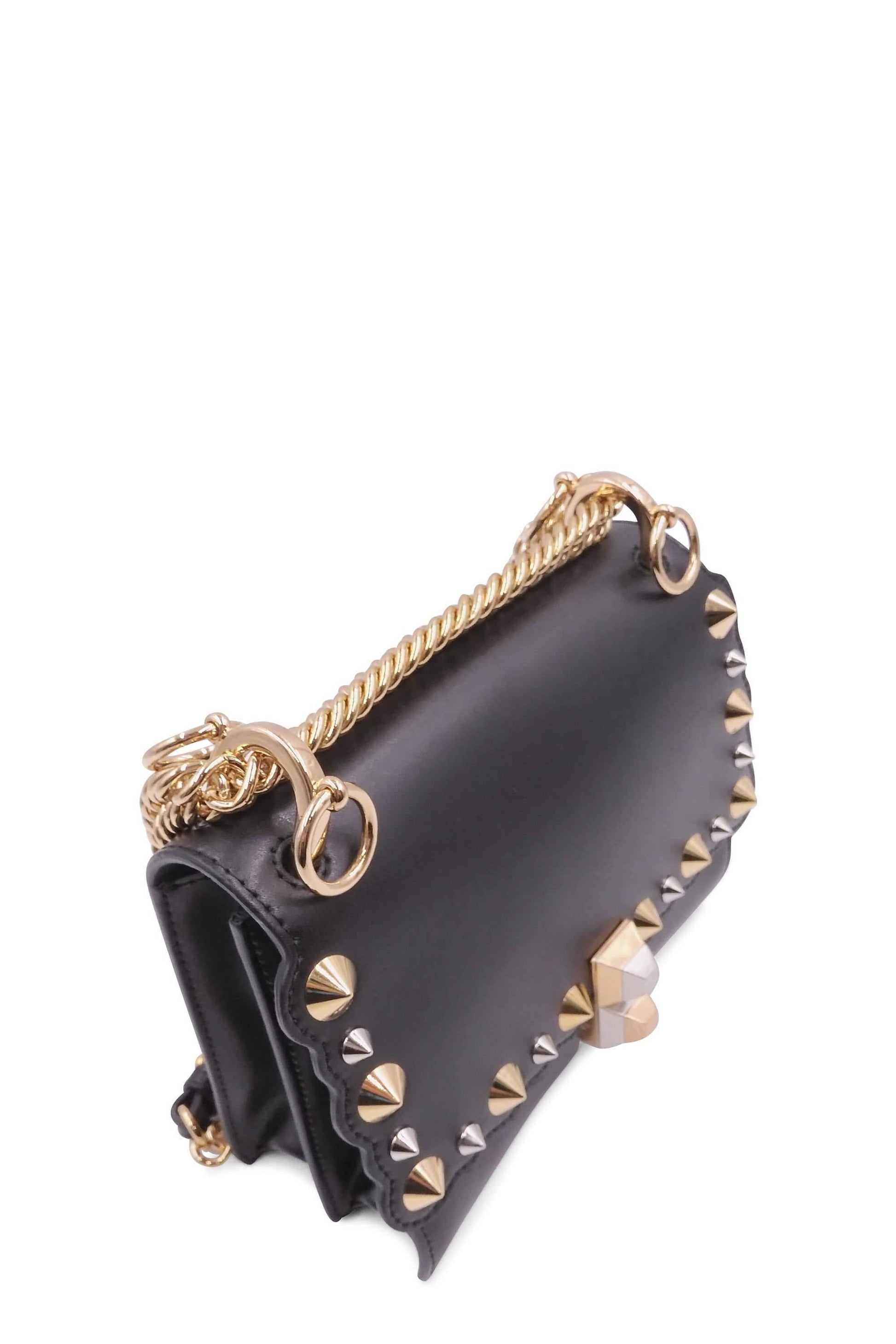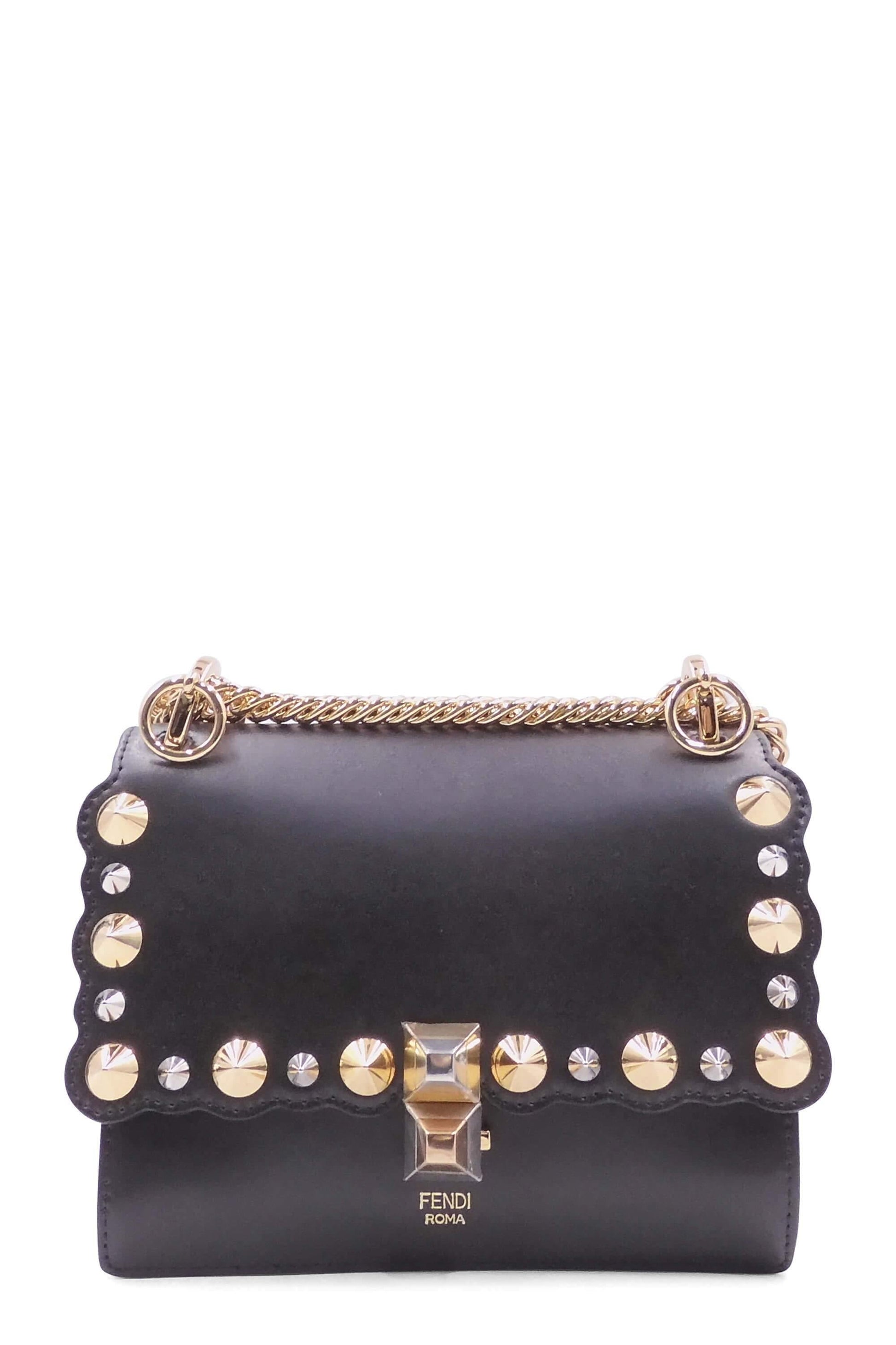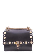 The Kan I features a leather body with embellishments, a front flap with magnetic closure, and an interior zip pocket.