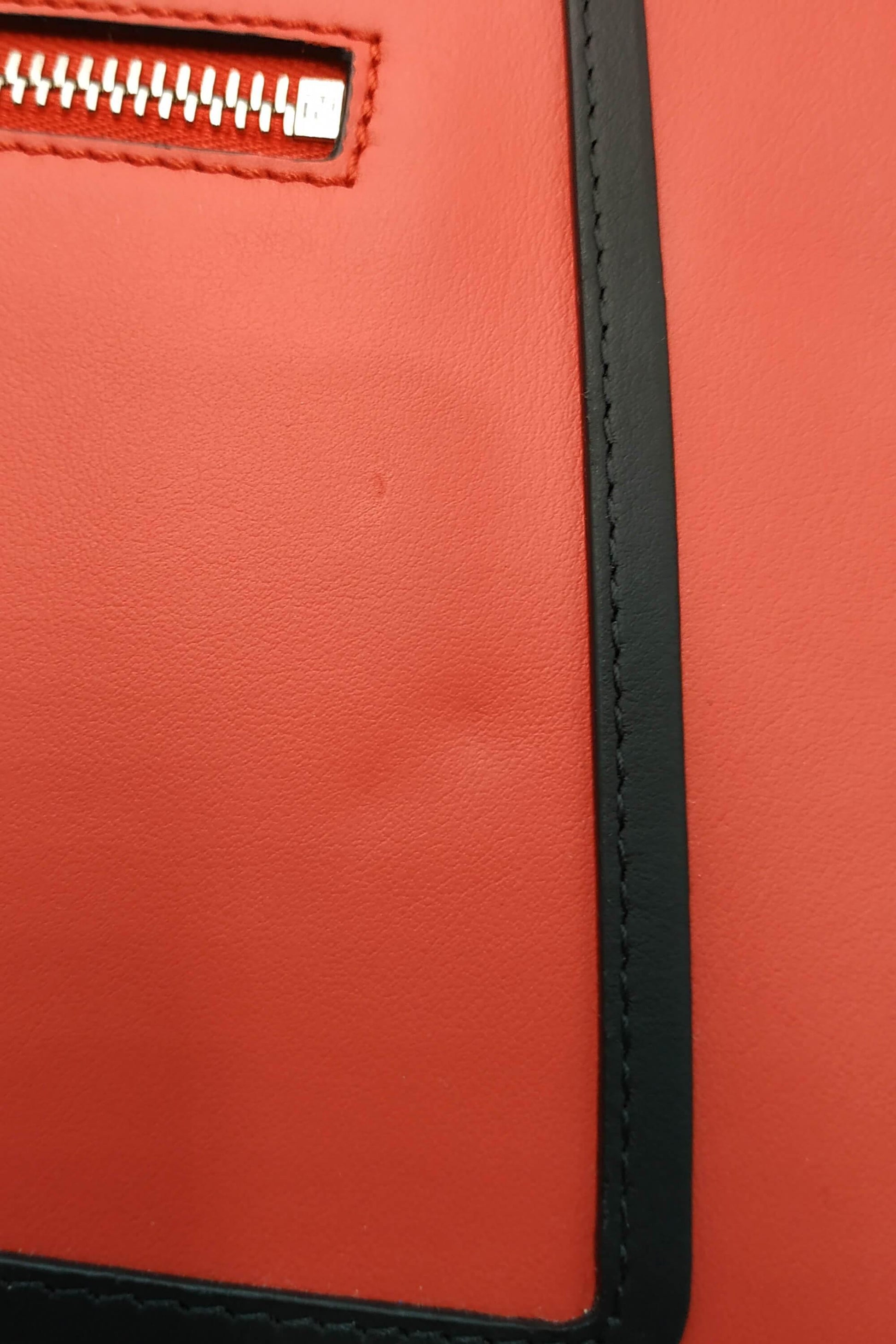 This Fendi Runaway orange handbag is absolutely adorable. The shape of this bag is so classy and elegant. The leather looks so amazing with the black leather trim. The two straps are great for wearing as a cross body or tote bag. The thick short strap is so stylish and looks great with the gold Fendi logo.