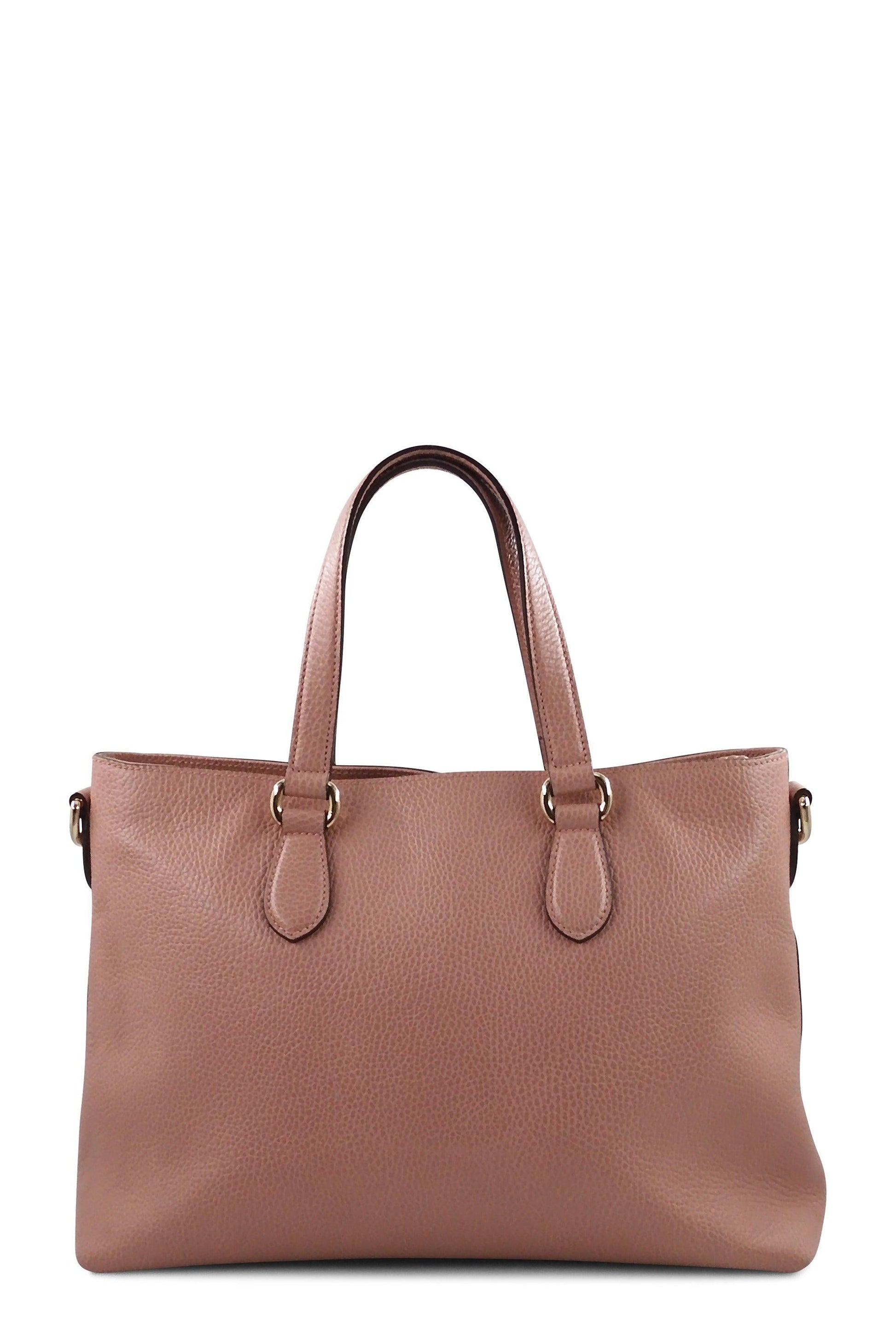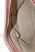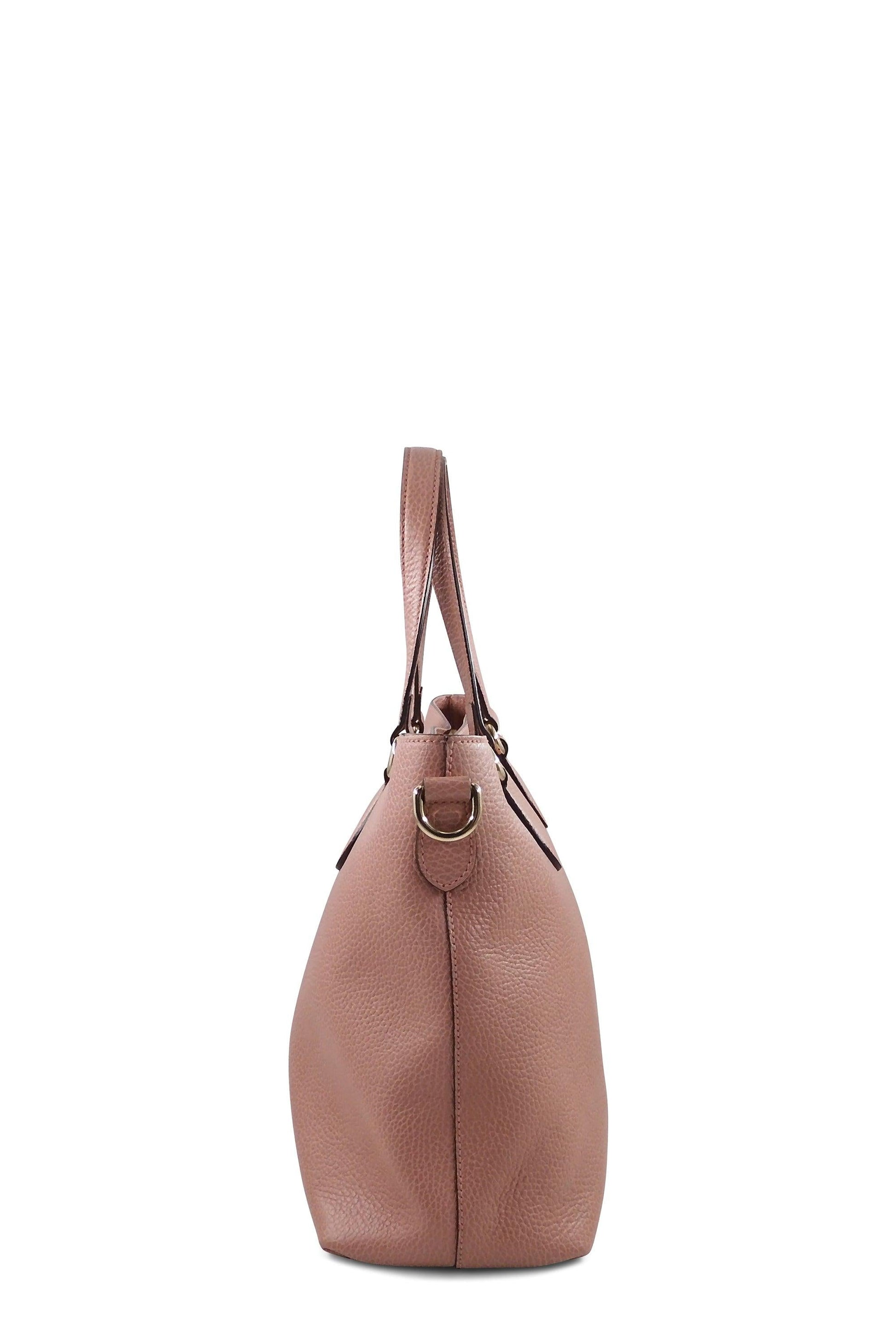 This lovely tote is crafted of pebbled calfskin leather in pink. The bag features two leather handles, two bamboo tipped tassels and a broad open top with woven leather detailing. This opens to a fabric interior with zipper and patch pockets. The size guide is approximate and may vary.