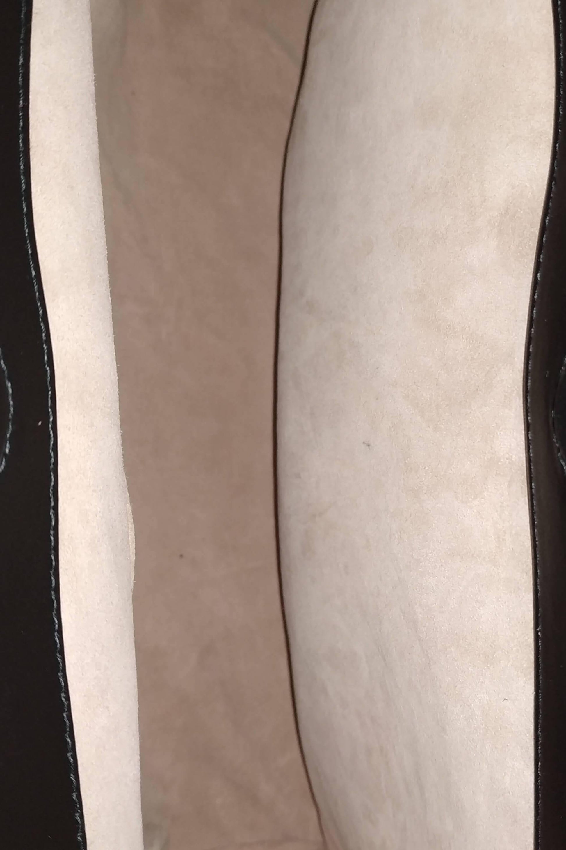 This exquisite bag is crafted of calf hair in leopard print. The bag has a looping sturdy bamboo top handle and an optional webbed shoulder strap. The top opens to reveal a beige suede interior with patch pockets.