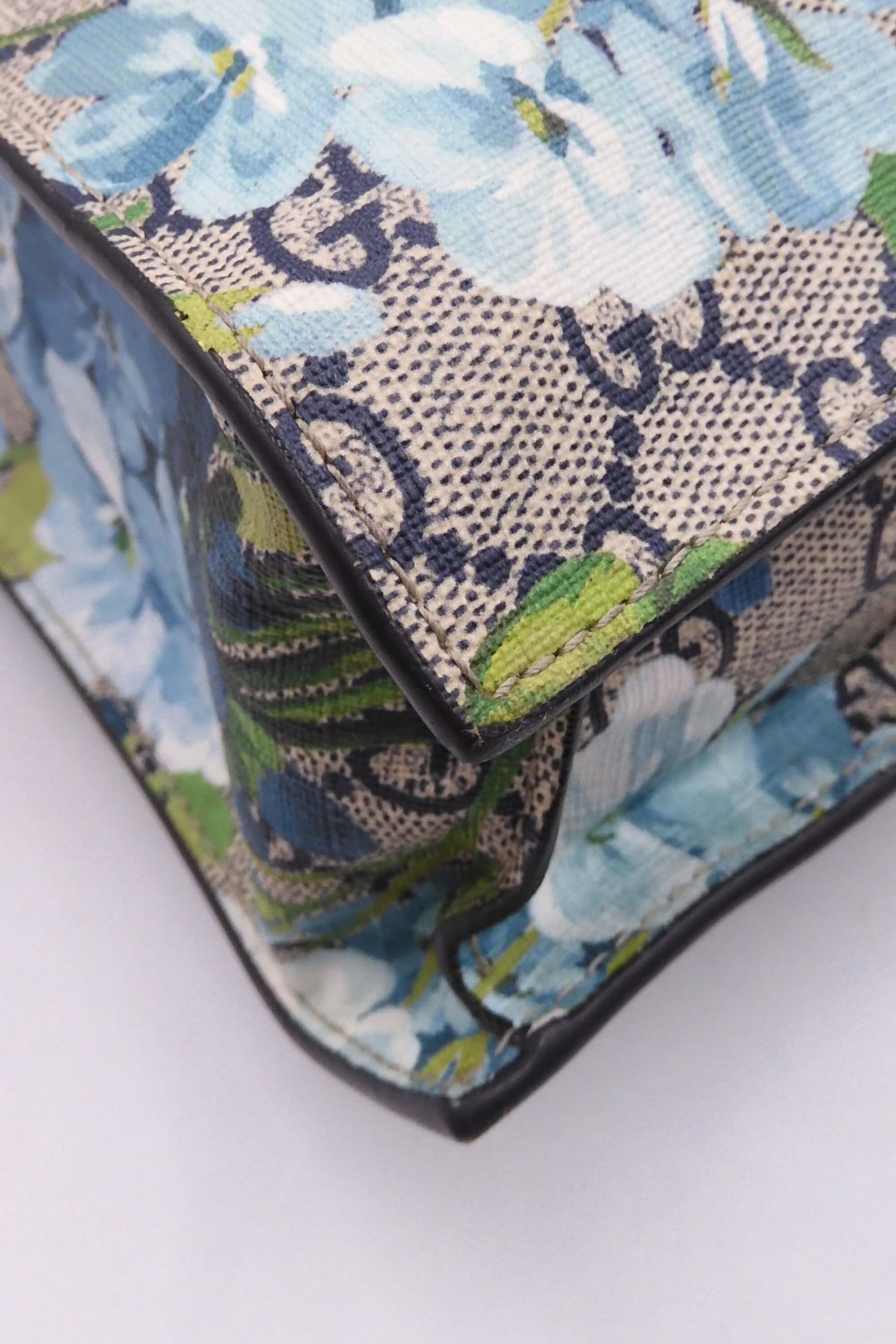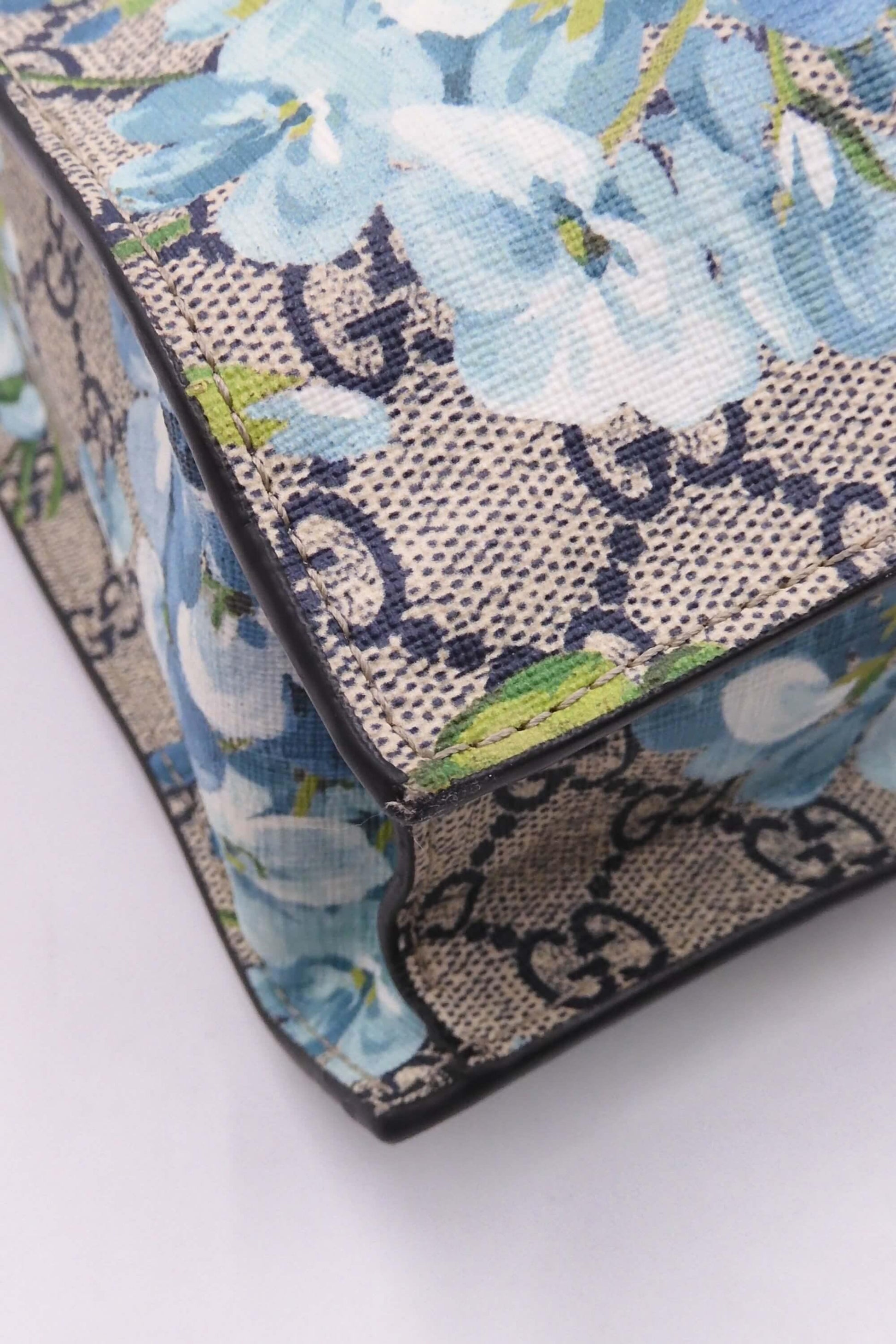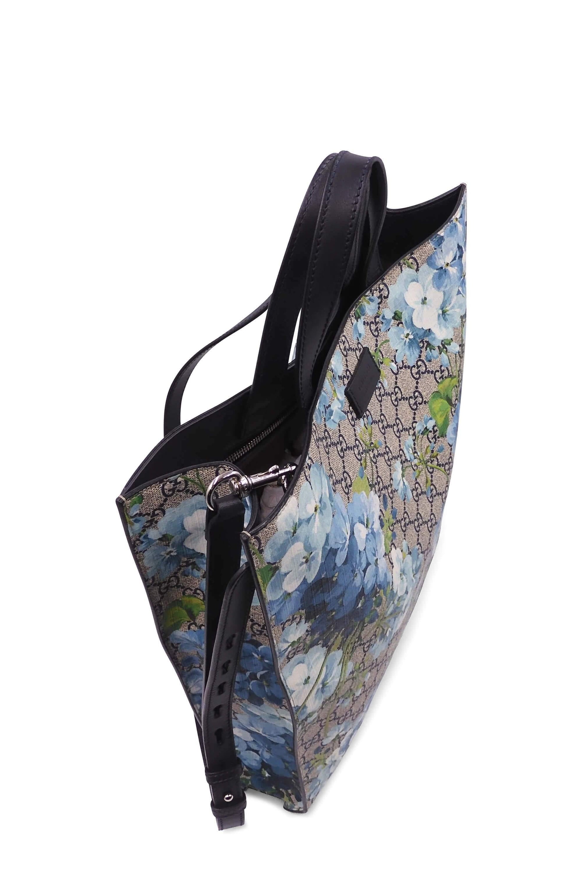 This Gucci Soft Blooms tote is made from GG Soft Blooms printed coated canvas with antique leather and antique hardware. Details include two flat handles, magnetic snap closure, and fully lined interior with two open pockets and one zippered pocket. Carry this style on the forearm, over the shoulder with detachable strap, or folded in half as a clutch. The size guide is approximate and may vary.